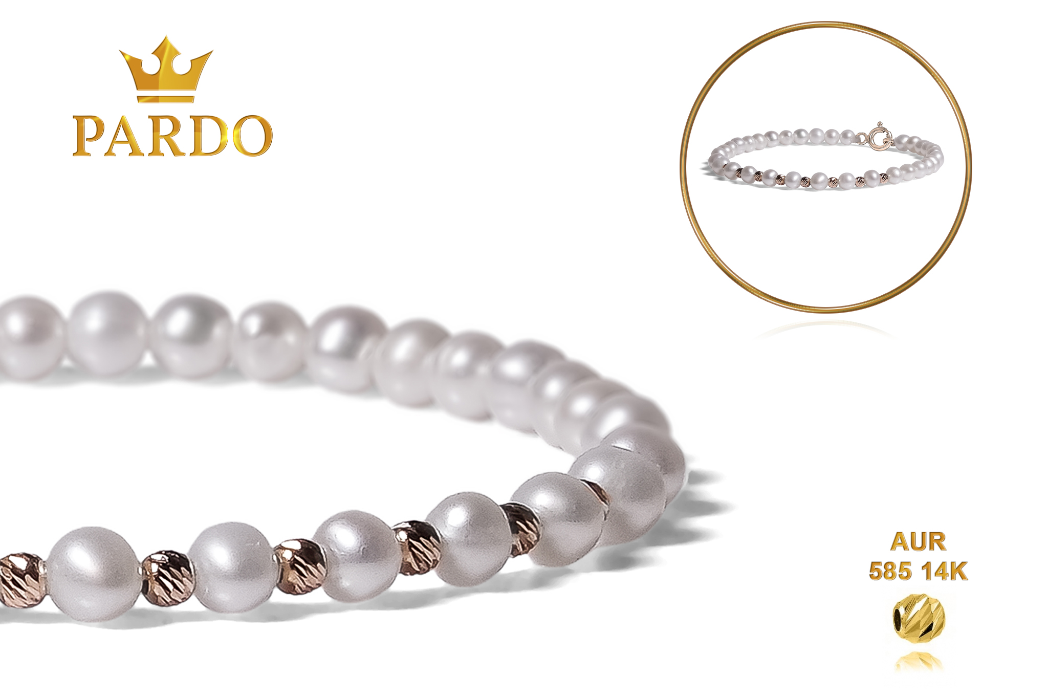 Întreaga colecție de brățări din aur este realizată cu aur de 14 Karate, aur de import Italia, calitatea aurului fiind astfel la un nivel superior. Aurul de 14 Karate folosit pentru colecțiile Pardo Gold este verificat certificat de organele abilitate prin autorizația emisă, astfel acesta corespunde în proportie de 94% din punct de vedere al caratajului cât și al gramajului.