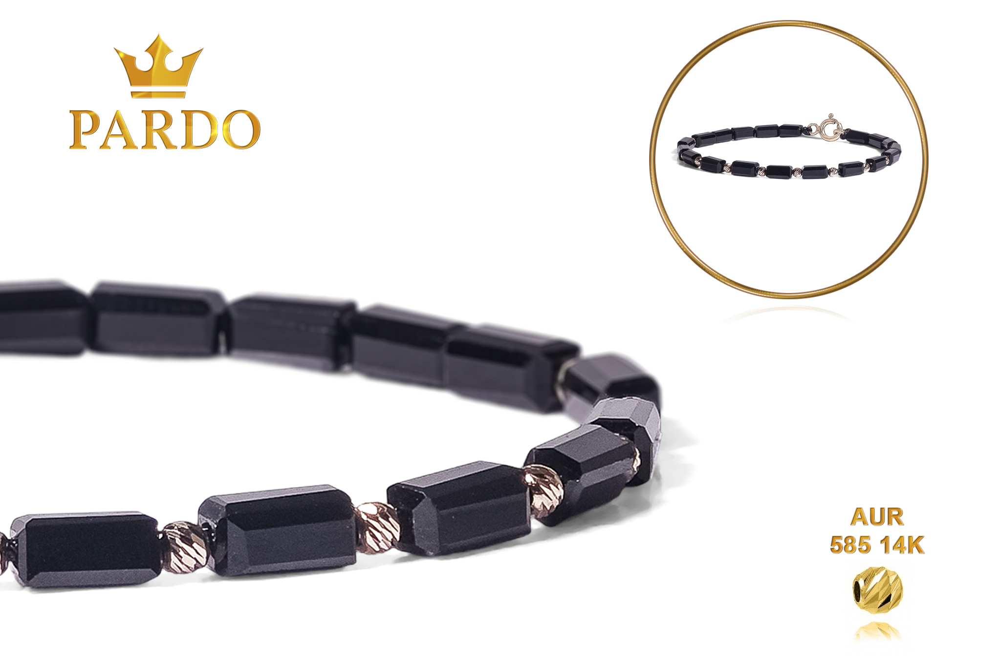 Întreaga colecție de brățări din aur este realizată cu aur de 14 Karate, aur de import Italia, calitatea aurului fiind astfel la un nivel superior. Aurul de 14 Karate folosit pentru colecțiile Pardo Gold este verificat certificat de organele abilitate prin autorizația emisă, astfel acesta corespunde în proportie de 94% din punct de vedere al caratajului cât și al gramajului.