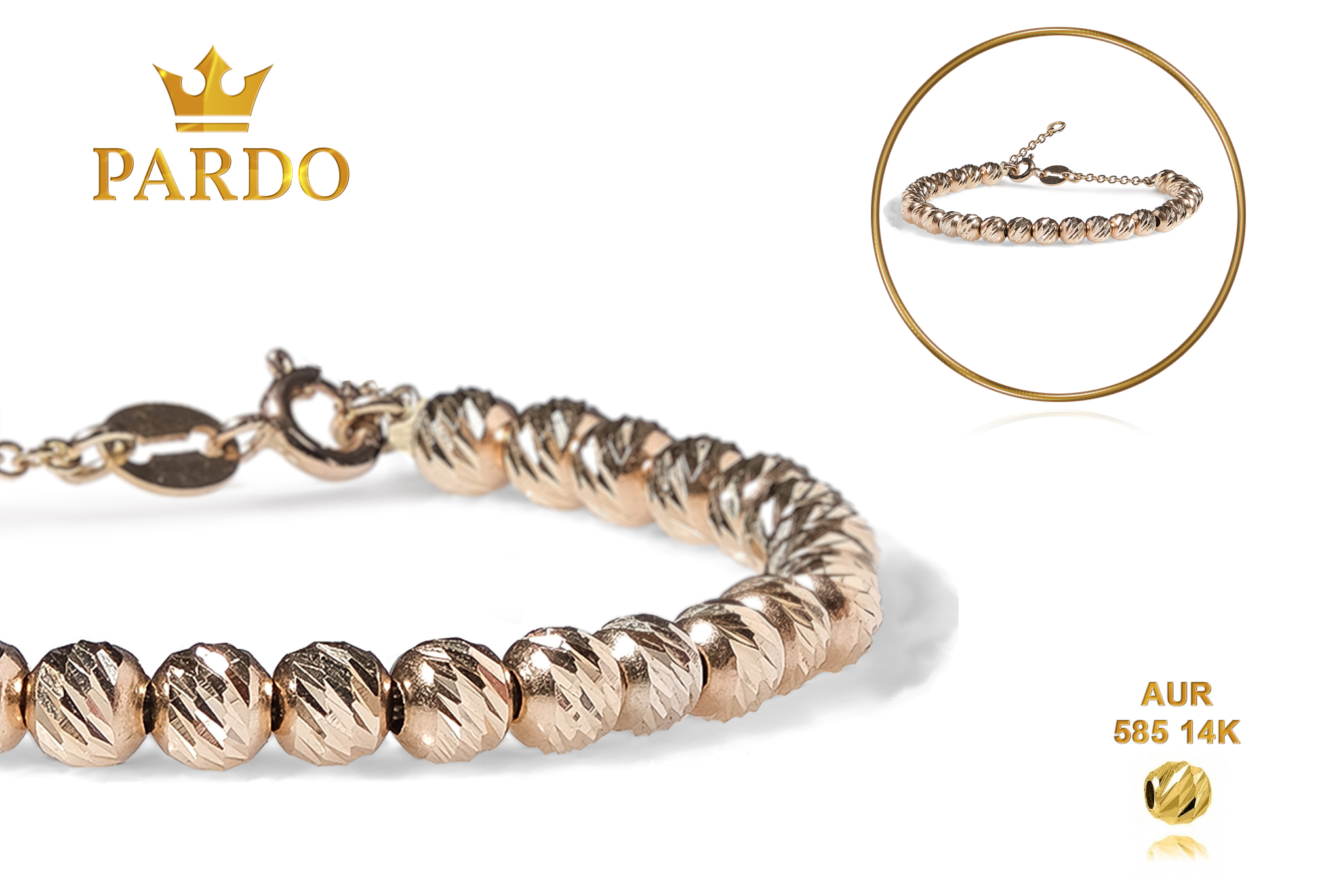 Bratara cu extensie Pardo si sfere striate din Aur 585 de 14 Karate