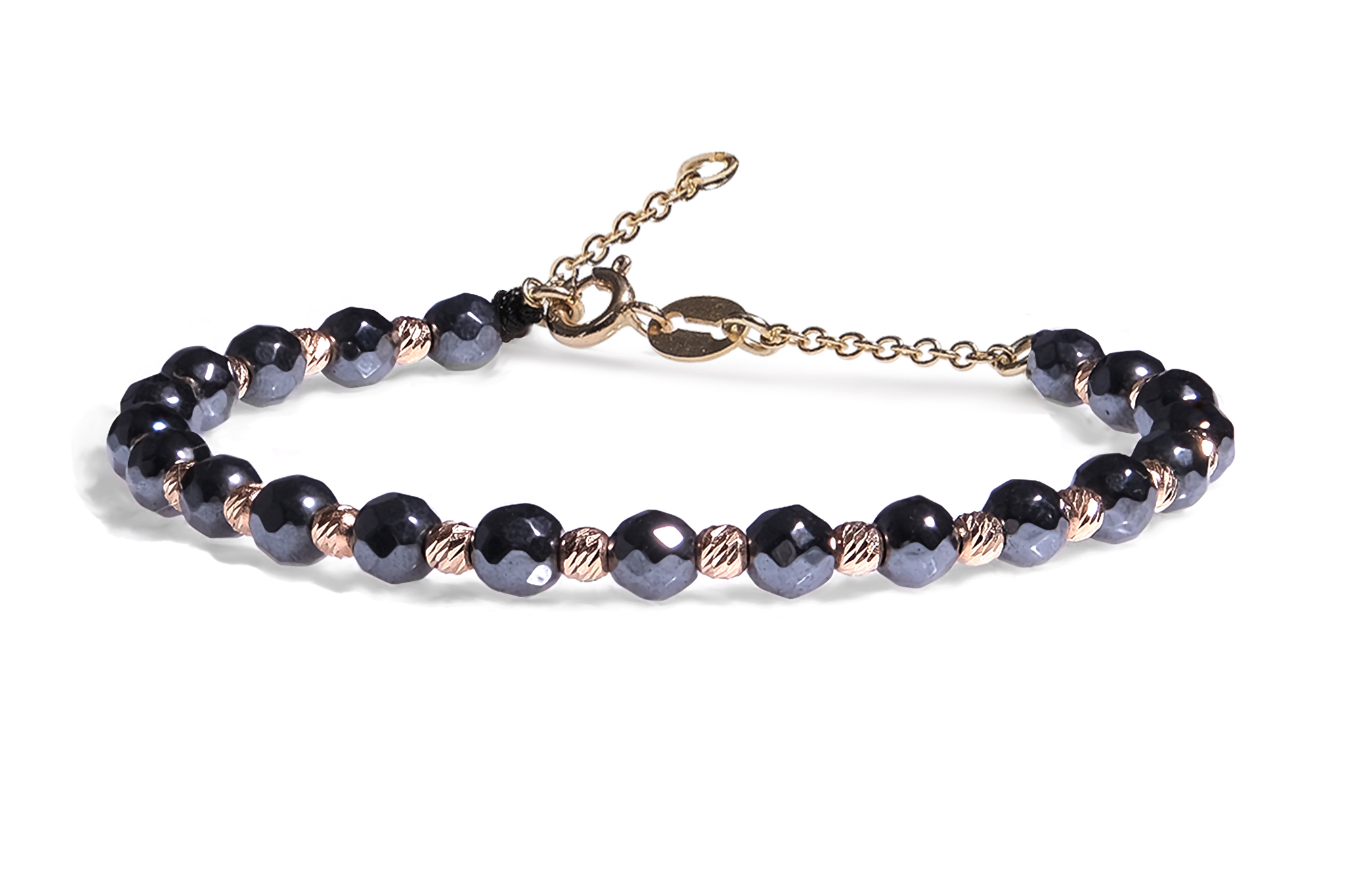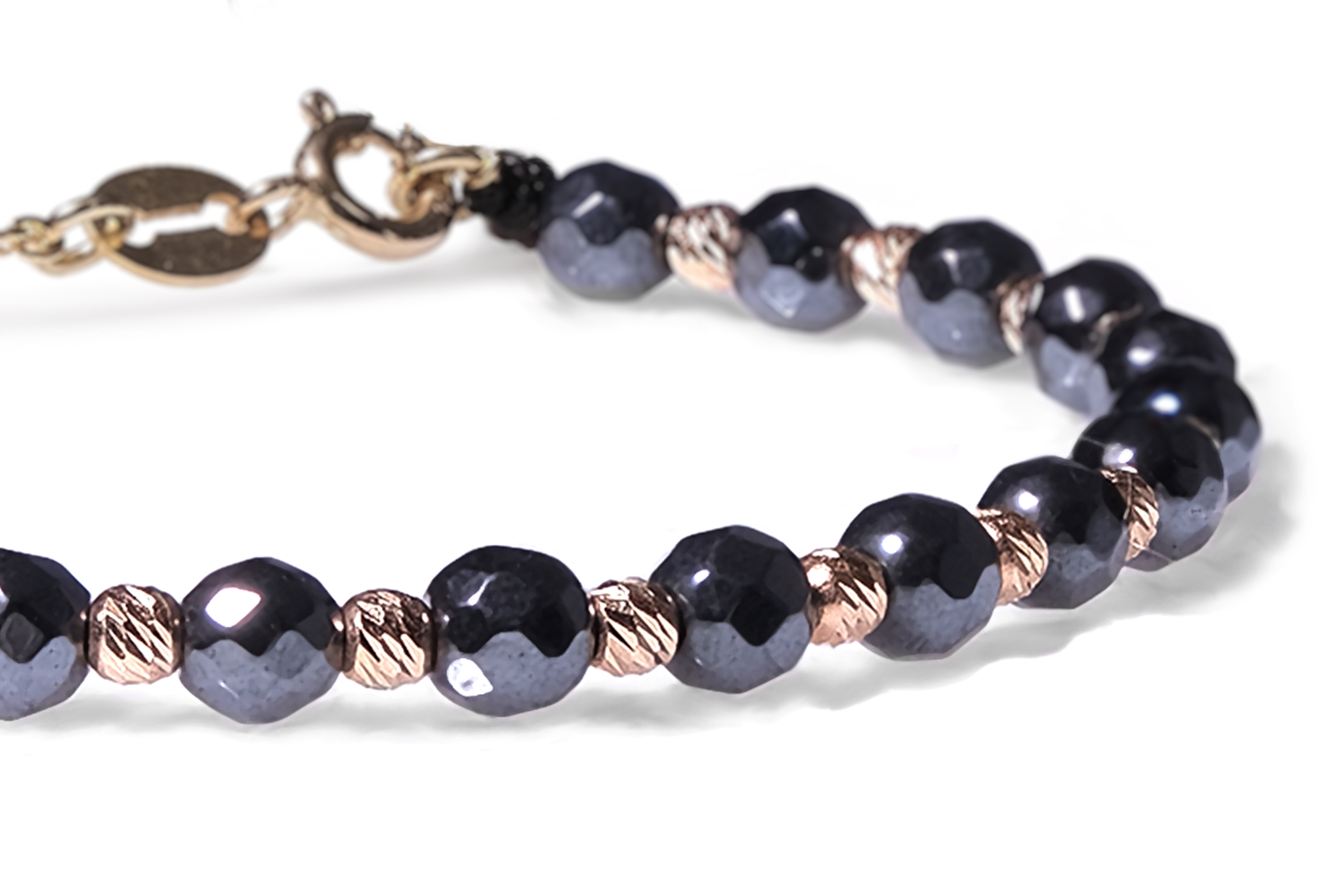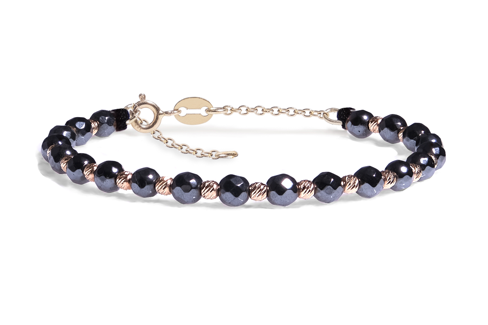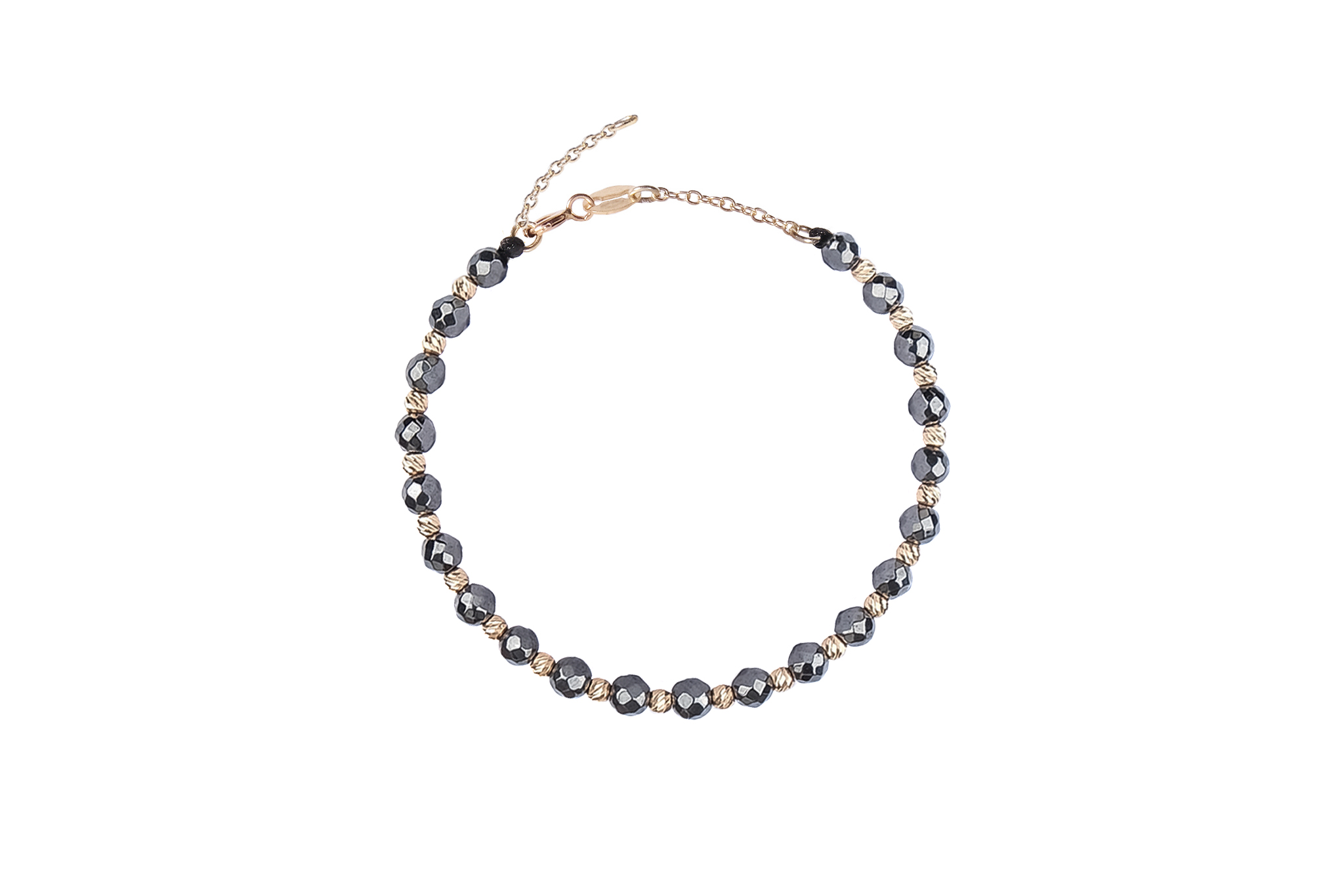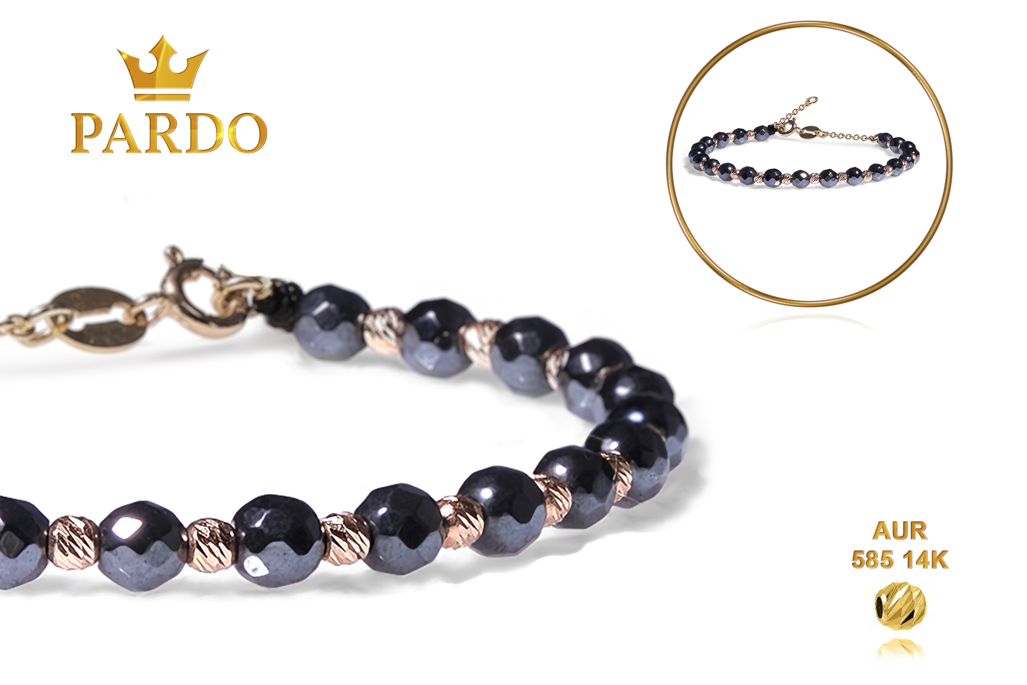 Bratara cu extensie lant Pardo realizata cu pietre semipretioase Hematit si Sfere striate din Aur 585 de 14 Karate