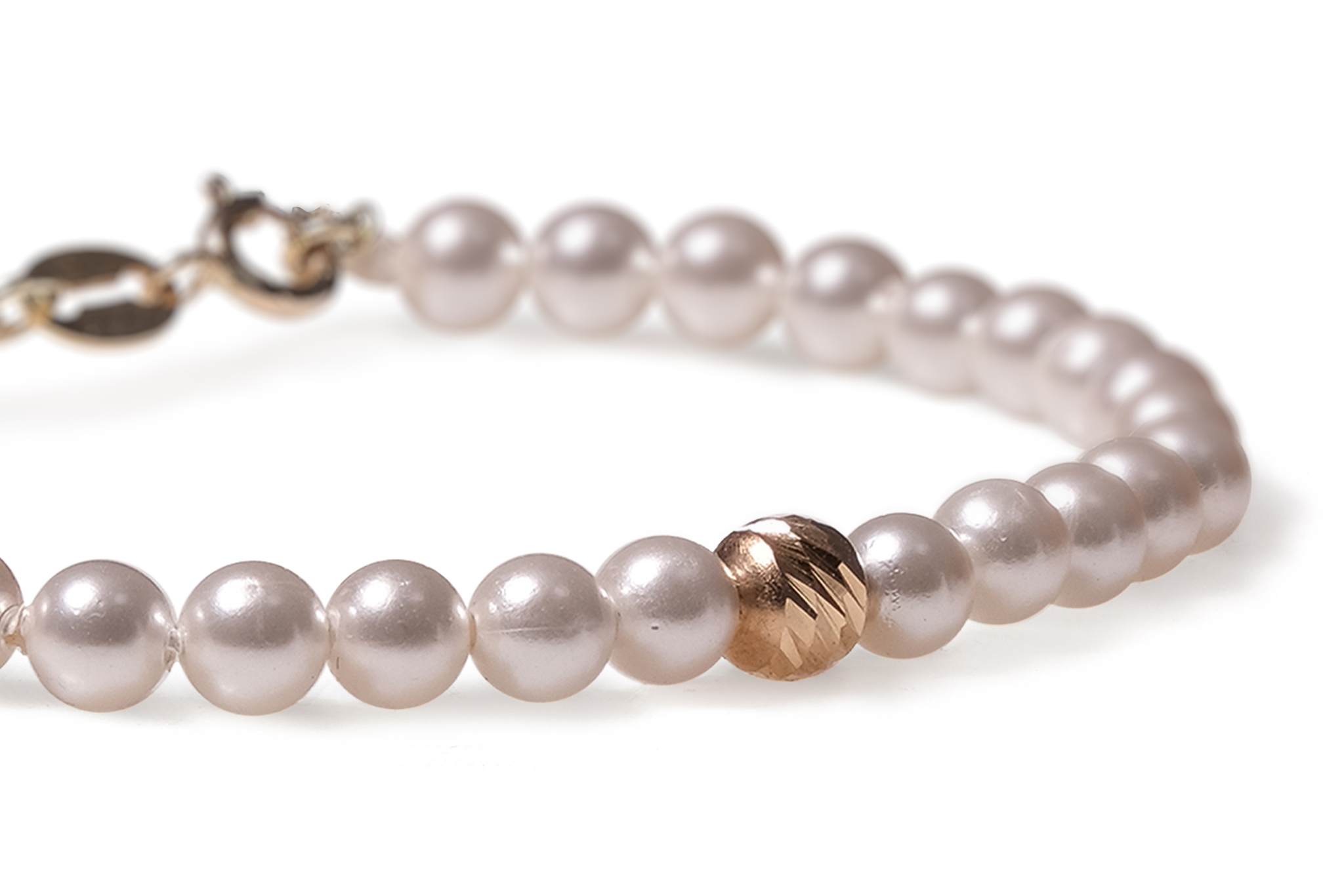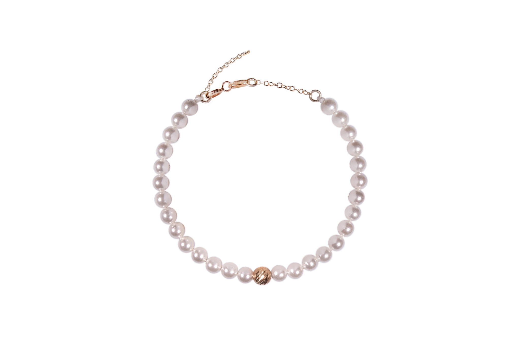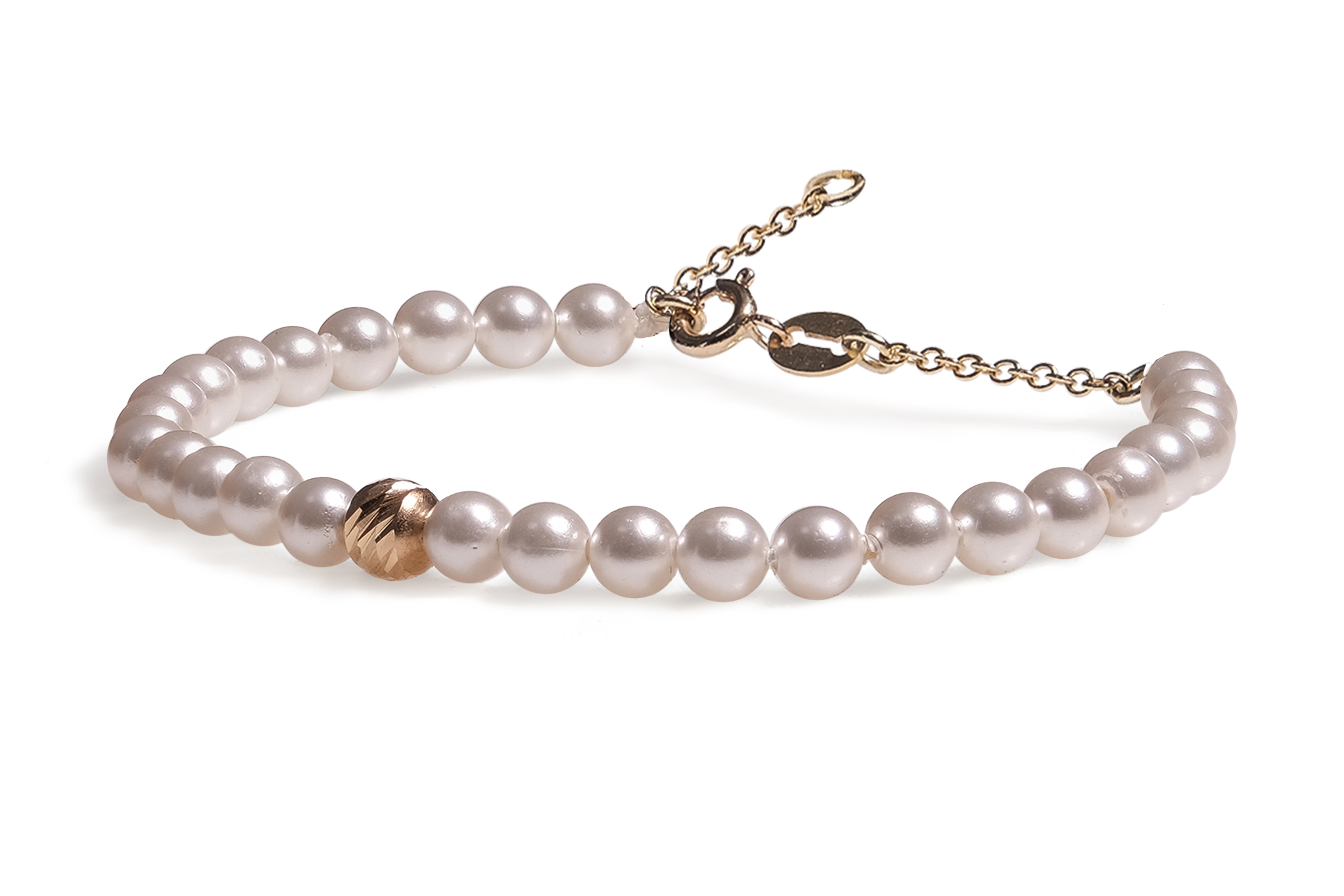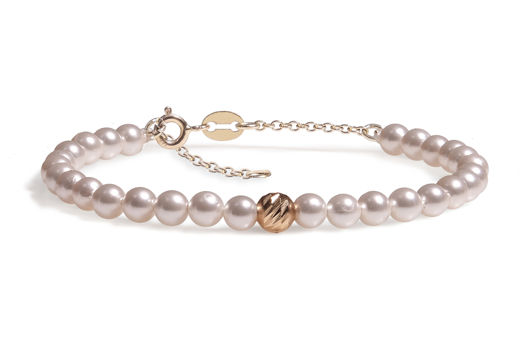 Bratara cu extensie lant Pardo realizata cu Perla de Mallorca si Sfere striate din Aur 585 de 14 Karate