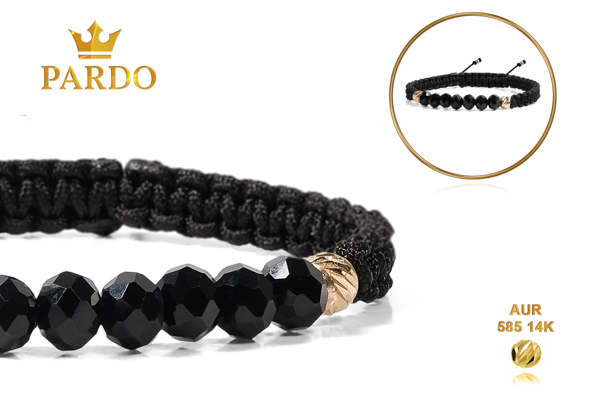 Întreaga colecție de brățări din aur este realizată cu aur de 14 Karate, aur de import Italia, calitatea aurului fiind astfel la un nivel superior. Aurul de 14 Karate folosit pentru colecțiile Pardo Gold este verificat certificat de organele abilitate prin autorizația emisă, astfel acesta corespunde în proportie de 94% din punct de vedere al caratajului cât și al gramajului.