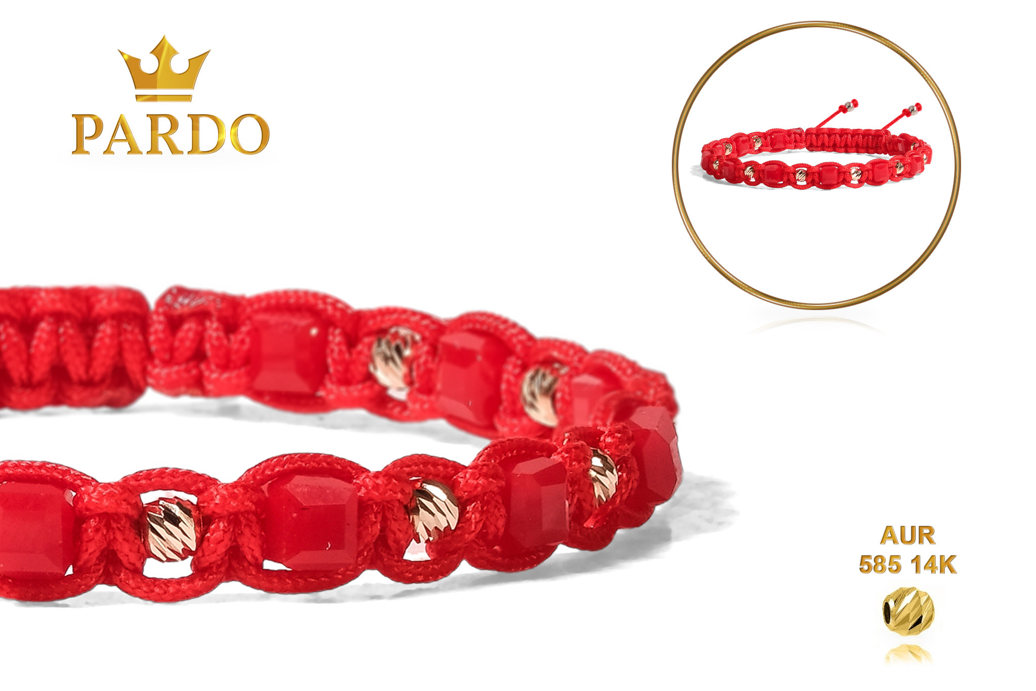 Întreaga colecție de brățări din aur este realizată cu aur de 14 Karate, aur de import Italia, calitatea aurului fiind astfel la un nivel superior. Aurul de 14 Karate folosit pentru colecțiile Pardo Gold este verificat certificat de organele abilitate prin autorizația emisă, astfel acesta corespunde în proportie de 94% din punct de vedere al caratajului cât și al gramajului.
