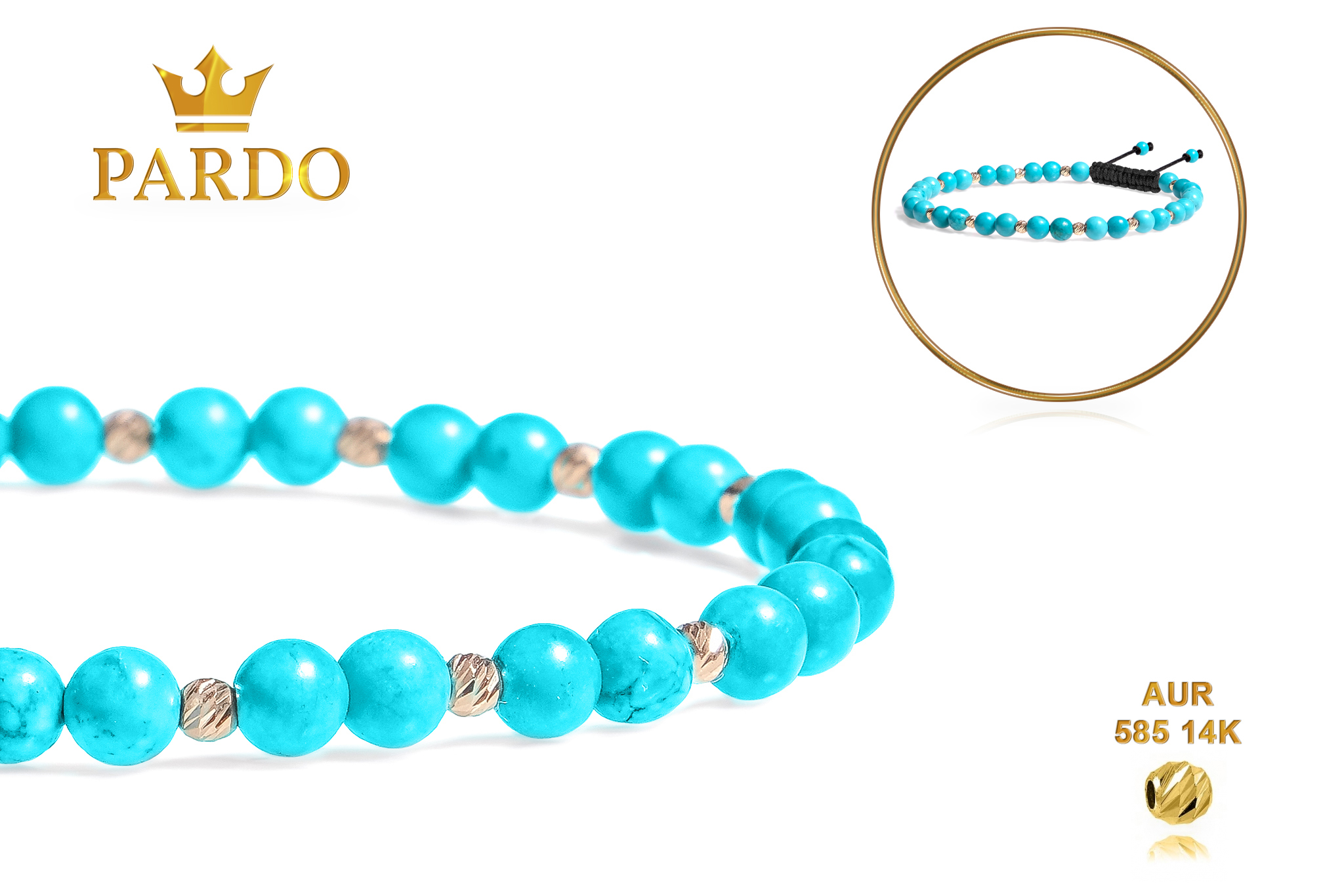 Întreaga colecție de brățări din aur este realizată cu aur de 14 Karate, aur de import Italia, calitatea aurului fiind astfel la un nivel superior. Aurul de 14 Karate folosit pentru colecțiile Pardo Gold este verificat certificat de organele abilitate prin autorizația emisă, astfel acesta corespunde în proportie de 94% din punct de vedere al caratajului cât și al gramajului.