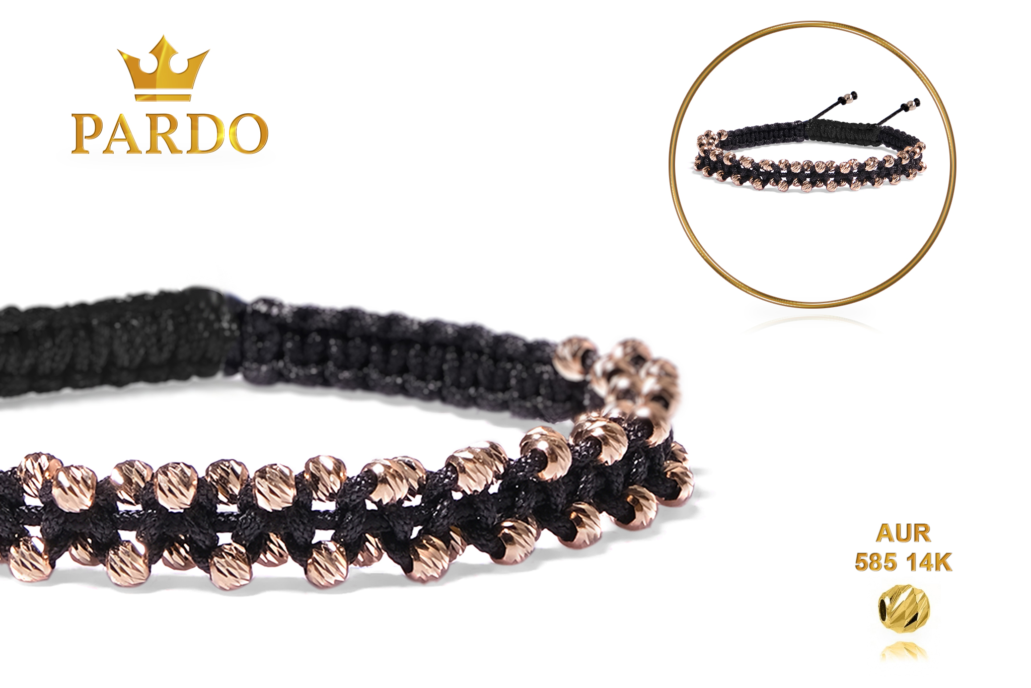 Întreaga colecție de brățări din aur este realizată cu aur de 14 Karate, aur de import Italia, calitatea aurului fiind astfel la un nivel superior. Aurul de 14 Karate folosit pentru colecțiile Pardo Gold este verificat certificat de organele abilitate prin autorizația emisă, astfel acesta corespunde în proportie de 94% din punct de vedere al caratajului cât și al gramajului.