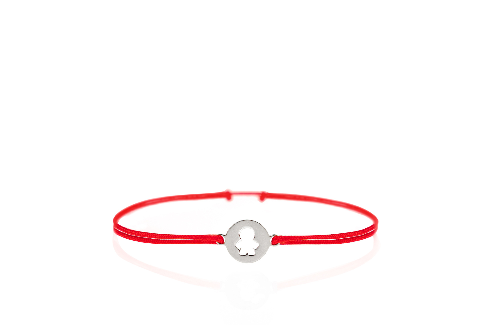 Brățară Pardo pentru copii cu șnur roșu și bănuț simbol “băiețel” din Aur de 14 Karate