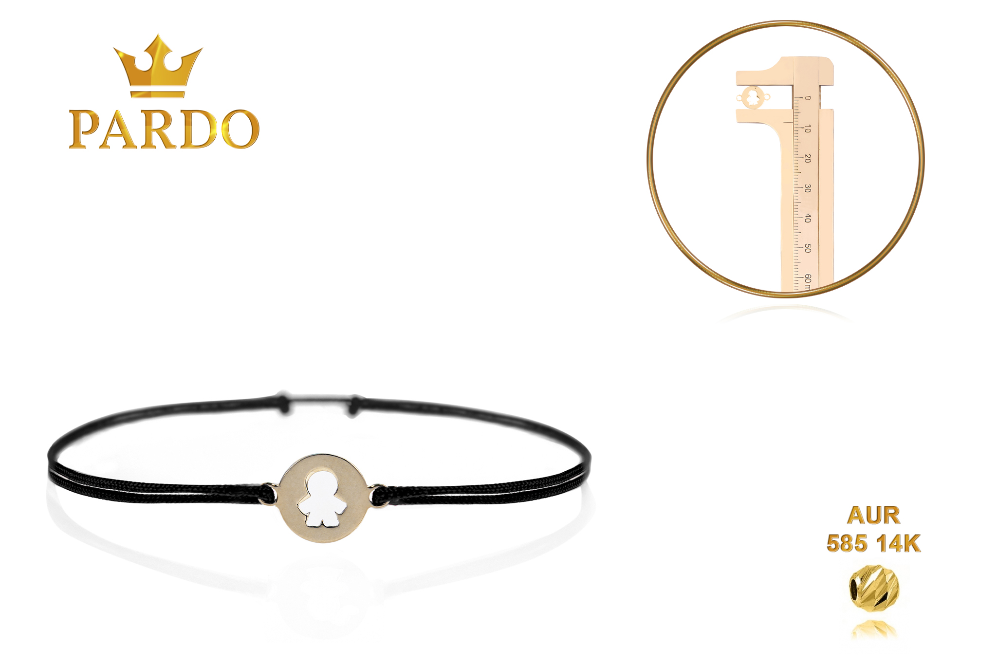 Întreaga colecție de brățări din aur este realizată cu aur de 14 Karate, aur de import Italia, calitatea aurului fiind astfel la un nivel superior. Aurul de 14 Karate folosit pentru colecțiile Pardo Gold este verificat certificat de organele abilitate prin autorizația emisă, astfel acesta corespunde în proportie de 94% din punct de vedere al caratajului cât și al gramajului.