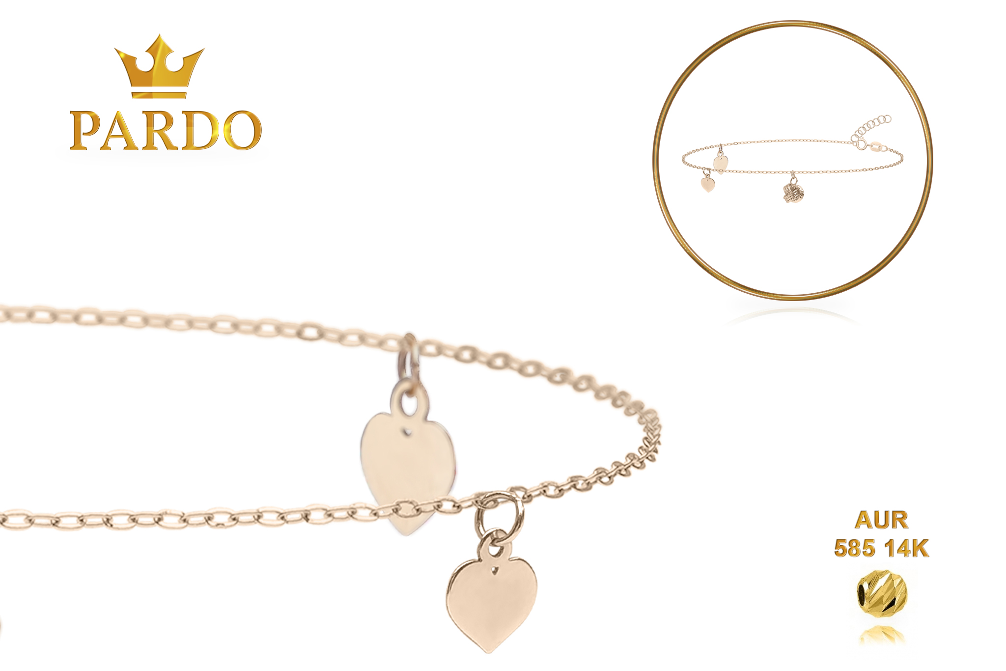 Întreaga colecție de brățări din aur este realizată cu aur de 14 Karate, aur de import Italia, calitatea aurului fiind astfel la un nivel superior. Aurul de 14 Karate folosit pentru colecțiile Pardo Gold este verificat certificat de organele abilitate prin autorizația emisă, astfel acesta corespunde în proportie de 94% din punct de vedere al caratajului cât și al gramajului.
