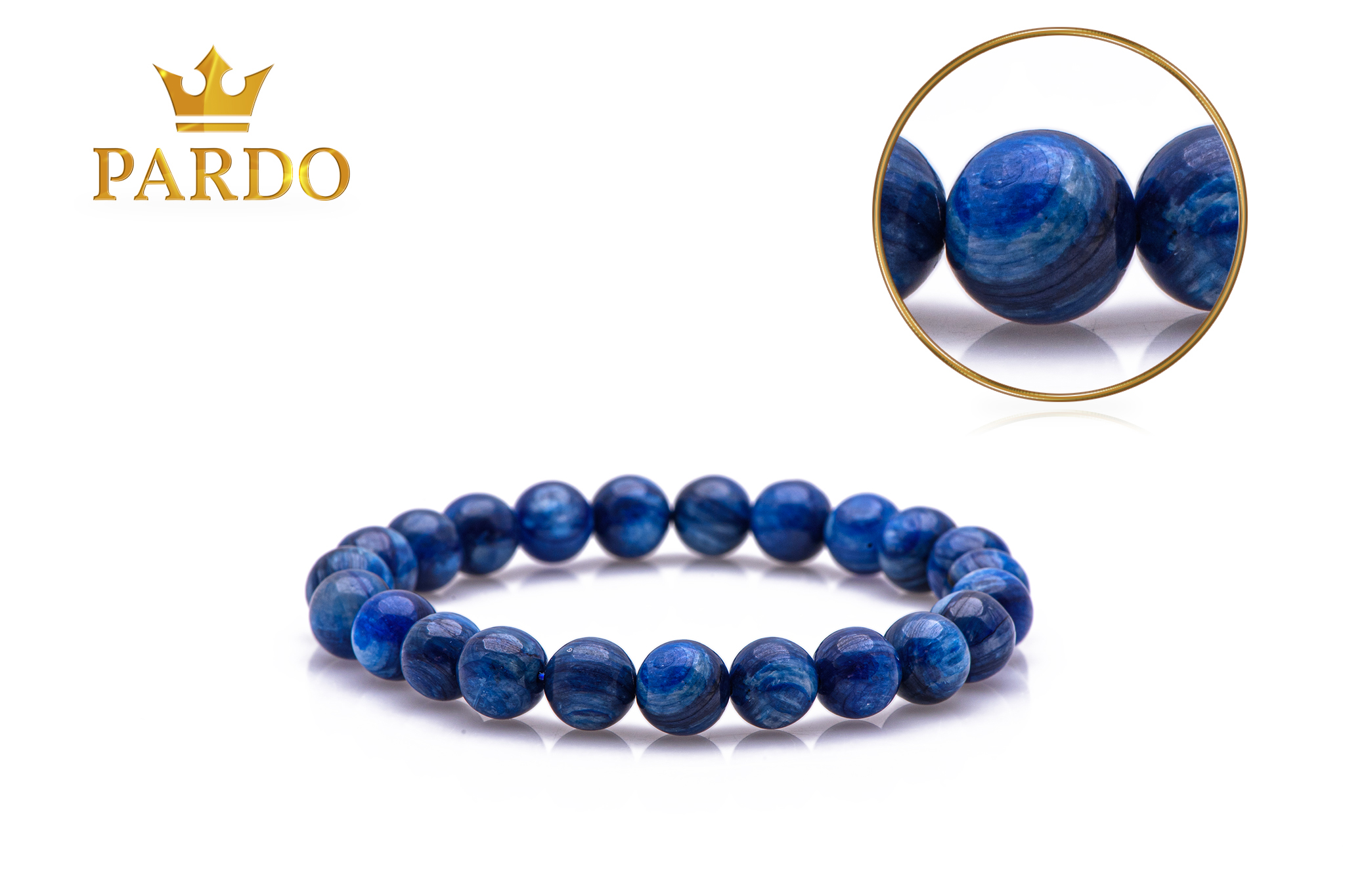 Brățară Pardo cu pietre semiprețioase Kyanit de 8 mm realizată cu elastic