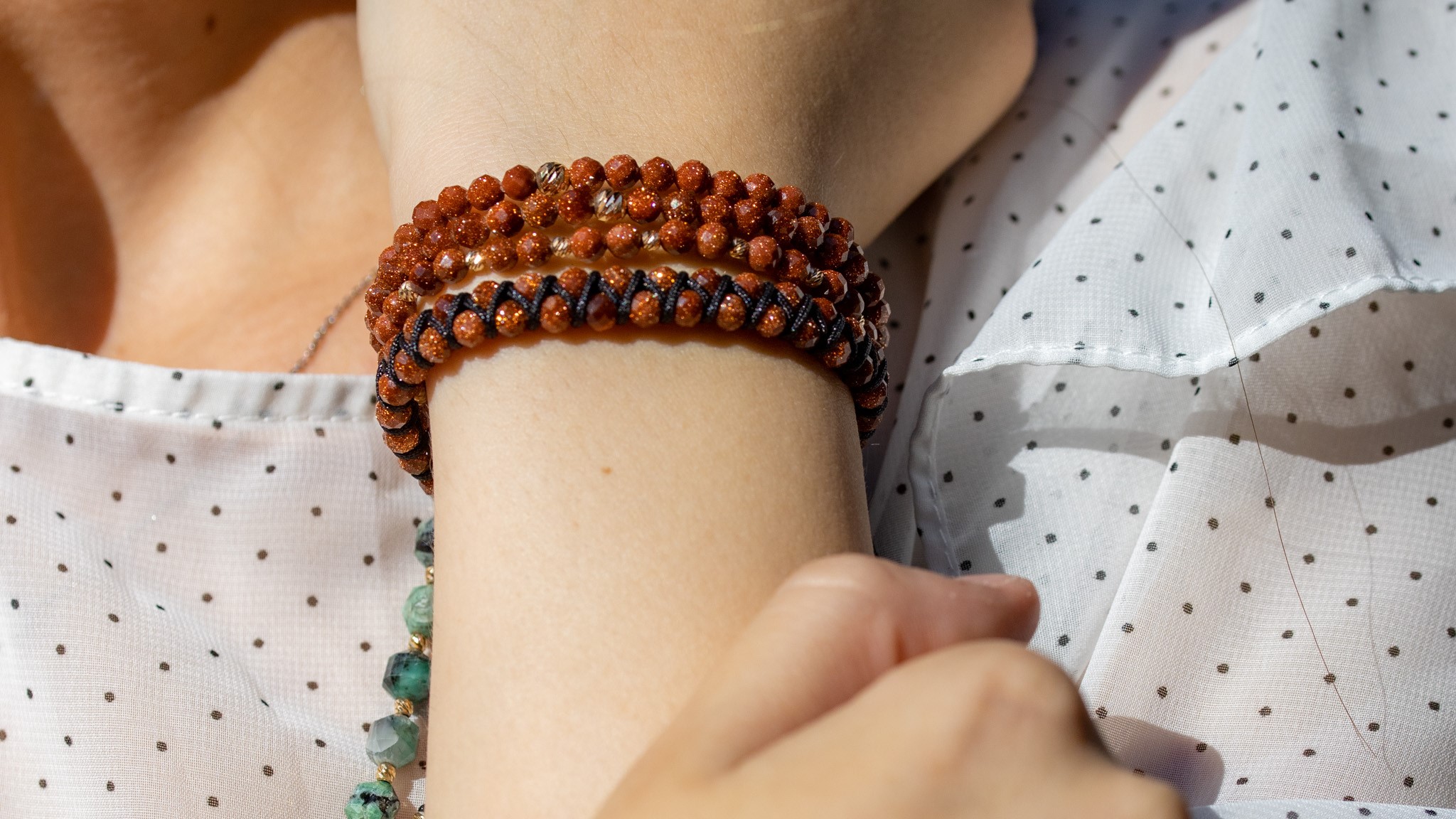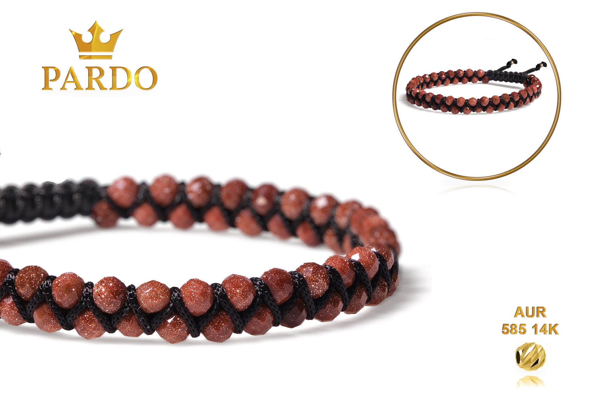 Brățară Pardo realizată cu șnur împletit și pietre semiprețioase Piatra Soarelui Maro