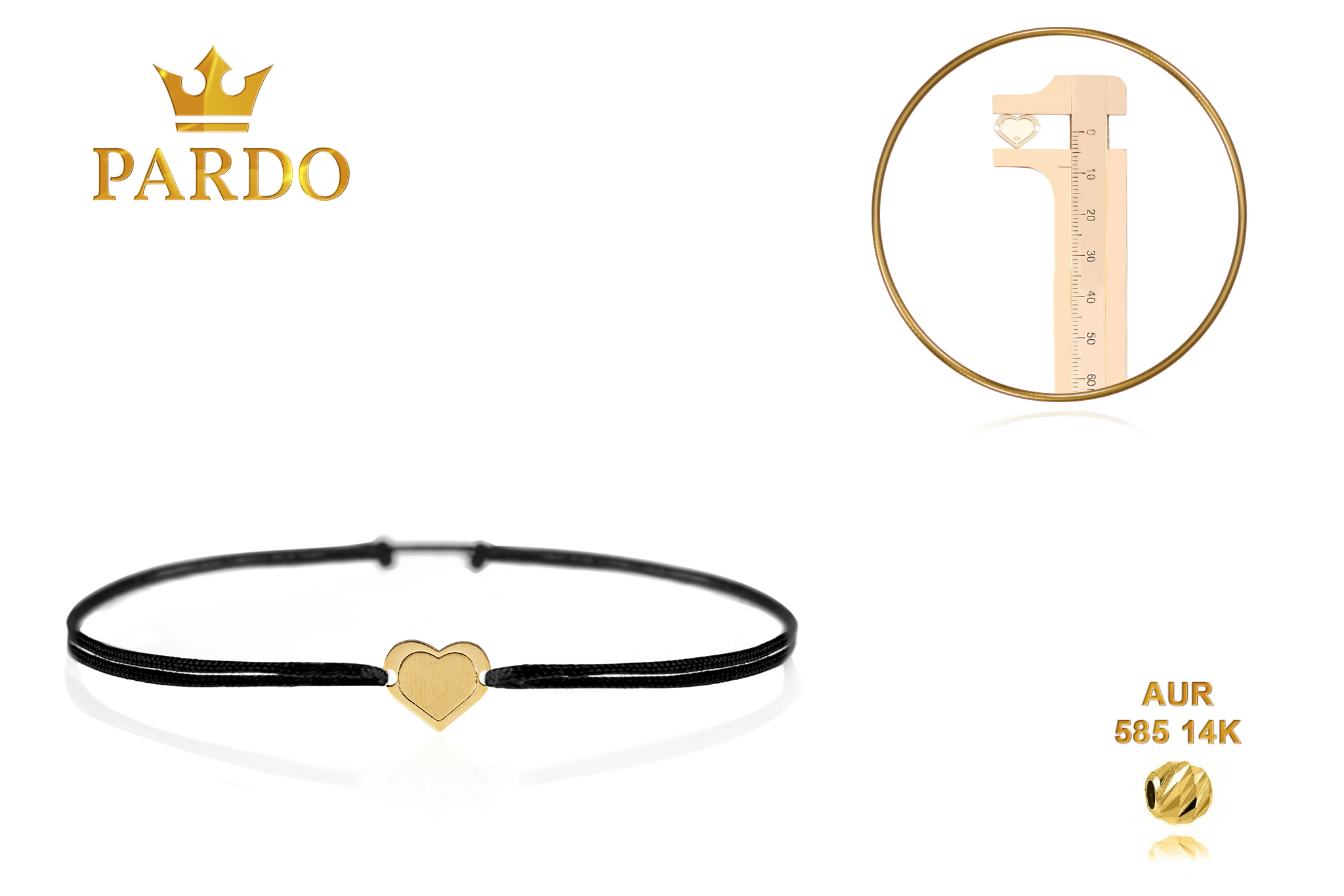 Întreaga colecție de brățări din aur este realizată cu aur de 14 Karate, aur de import Italia, calitatea aurului fiind astfel la un nivel superior. Aurul de 14 Karate folosit pentru colecțiile Pardo Gold este verificat certificat de organele abilitate prin autorizația emisă, astfel acesta corespunde în proportie de 94% din punct de vedere al caratajului cât și al gramajului.