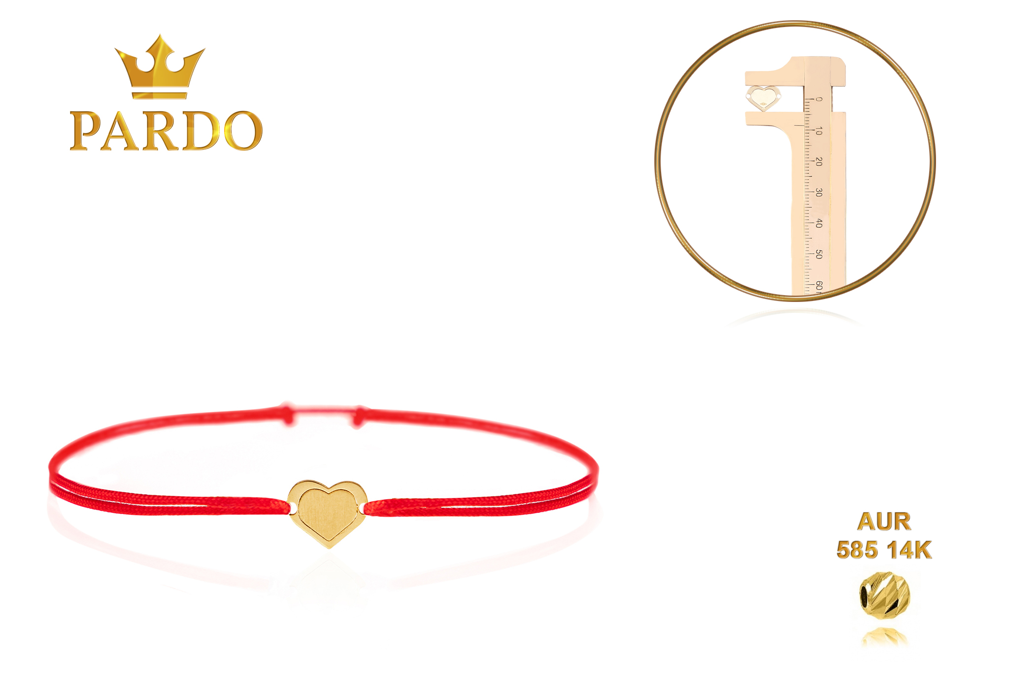 Brățară Pardo cu șnur roșu și bănuț simbol “inimioară” din Aur de 14 Karate