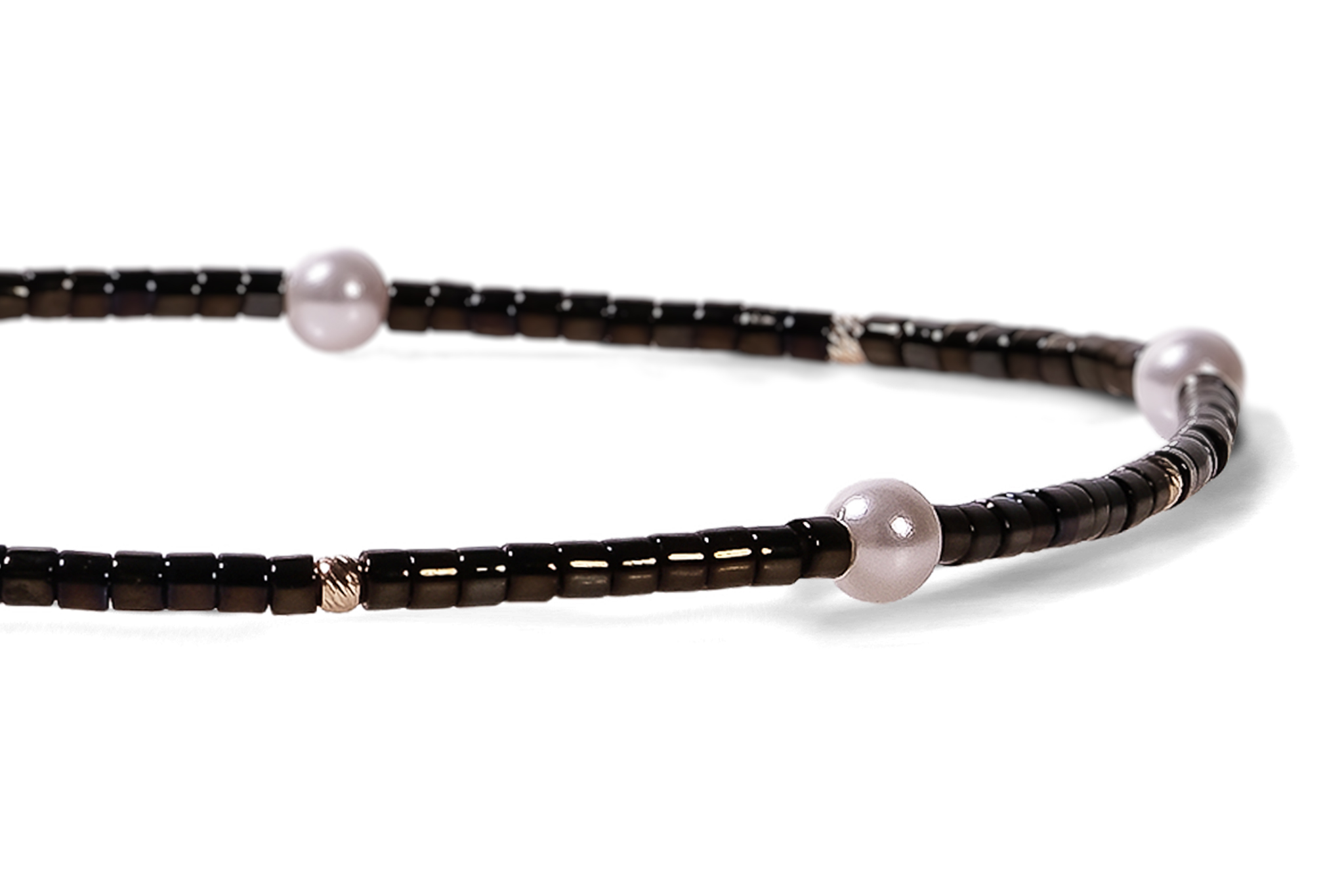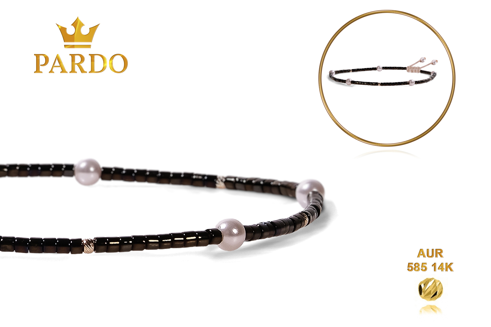 Bratara Pardo de picior realizata cu pietre de nisip Miyuki, Perle si sfere Aur 585 14K