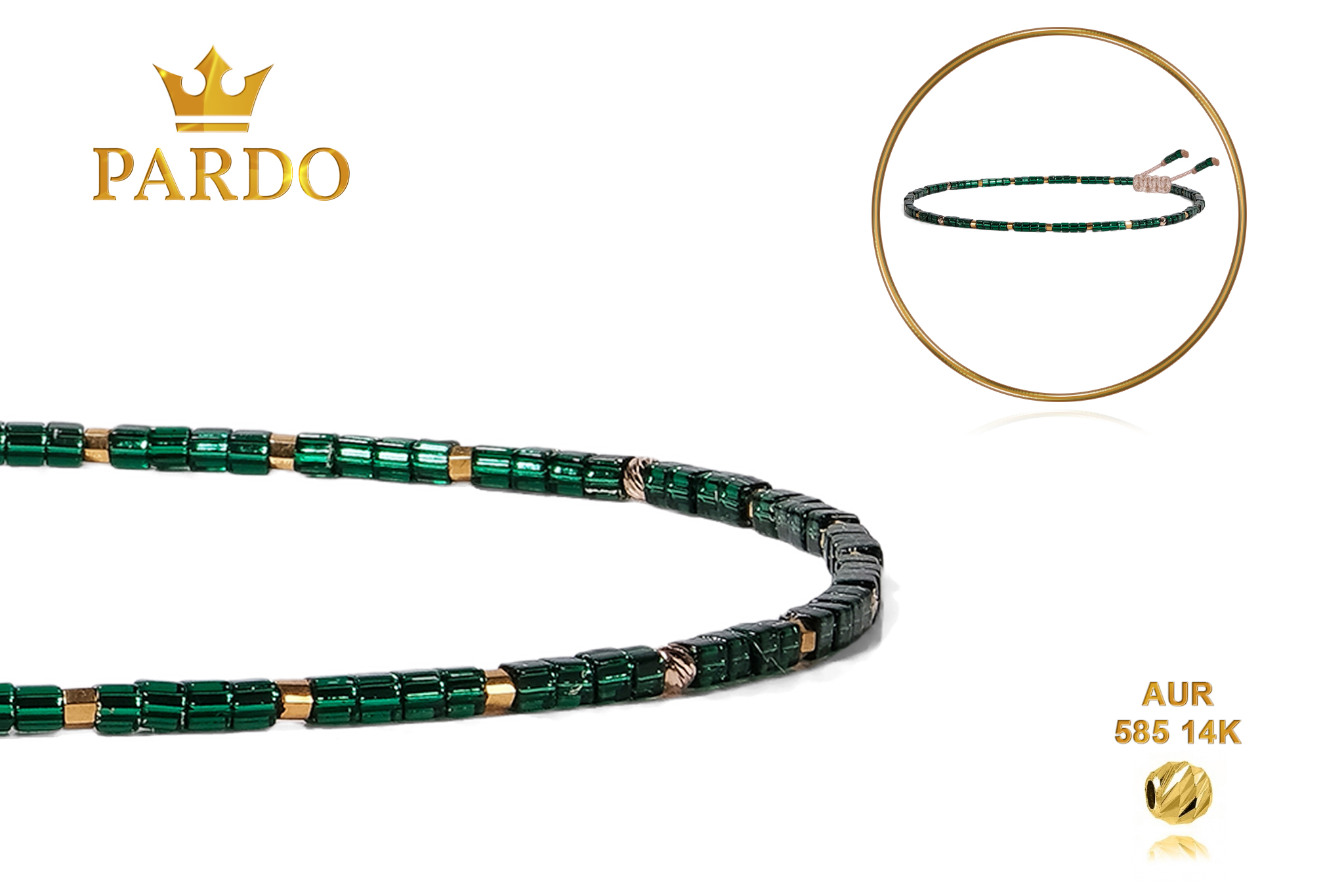 Întreaga colecție de brățări din aur este realizată cu aur de 14 Karate, aur de import Italia, calitatea aurului fiind astfel la un nivel superior. Aurul de 14 Karate folosit pentru colecțiile Pardo Gold este verificat certificat de organele abilitate prin autorizația emisă, astfel acesta corespunde în proportie de 94% din punct de vedere al caratajului cât și al gramajului.