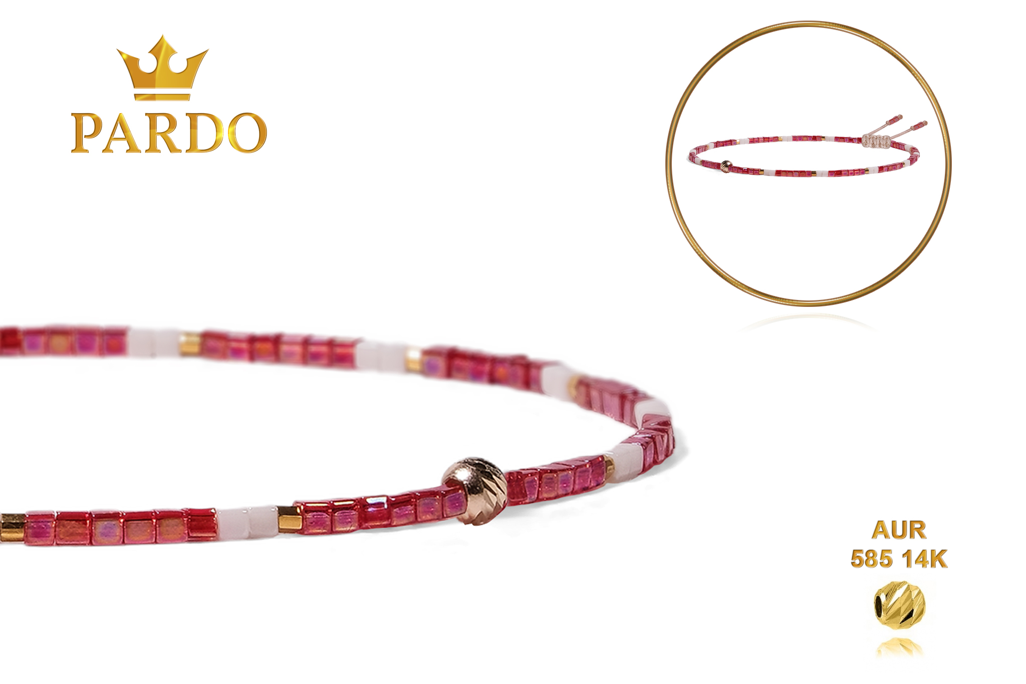 Întreaga colecție de brățări din aur este realizată cu aur de 14 Karate, aur de import Italia, calitatea aurului fiind astfel la un nivel superior. Aurul de 14 Karate folosit pentru colecțiile Pardo Gold este verificat certificat de organele abilitate prin autorizația emisă, astfel acesta corespunde în proportie de 94% din punct de vedere al caratajului cât și al gramajului.