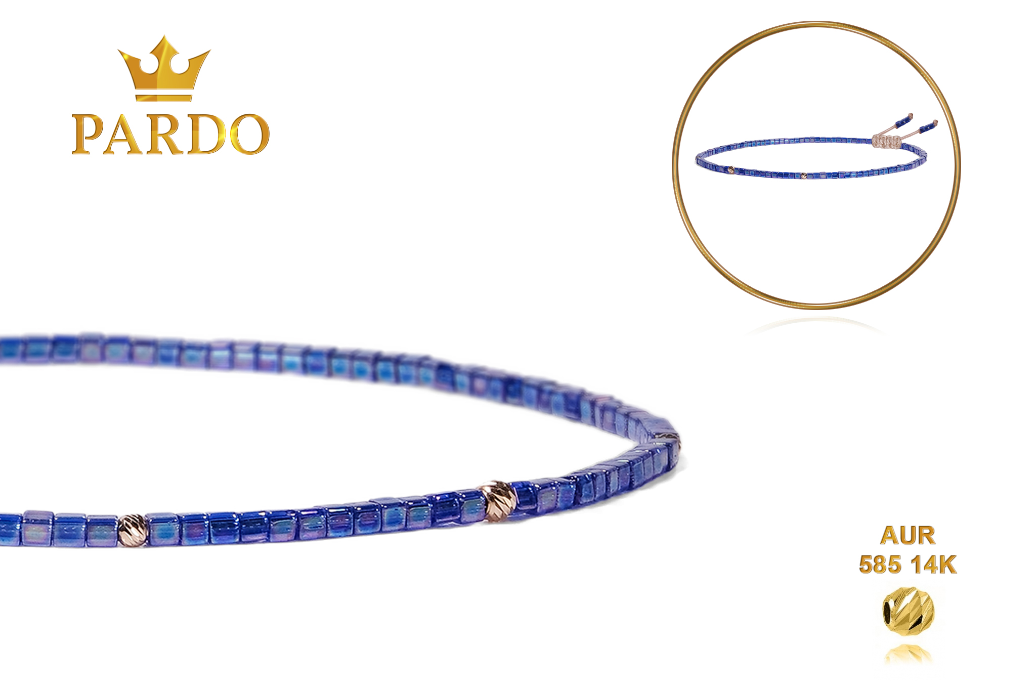 Întreaga colecție de brățări din aur este realizată cu aur de 14 Karate, aur de import Italia, calitatea aurului fiind astfel la un nivel superior. Aurul de 14 Karate folosit pentru colecțiile Pardo Gold este verificat certificat de organele abilitate prin autorizația emisă, astfel acesta corespunde în proportie de 94% din punct de vedere al caratajului cât și al gramajului.
