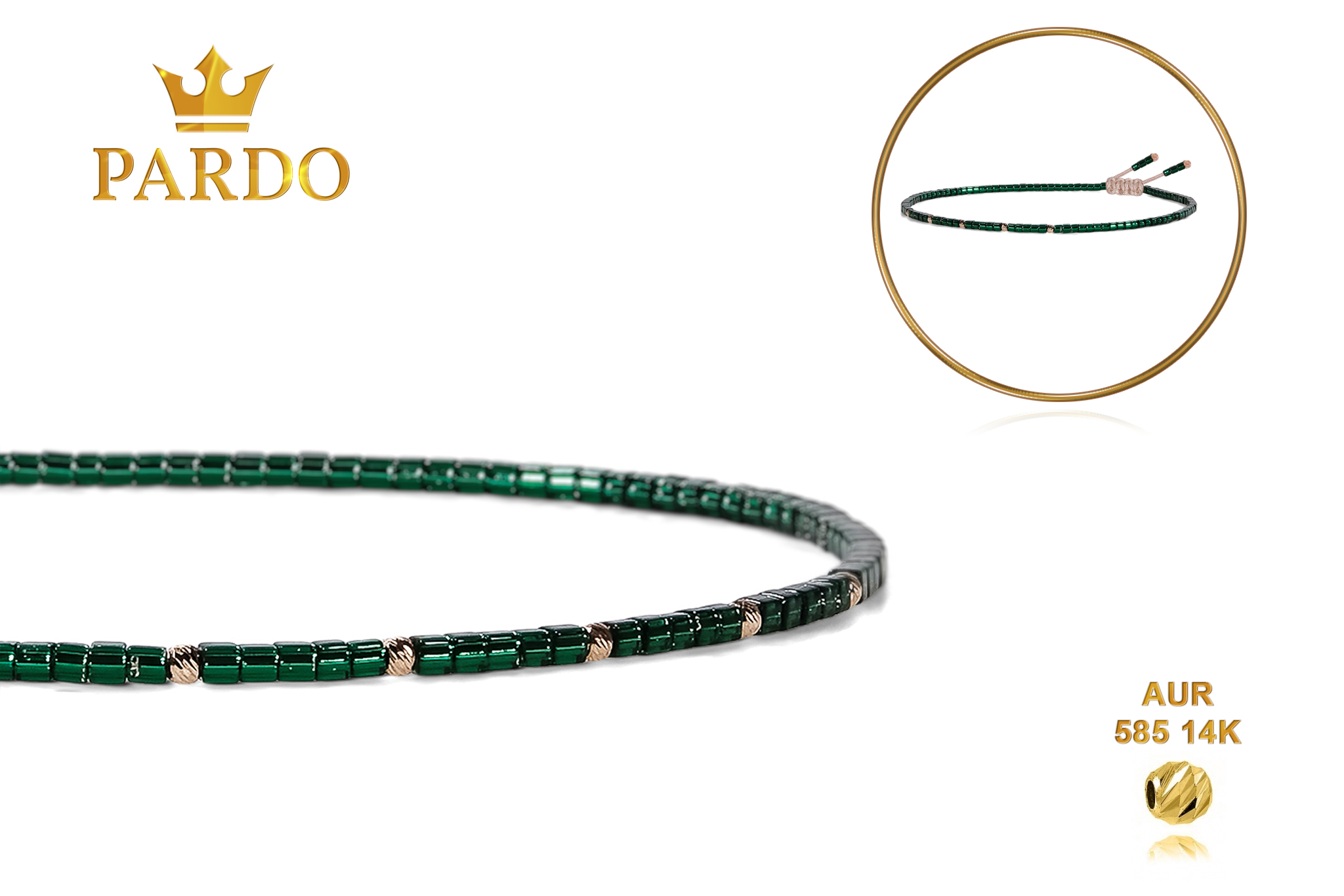 Întreaga colecție de brățări din aur este realizată cu aur de 14 Karate, aur de import Italia, calitatea aurului fiind astfel la un nivel superior. Aurul de 14 Karate folosit pentru colecțiile Pardo Gold este verificat certificat de organele abilitate prin autorizația emisă, astfel acesta corespunde în proportie de 94% din punct de vedere al caratajului cât și al gramajului.