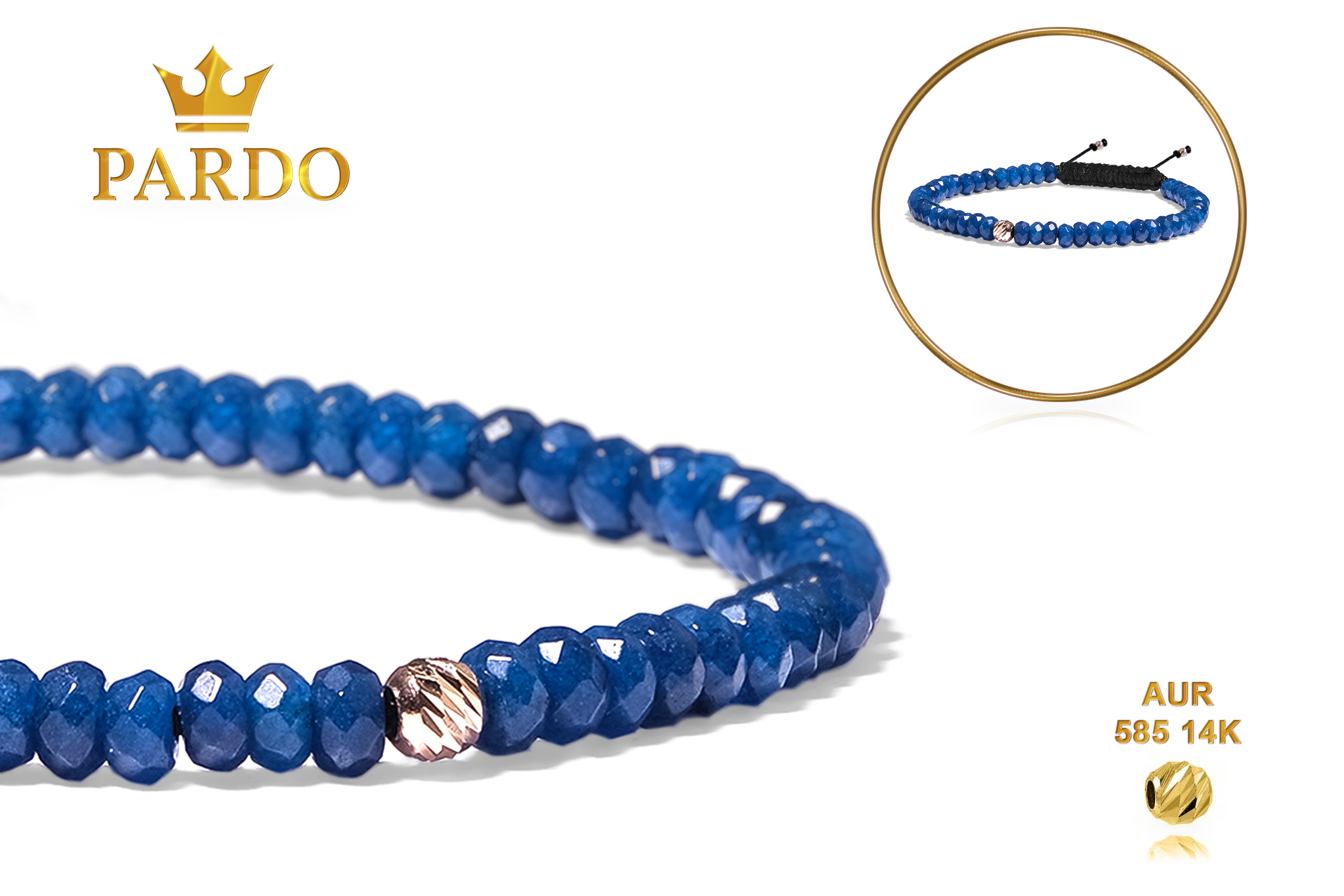 Întreaga colecție de brățări din aur este realizată cu aur de 14 Karate, aur de import Italia, calitatea aurului fiind astfel la un nivel superior. Aurul de 14 Karate folosit pentru colecțiile Pardo Gold este verificat certificat de organele abilitate prin autorizația emisă, astfel acesta corespunde în proportie de 94% din punct de vedere al caratajului cât și al gramajului.