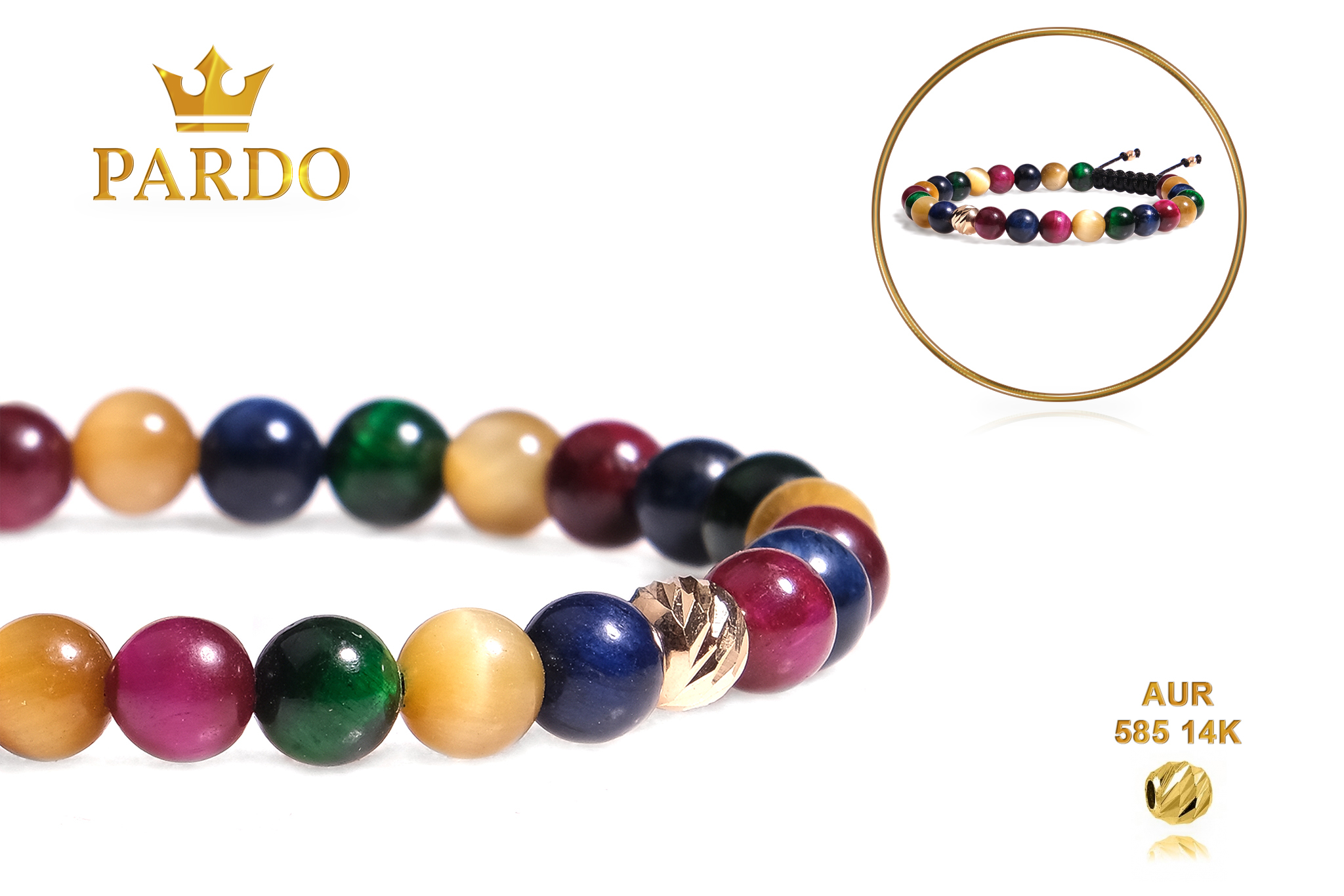 Întreaga colecție de brățări din aur este realizată cu aur de 14 Karate, aur de import Italia, calitatea aurului fiind astfel la un nivel superior. Aurul de 14 Karate folosit pentru colecțiile Pardo Gold este verificat certificat de organele abilitate prin autorizația emisă, astfel acesta corespunde în proportie de 94% din punct de vedere al caratajului cât și al gramajului.