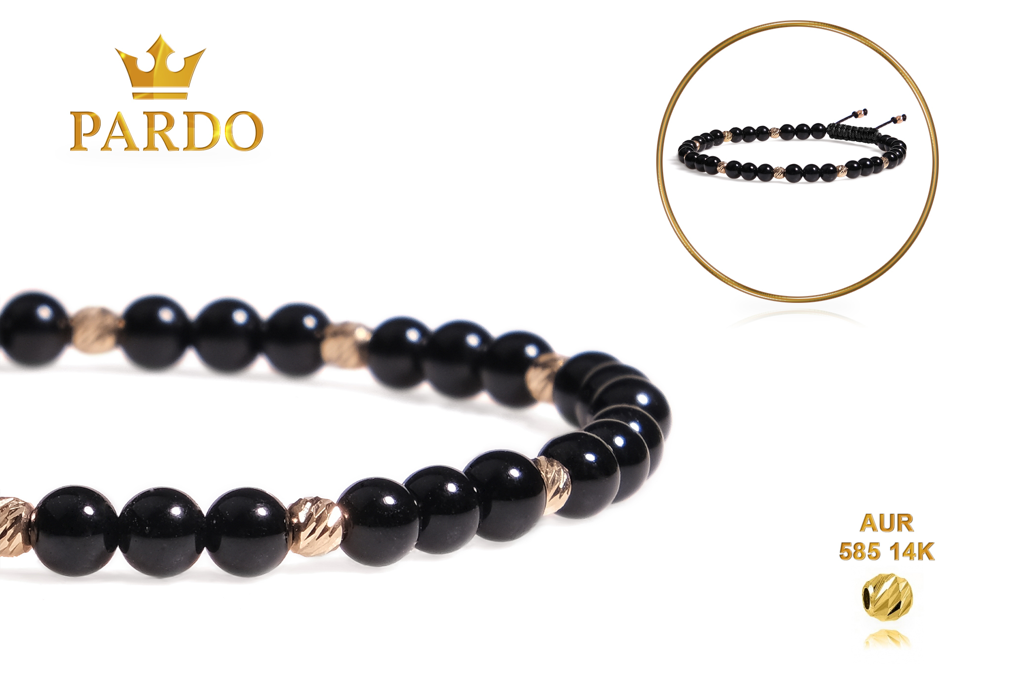 Întreaga colecție de brățări din aur este realizată cu aur de 14 Karate, aur de import Italia, calitatea aurului fiind astfel la un nivel superior. Aurul de 14 Karate folosit pentru colecțiile Pardo Gold este verificat certificat de organele abilitate prin autorizația emisă, astfel acesta corespunde în proportie de 94% din punct de vedere al caratajului cât și al gramajului.