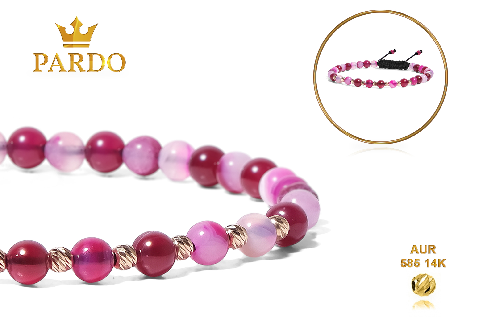 Bratara Pardo realizata cu Agat și bile de Aur 585 14K
