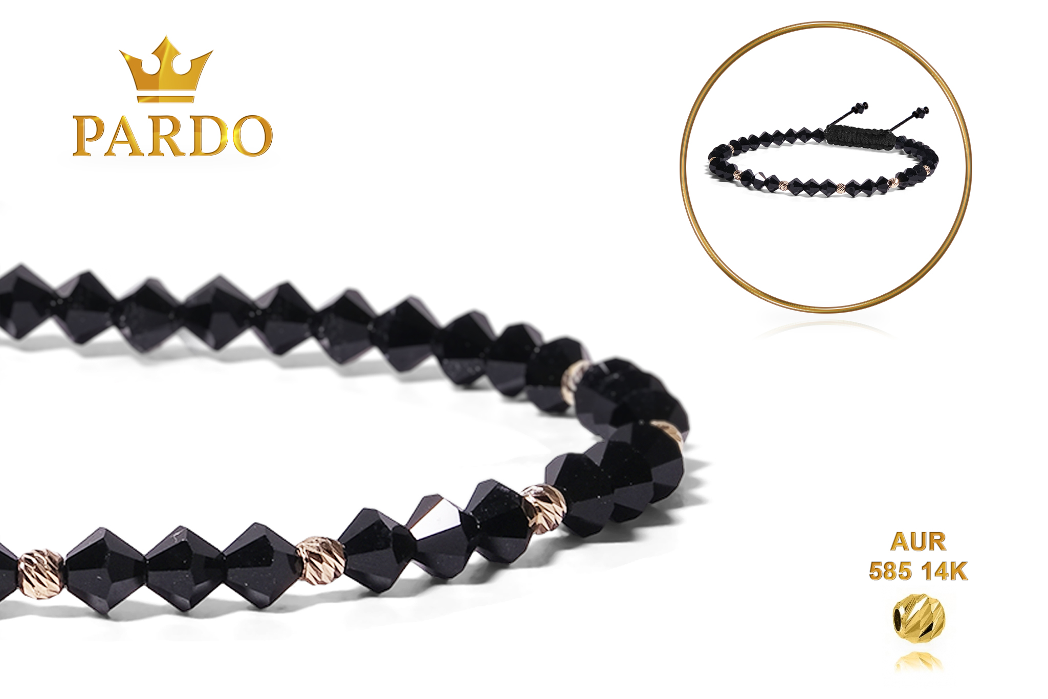 Întreaga colecție de brățări din aur este realizată cu aur de 14 Karate, aur de import Italia, calitatea aurului fiind astfel la un nivel superior. Aurul de 14 Karate folosit pentru colecțiile Pardo Gold este verificat certificat de organele abilitate prin autorizația emisă, astfel acesta corespunde în proportie de 94% din punct de vedere al caratajului cât și al gramajului.