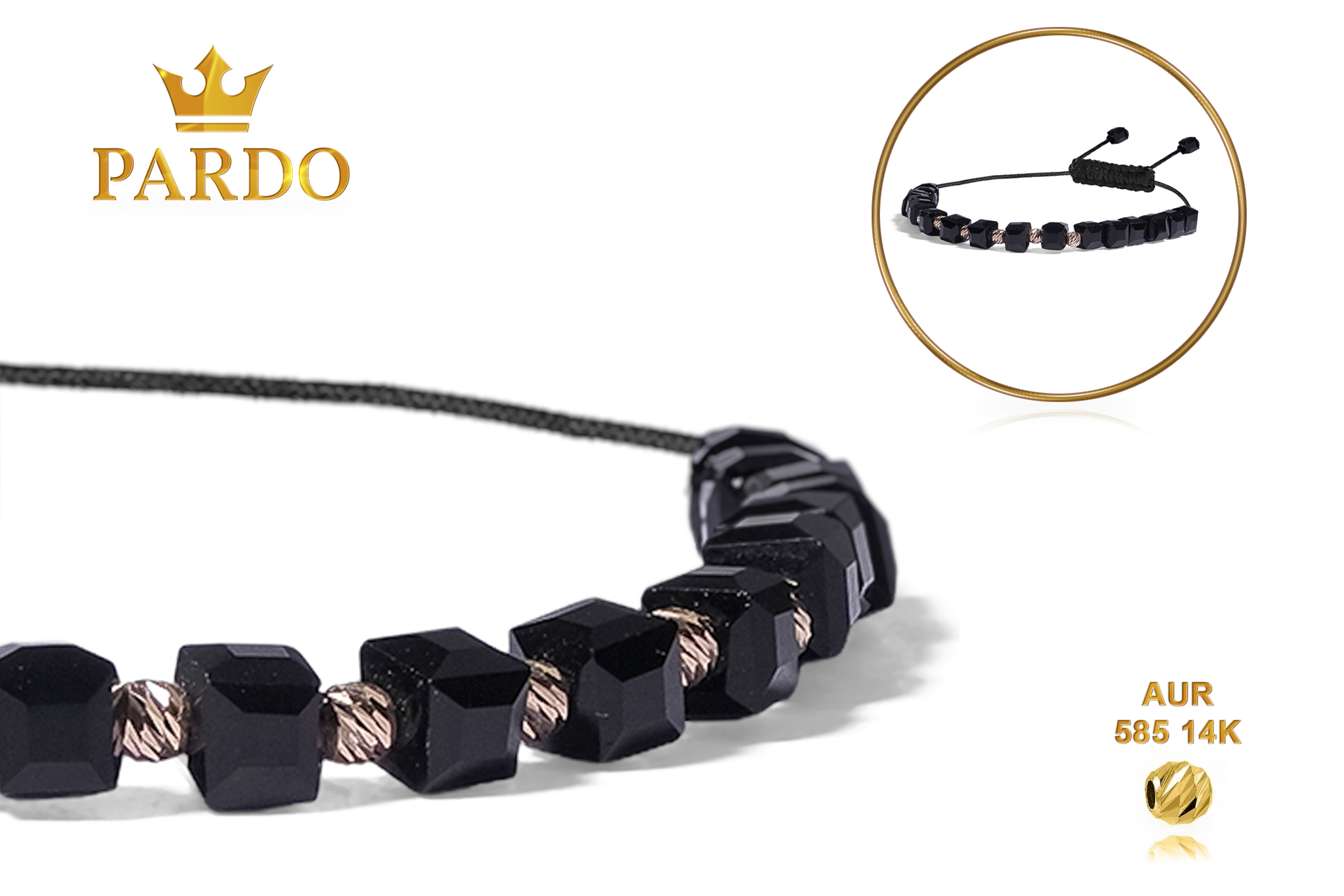 Întreaga colecție de brățări din aur este realizată cu aur de 14 Karate, aur de import Italia, calitatea aurului fiind astfel la un nivel superior. Aurul de 14 Karate folosit pentru colecțiile Pardo Gold este verificat certificat de organele abilitate prin autorizația emisă, astfel acesta corespunde în proportie de 94% din punct de vedere al caratajului cât și al gramajului.