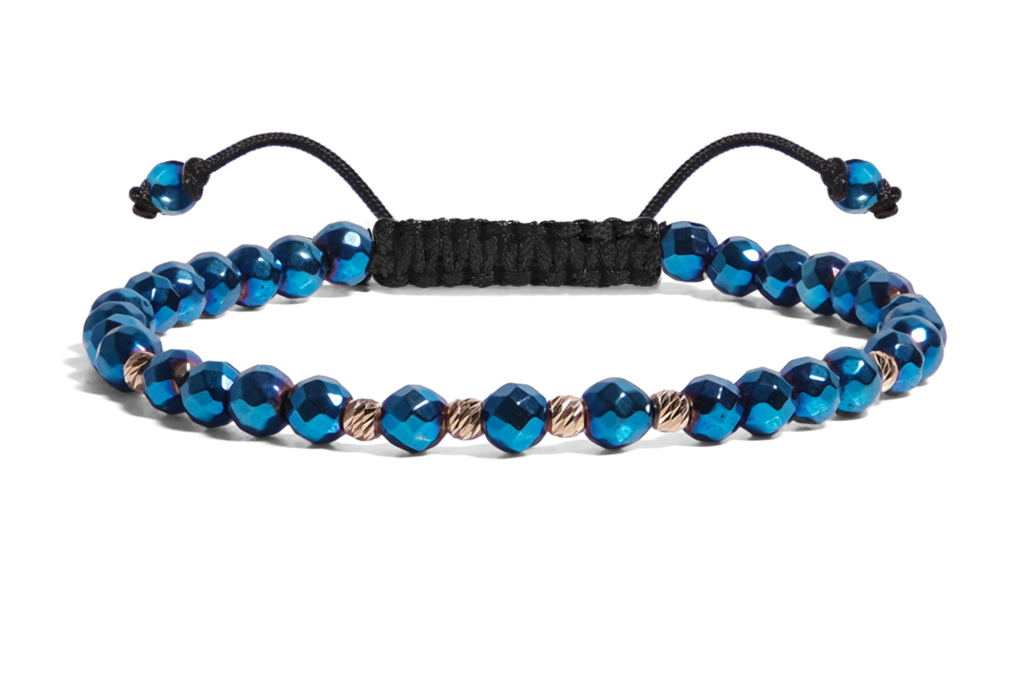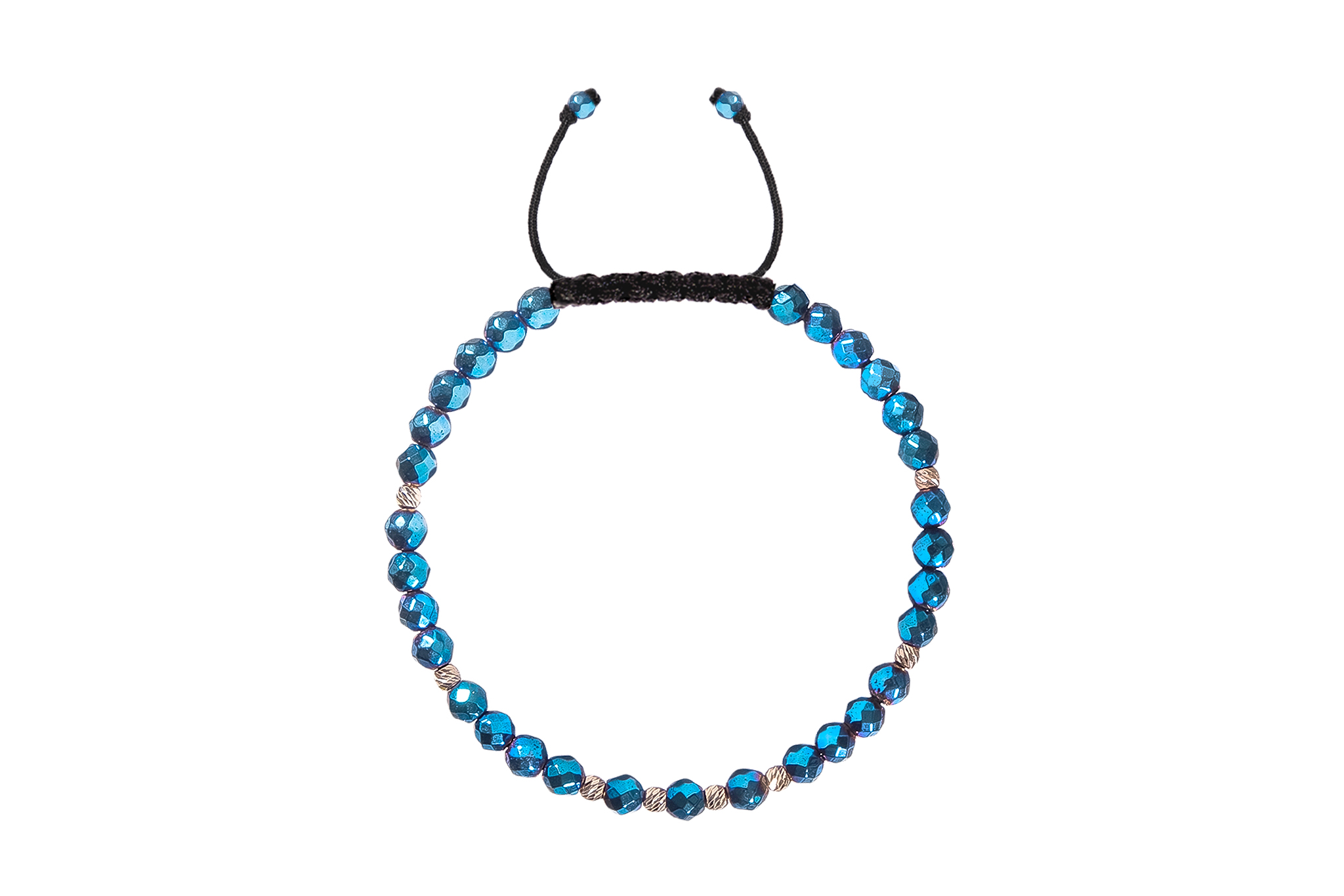 Bratara Pardo realizată cu Hematit Albastru 4 mm și bile de Aur 585 14K