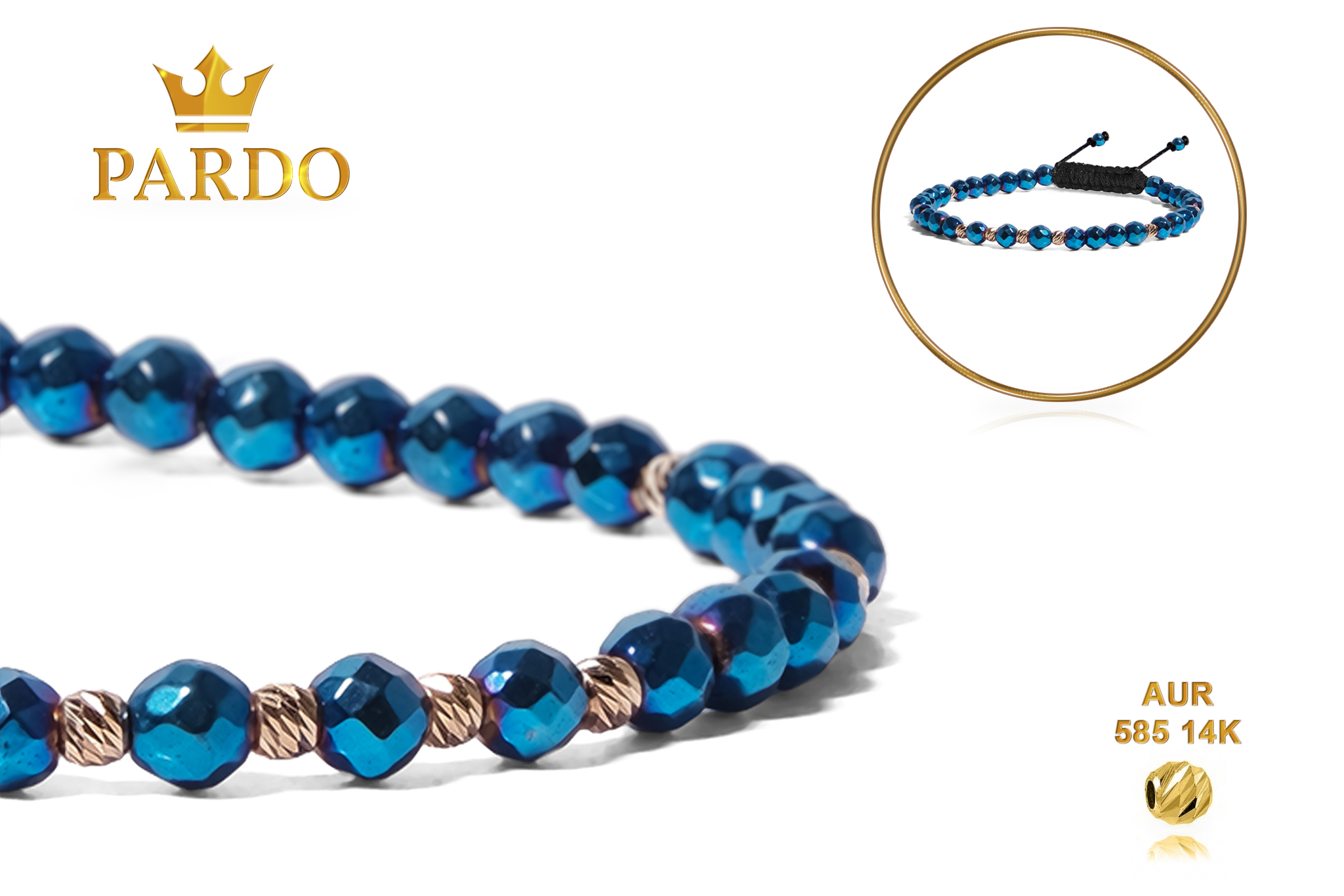 Întreaga colecție de brățări din aur este realizată cu aur de 14 Karate, aur de import Italia, calitatea aurului fiind astfel la un nivel superior. Aurul de 14 Karate folosit pentru colecțiile Pardo Gold este verificat certificat de organele abilitate prin autorizația emisă, astfel acesta corespunde în proportie de 94% din punct de vedere al caratajului cât și al gramajului.