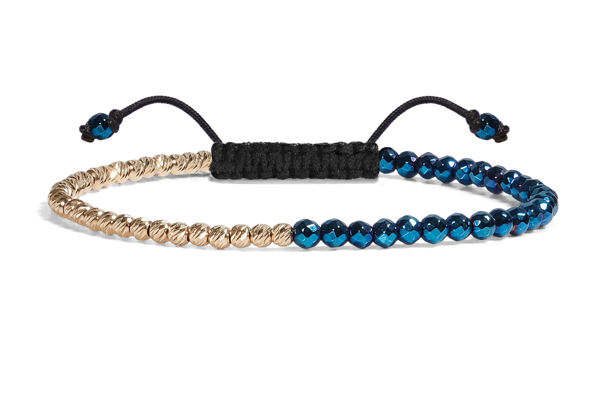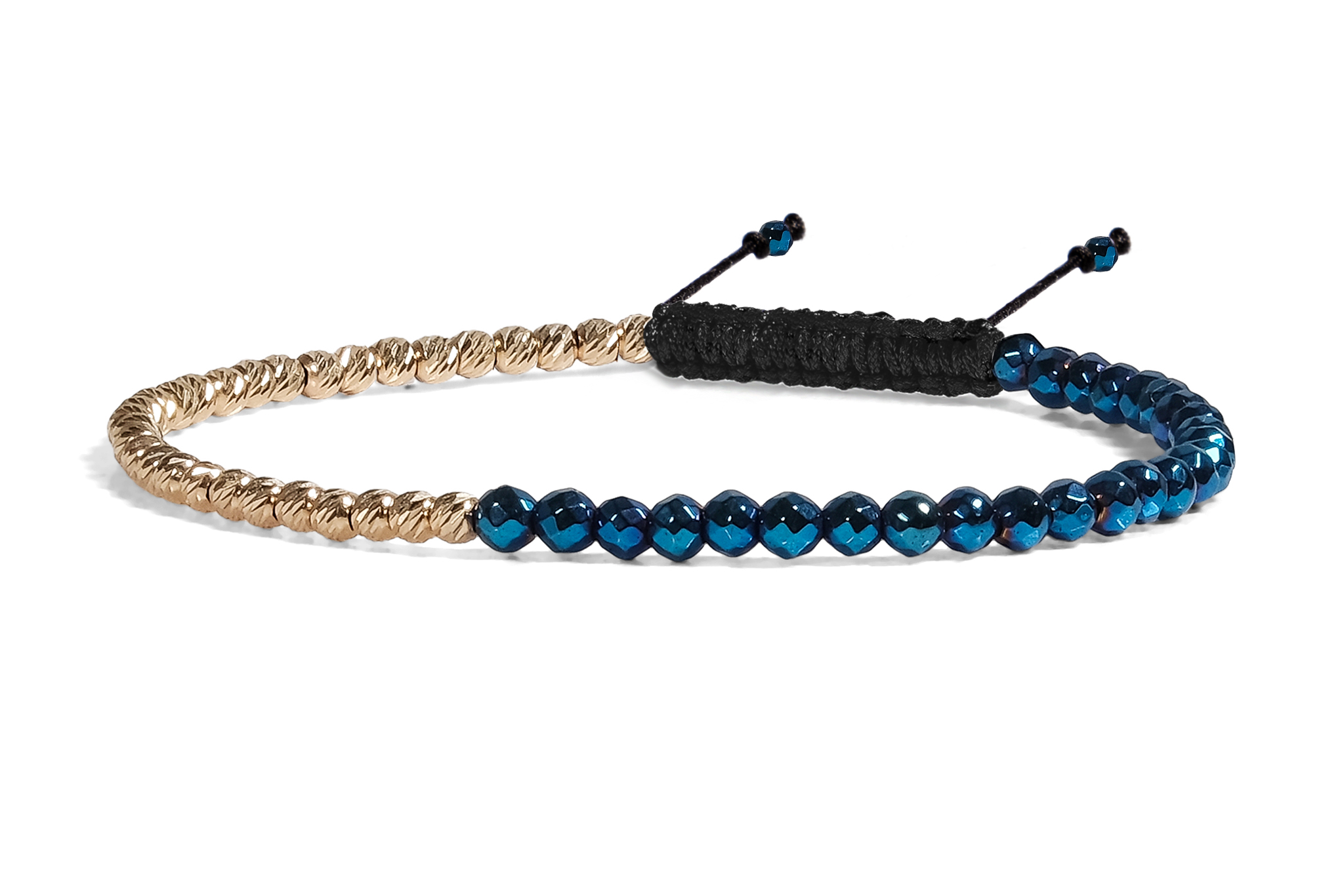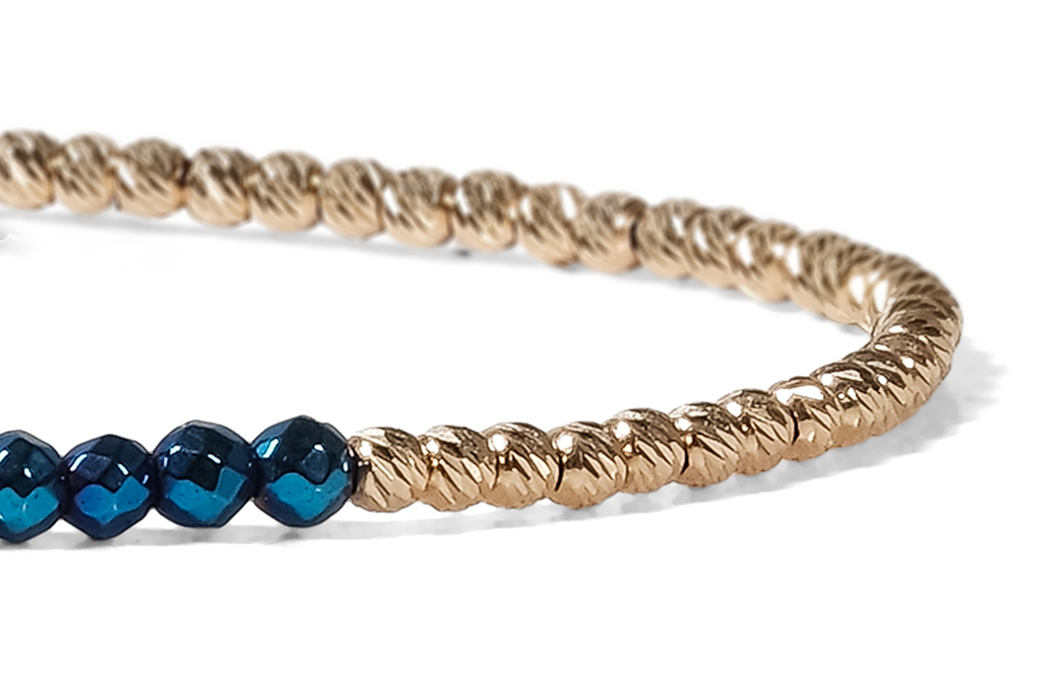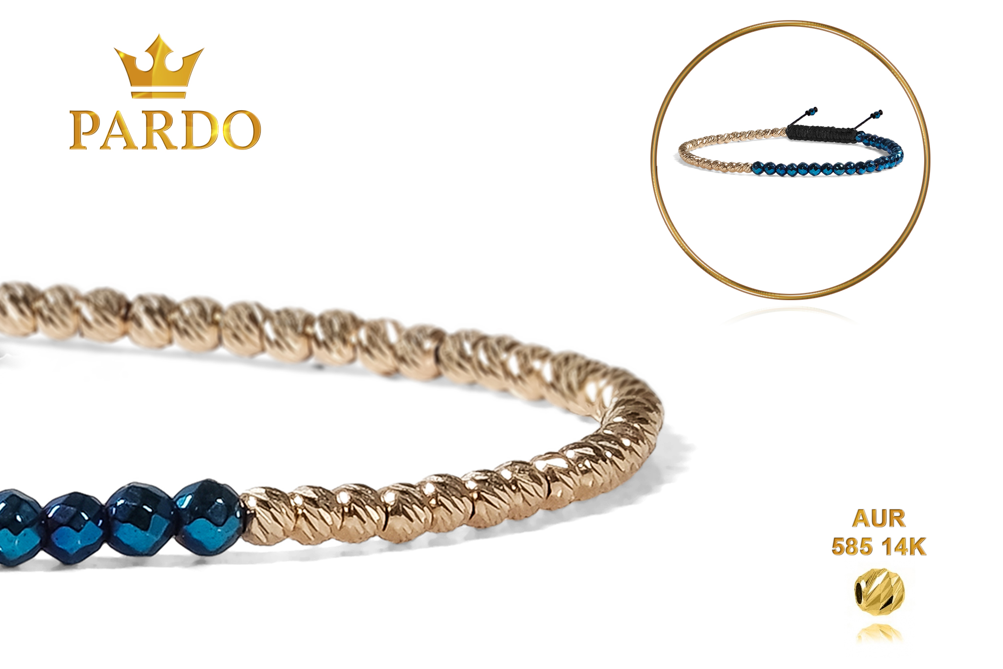 Bratara Pardo realizata cu Hematit Albastru de 3 mm și bile de Aur 585 14K