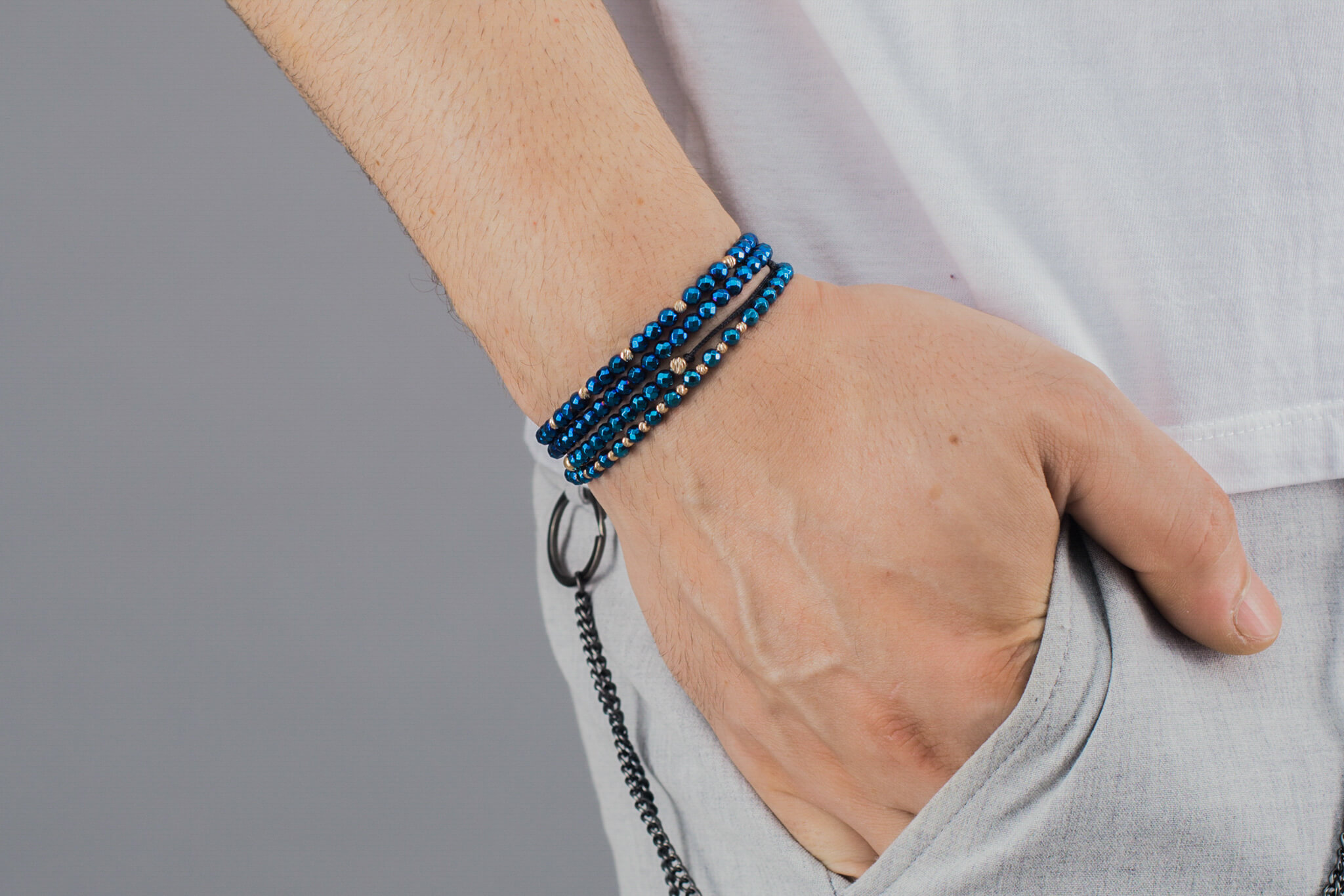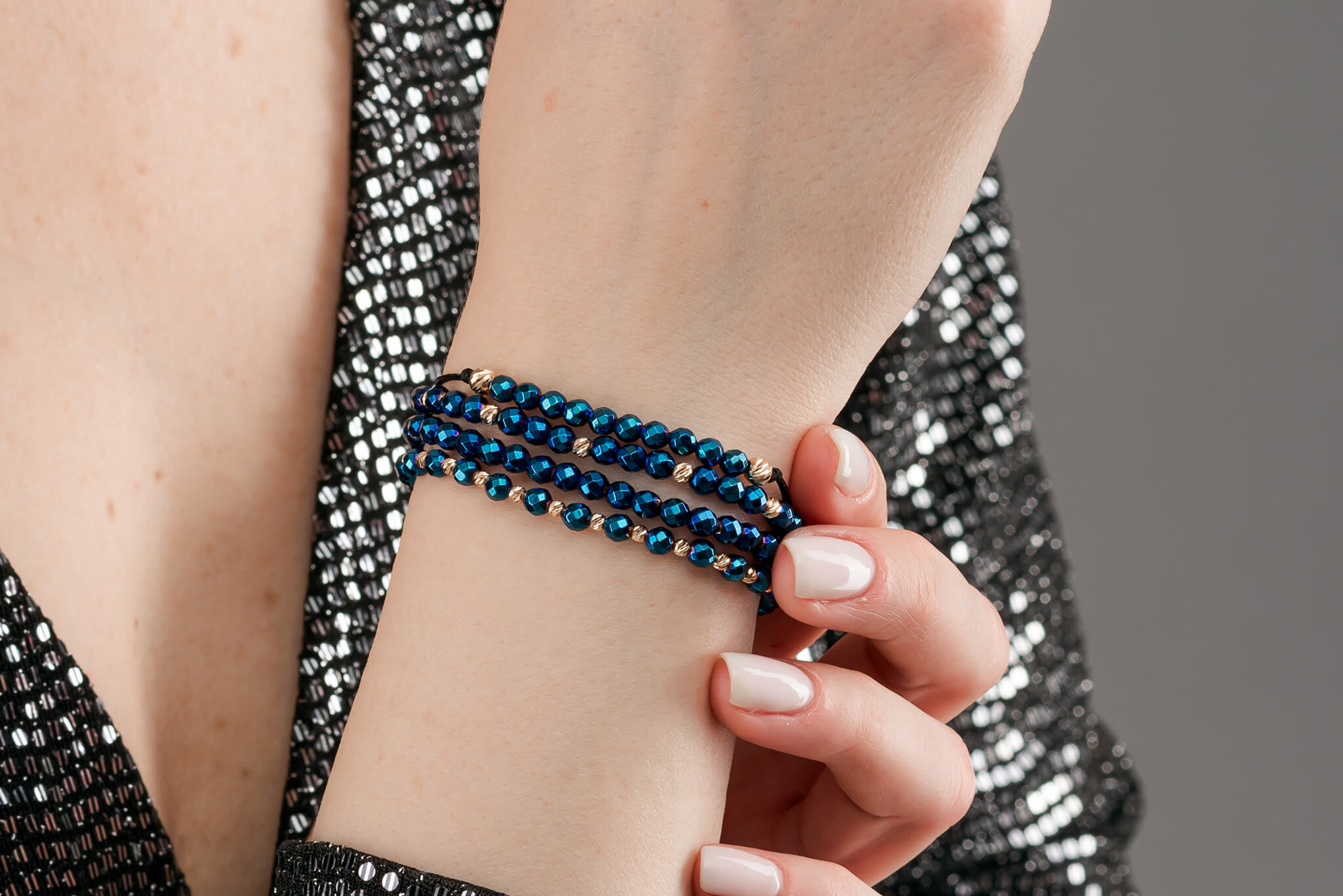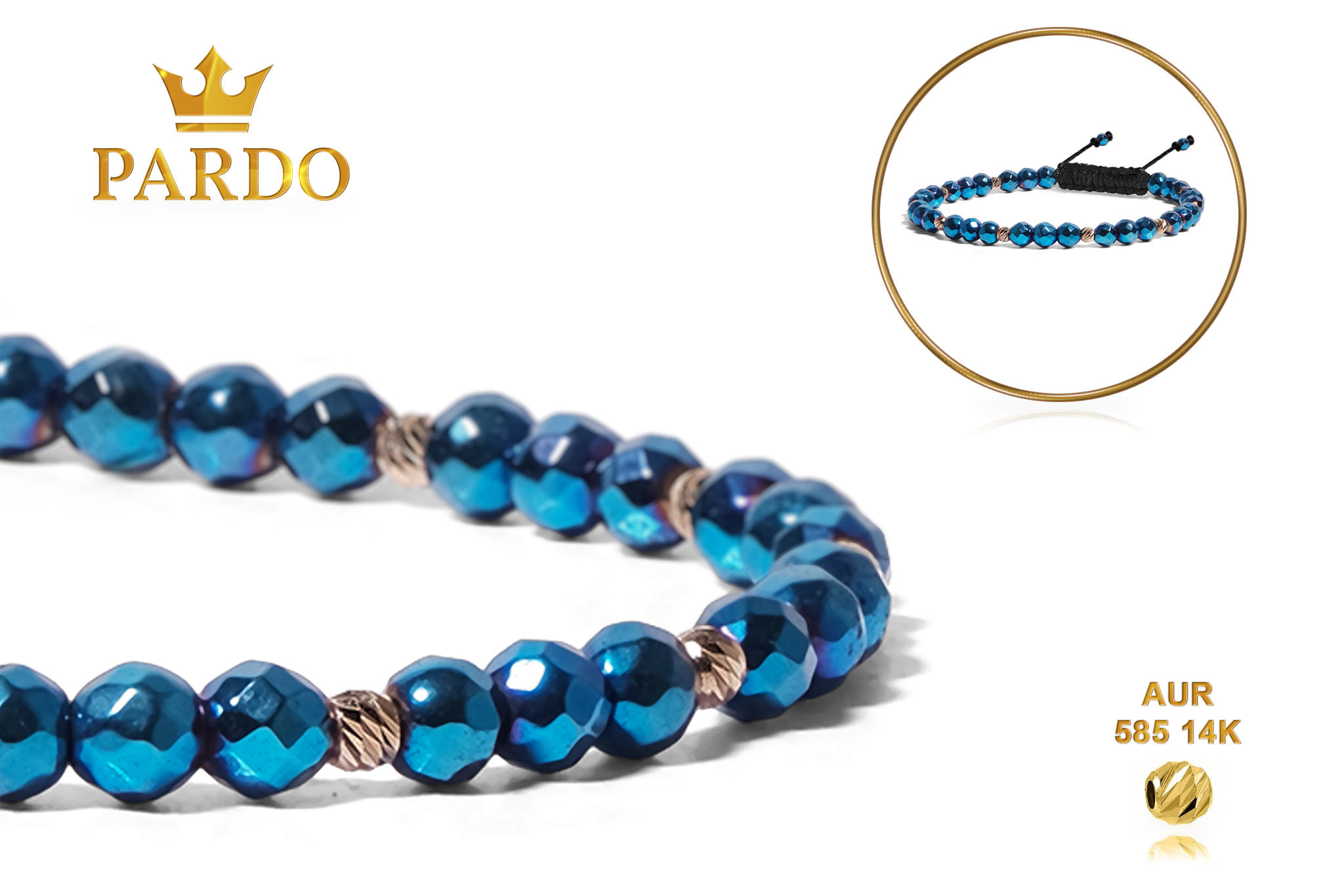 Bratara Pardo realizata cu Hematit Albastru și bile de Aur 585 14K