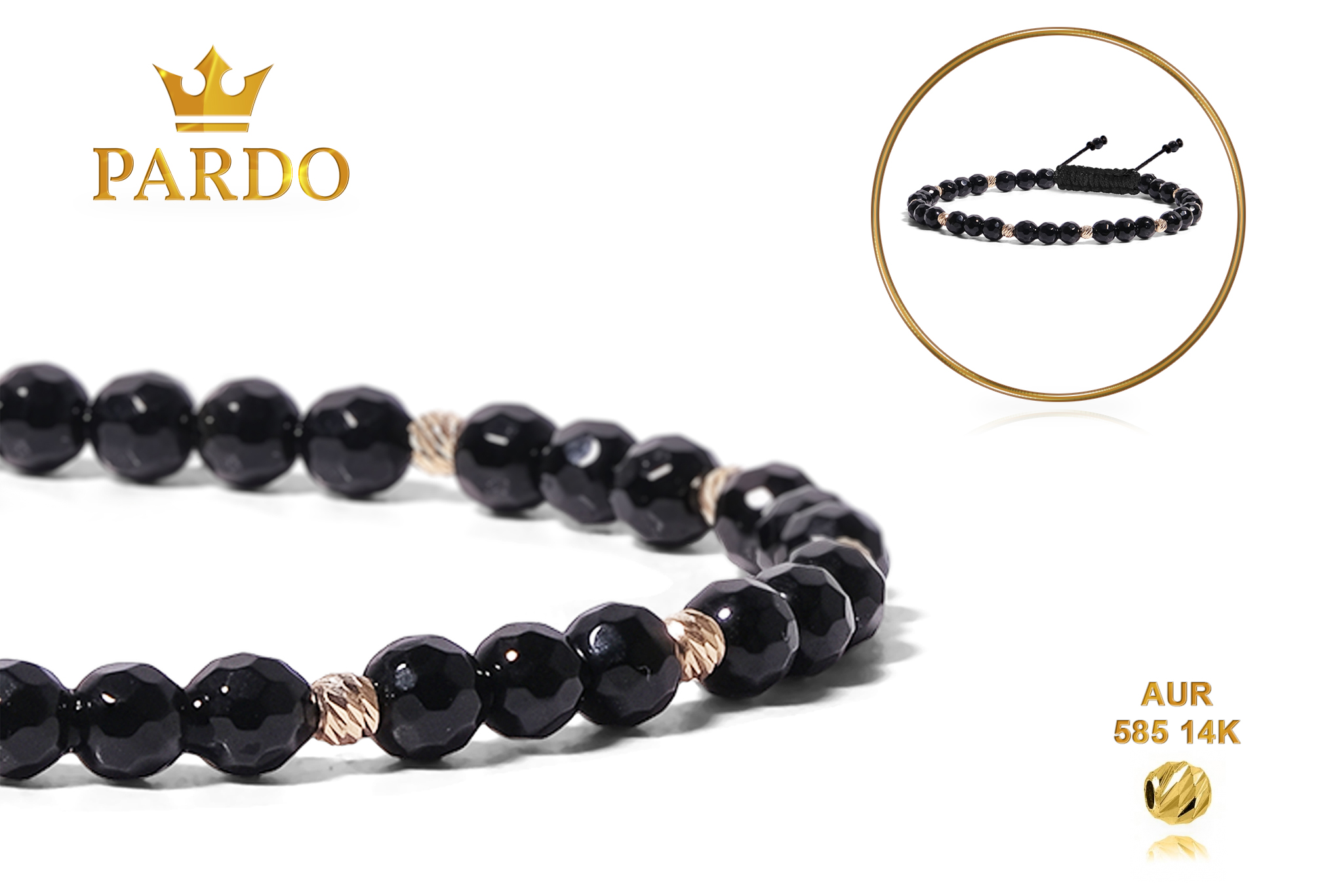Întreaga colecție de brățări din aur este realizată cu aur de 14 Karate, aur de import Italia, calitatea aurului fiind astfel la un nivel superior. Aurul de 14 Karate folosit pentru colecțiile Pardo Gold este verificat certificat de organele abilitate prin autorizația emisă, astfel acesta corespunde în proportie de 94% din punct de vedere al caratajului cât și al gramajului.
