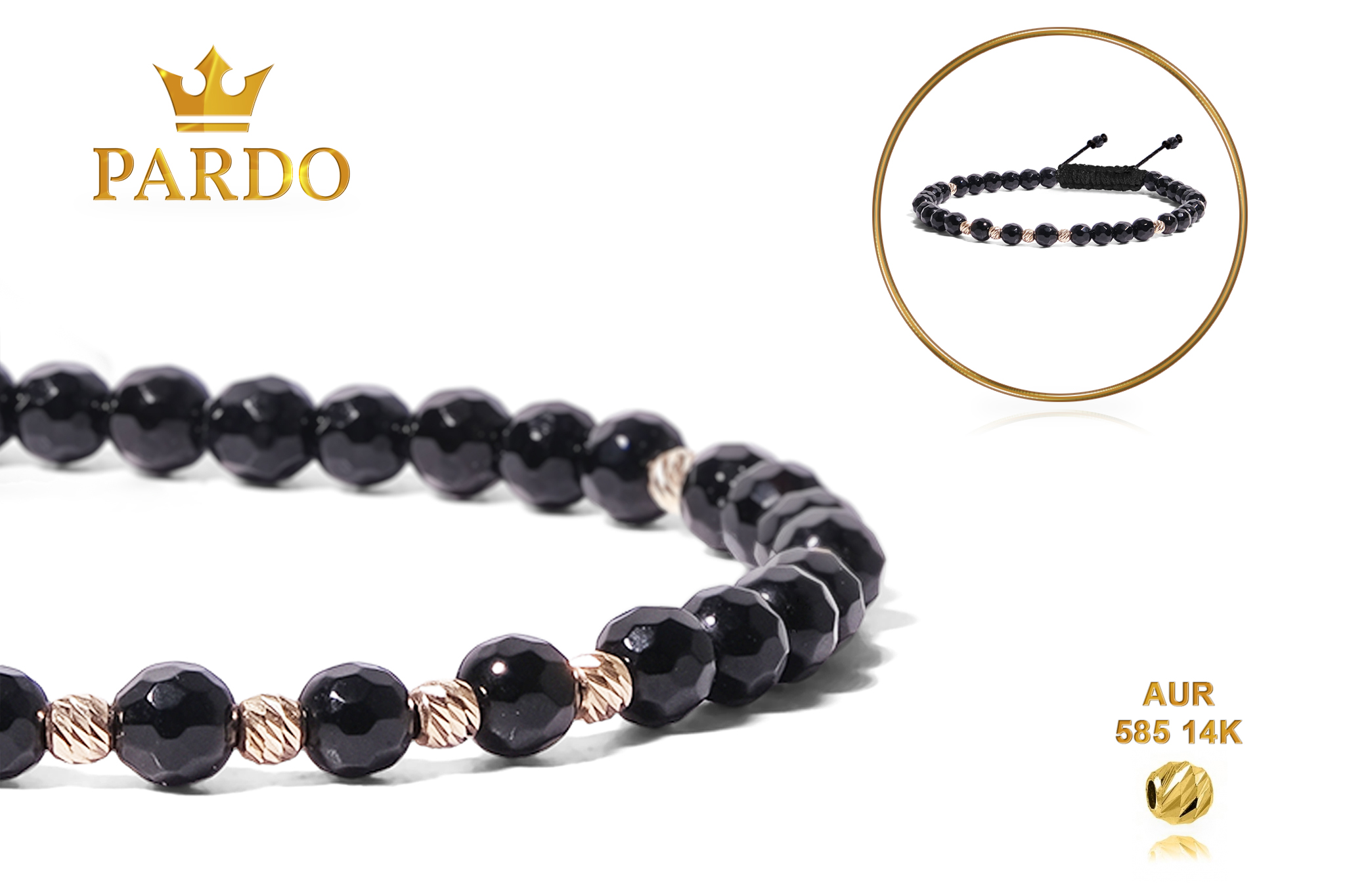 Bratara Pardo realizată cu Onix Fatetat 4 mm și bile de Aur 585 14K
