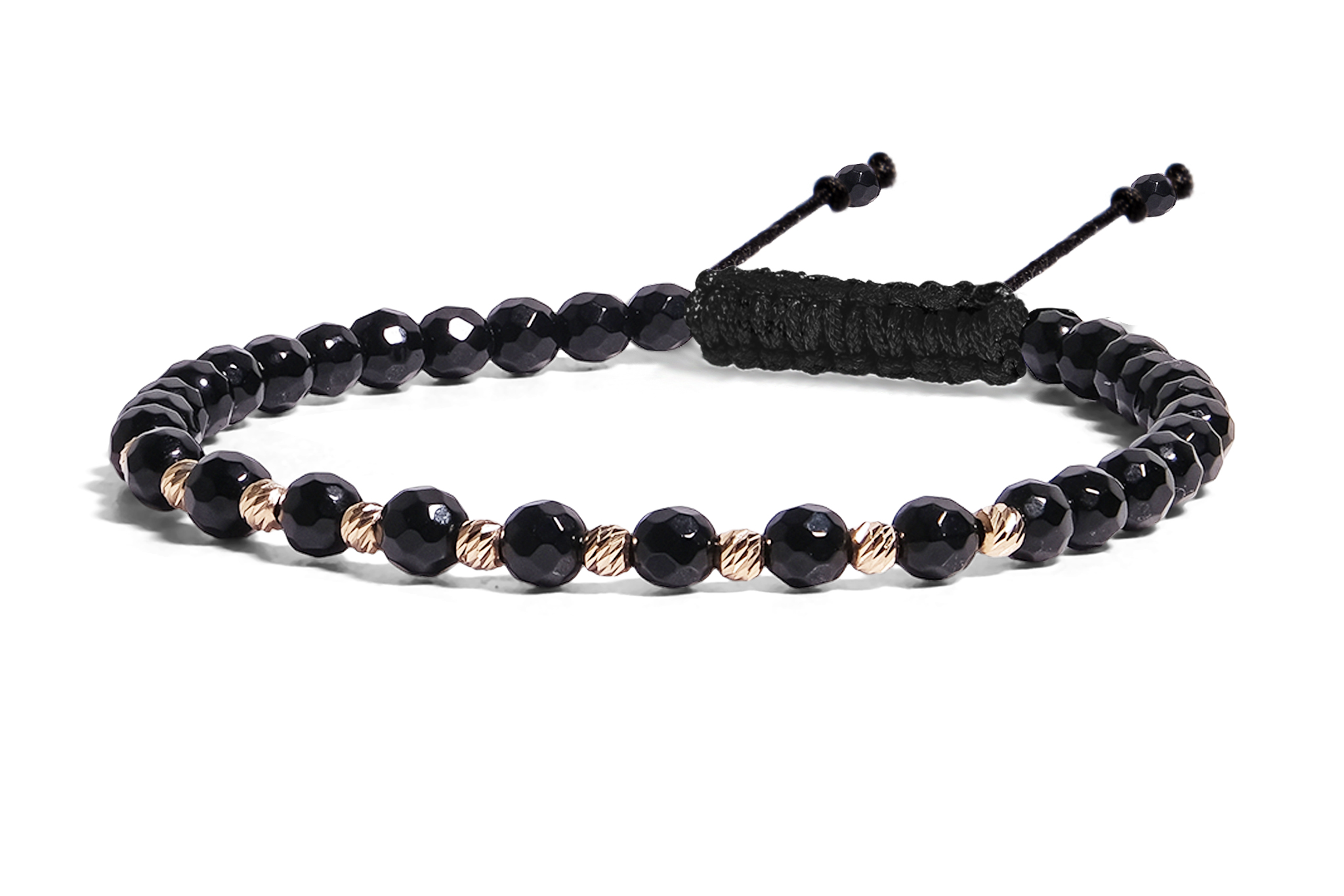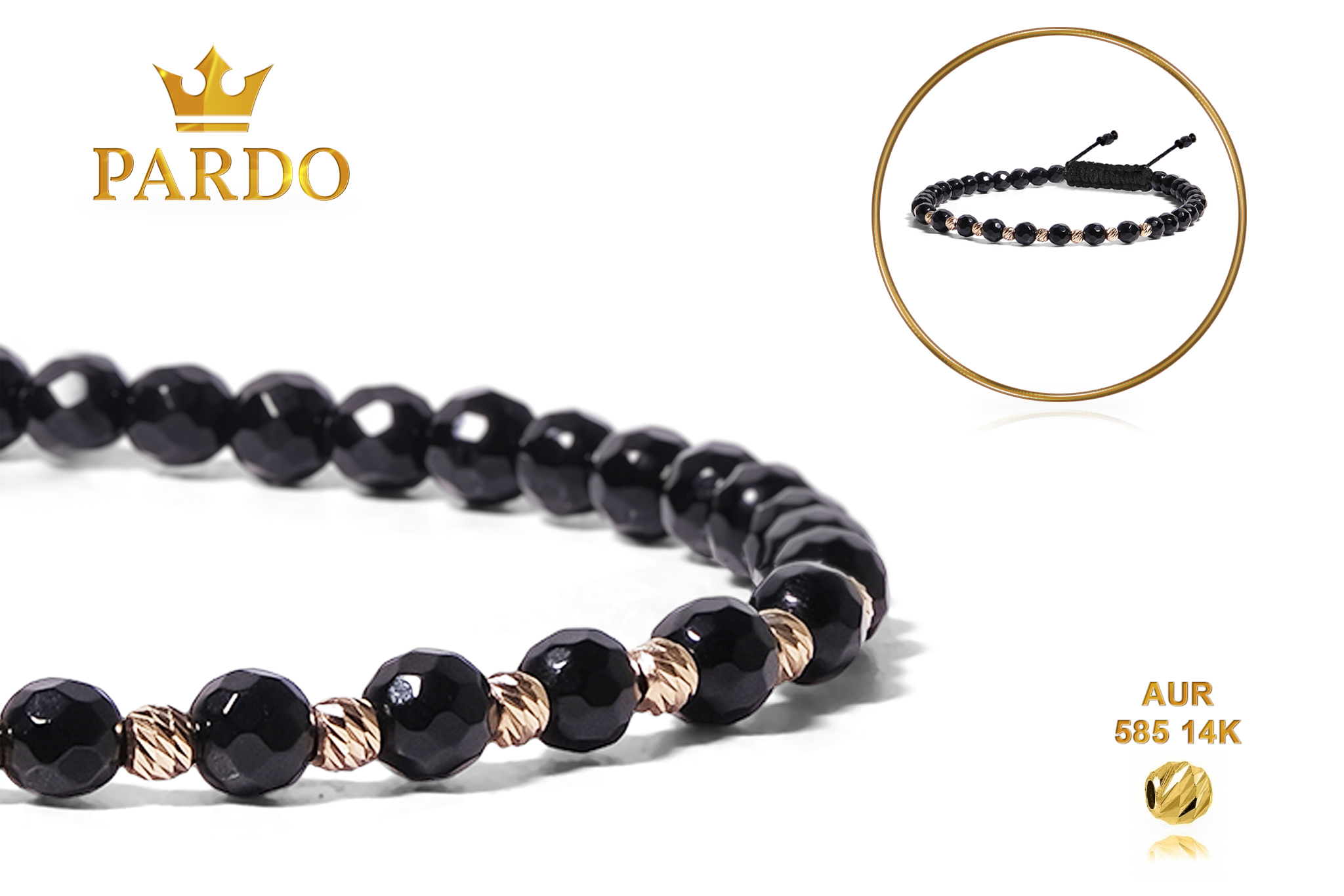 Bratara Pardo realizată cu Onix Fatetat 4 mm și bile de Aur 585 14K