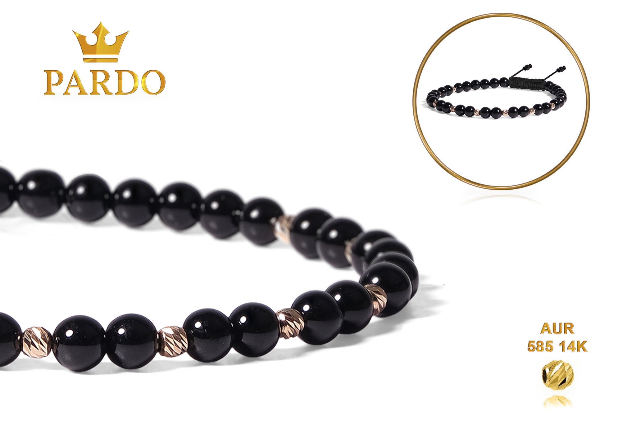 Întreaga colecție de brățări din aur este realizată cu aur de 14 Karate, aur de import Italia, calitatea aurului fiind astfel la un nivel superior. Aurul de 14 Karate folosit pentru colecțiile Pardo Gold este verificat certificat de organele abilitate prin autorizația emisă, astfel acesta corespunde în proportie de 94% din punct de vedere al caratajului cât și al gramajului.
