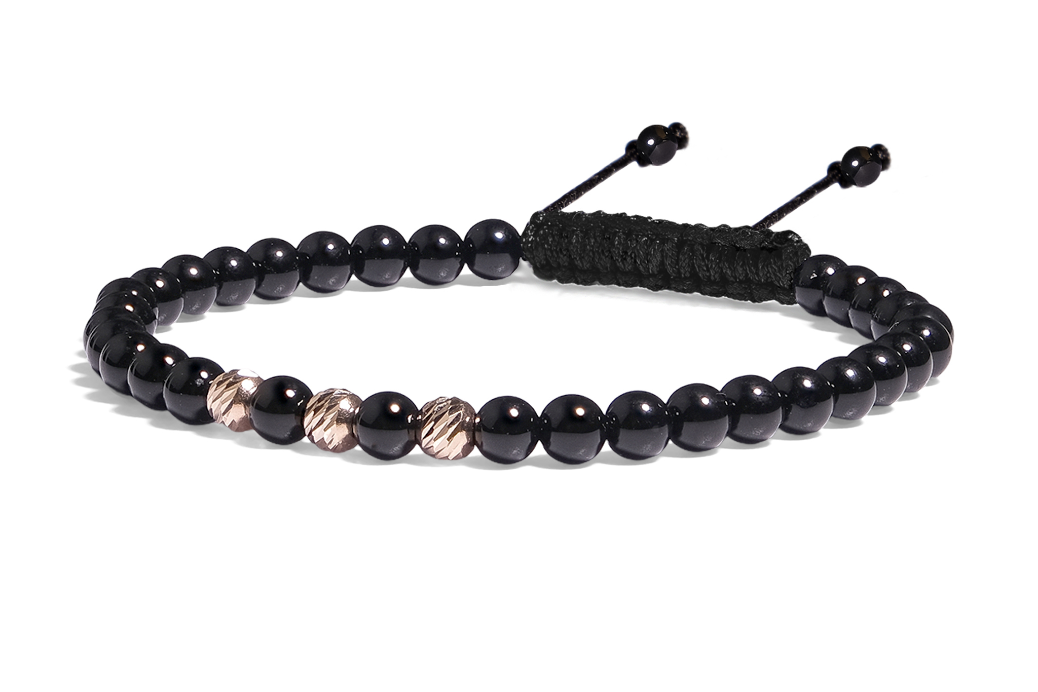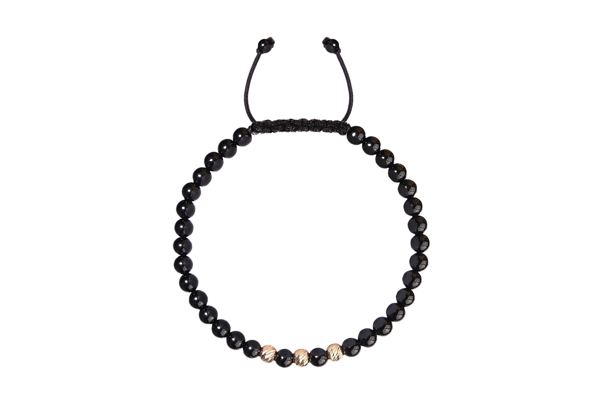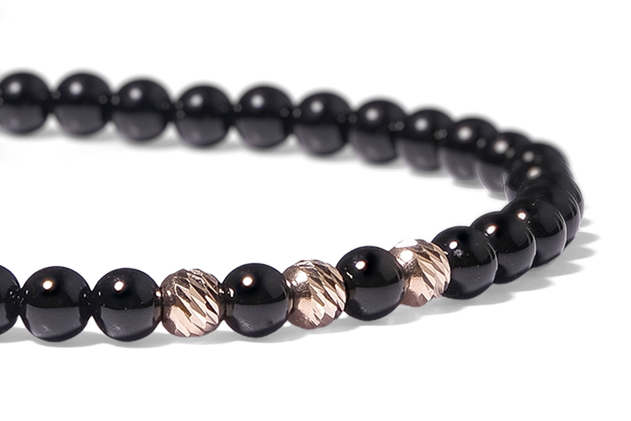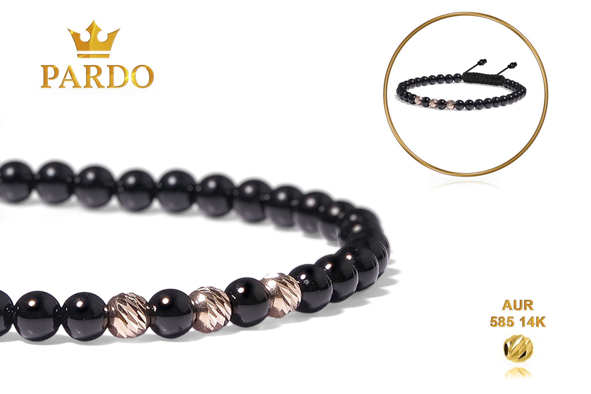 Bratara Pardo realizată cu pietre semipretiose Onix Lucios 4 mm și bile de Aur 585 14K