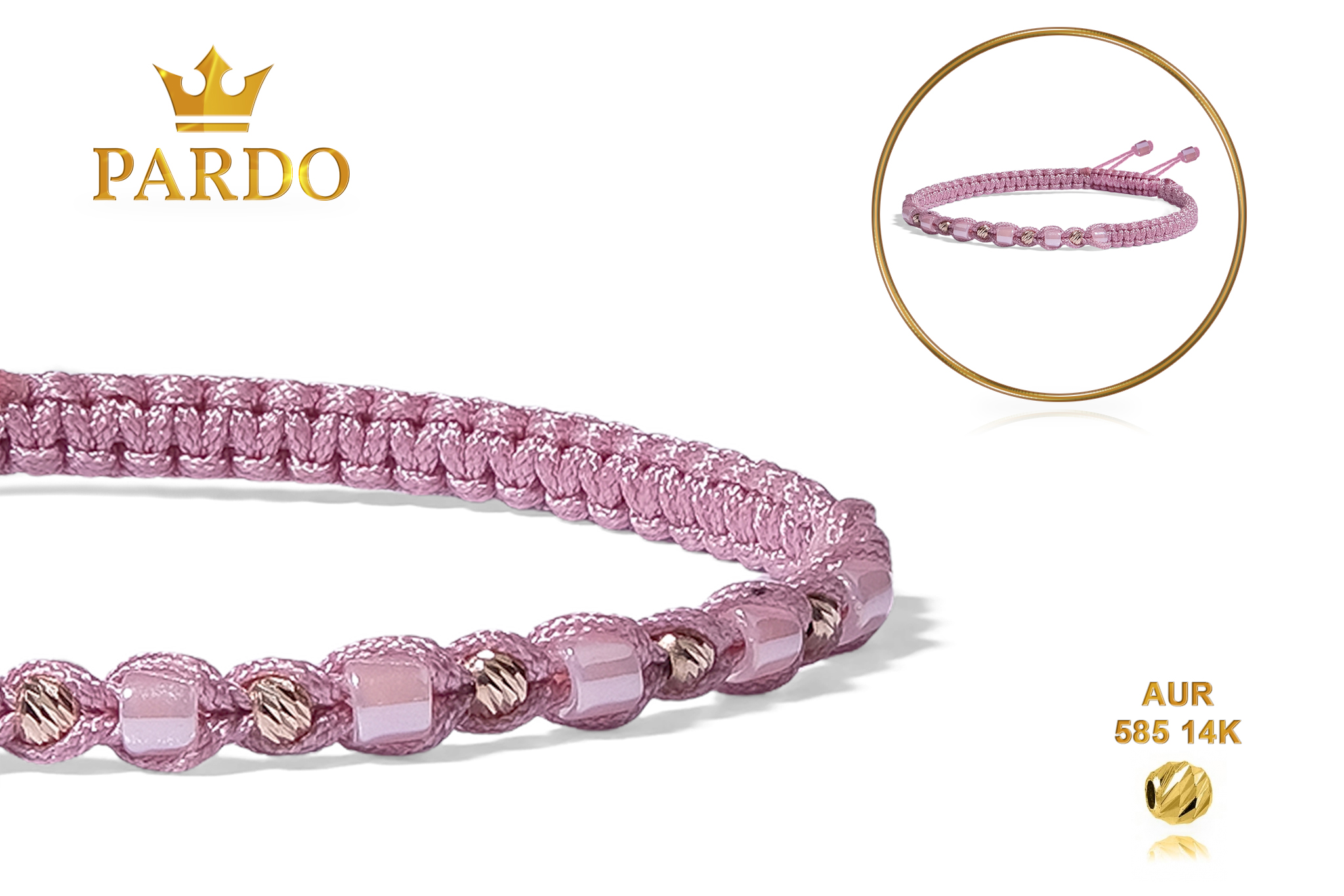 Întreaga colecție de brățări din aur este realizată cu aur de 14 Karate, aur de import Italia, calitatea aurului fiind astfel la un nivel superior. Aurul de 14 Karate folosit pentru colecțiile Pardo Gold este verificat certificat de organele abilitate prin autorizația emisă, astfel acesta corespunde în proportie de 94% din punct de vedere al caratajului cât și al gramajului.