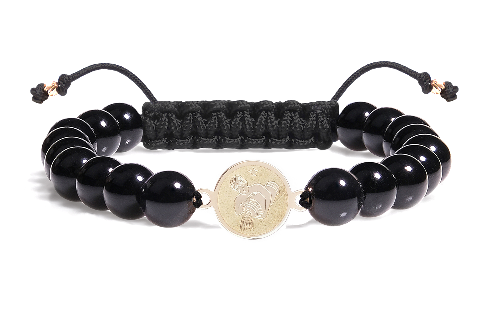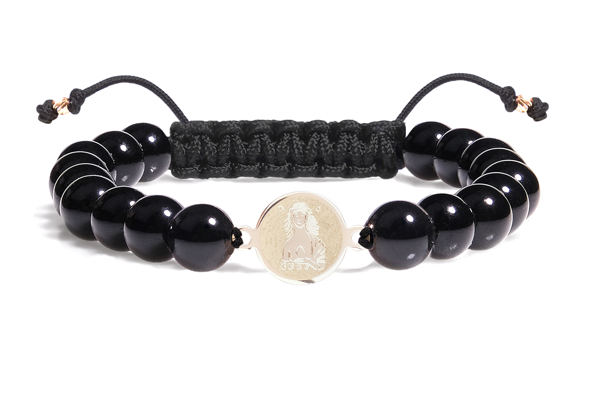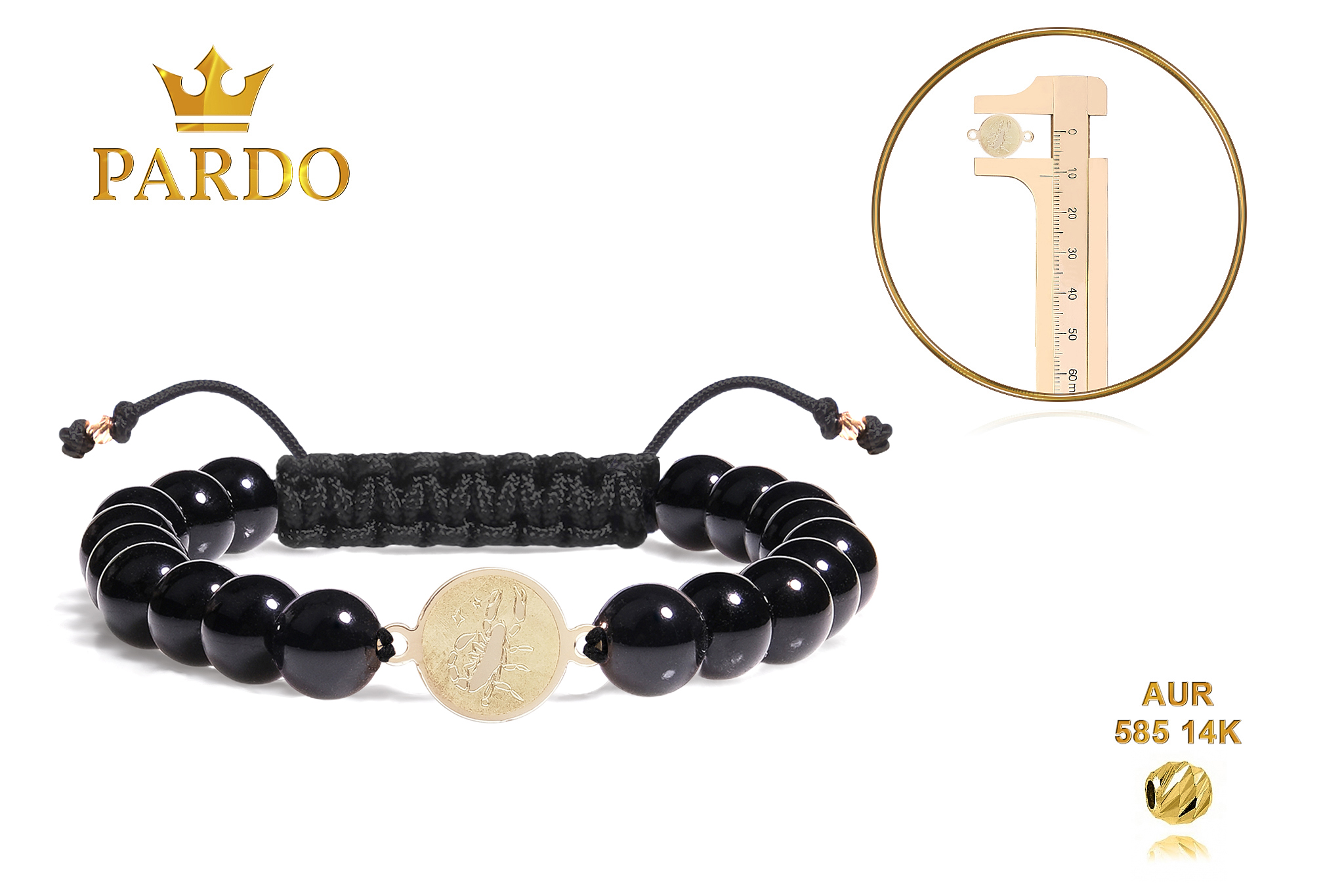 Brățară Pardo realizată cu șnur și bănuț Zodie din Aur de 14K & Onix