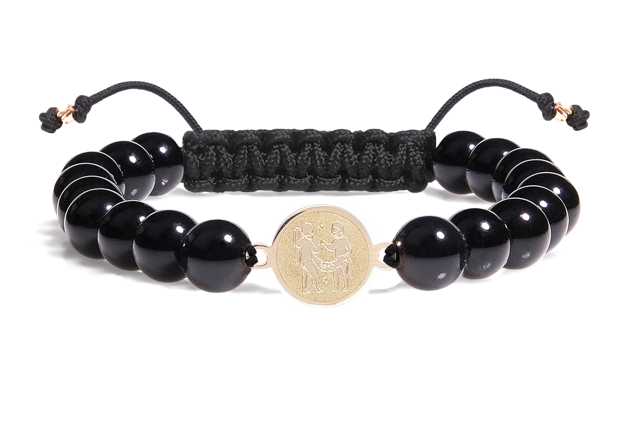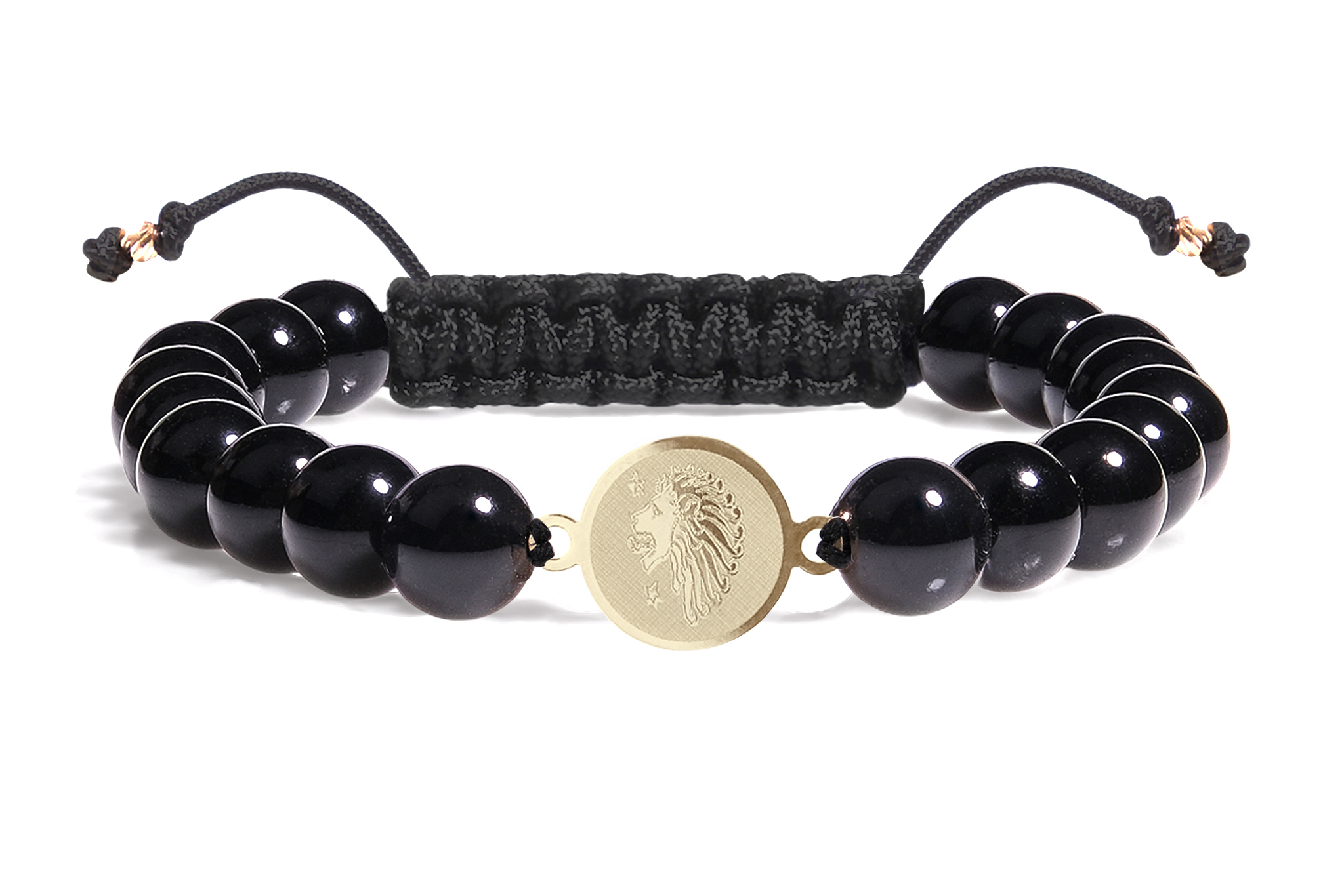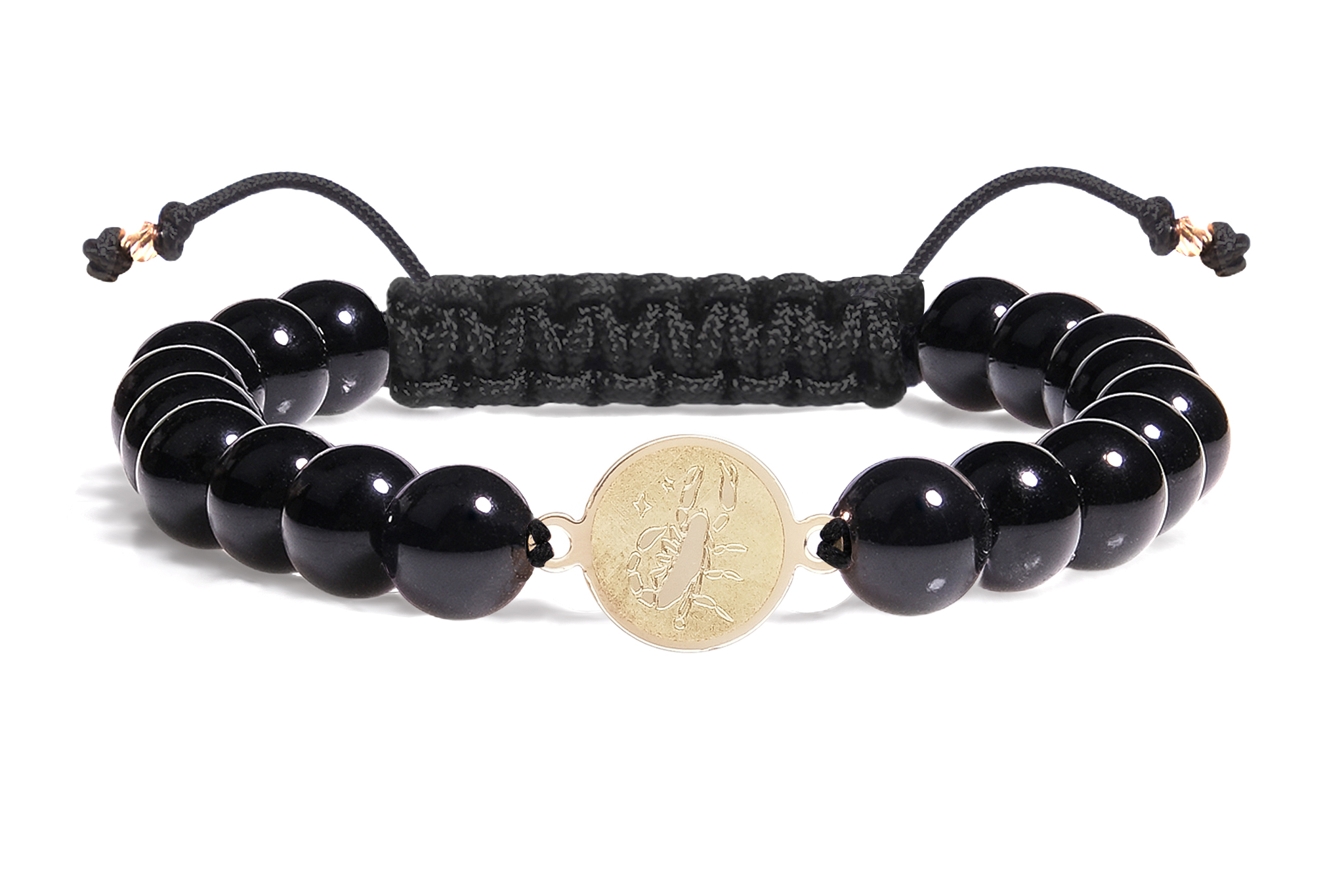 Brățară Pardo realizată cu șnur și bănuț Zodie din Aur de 14K & Onix