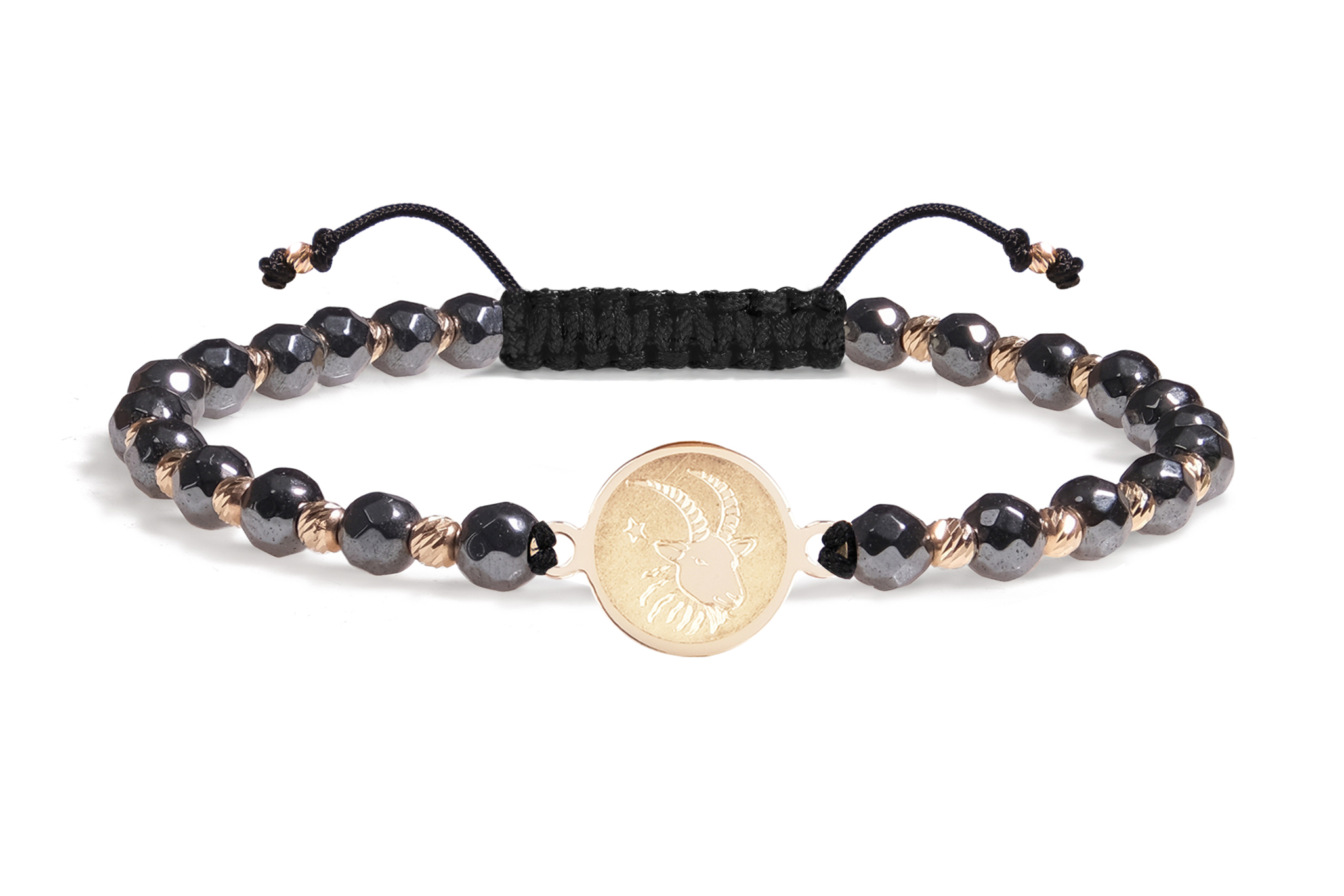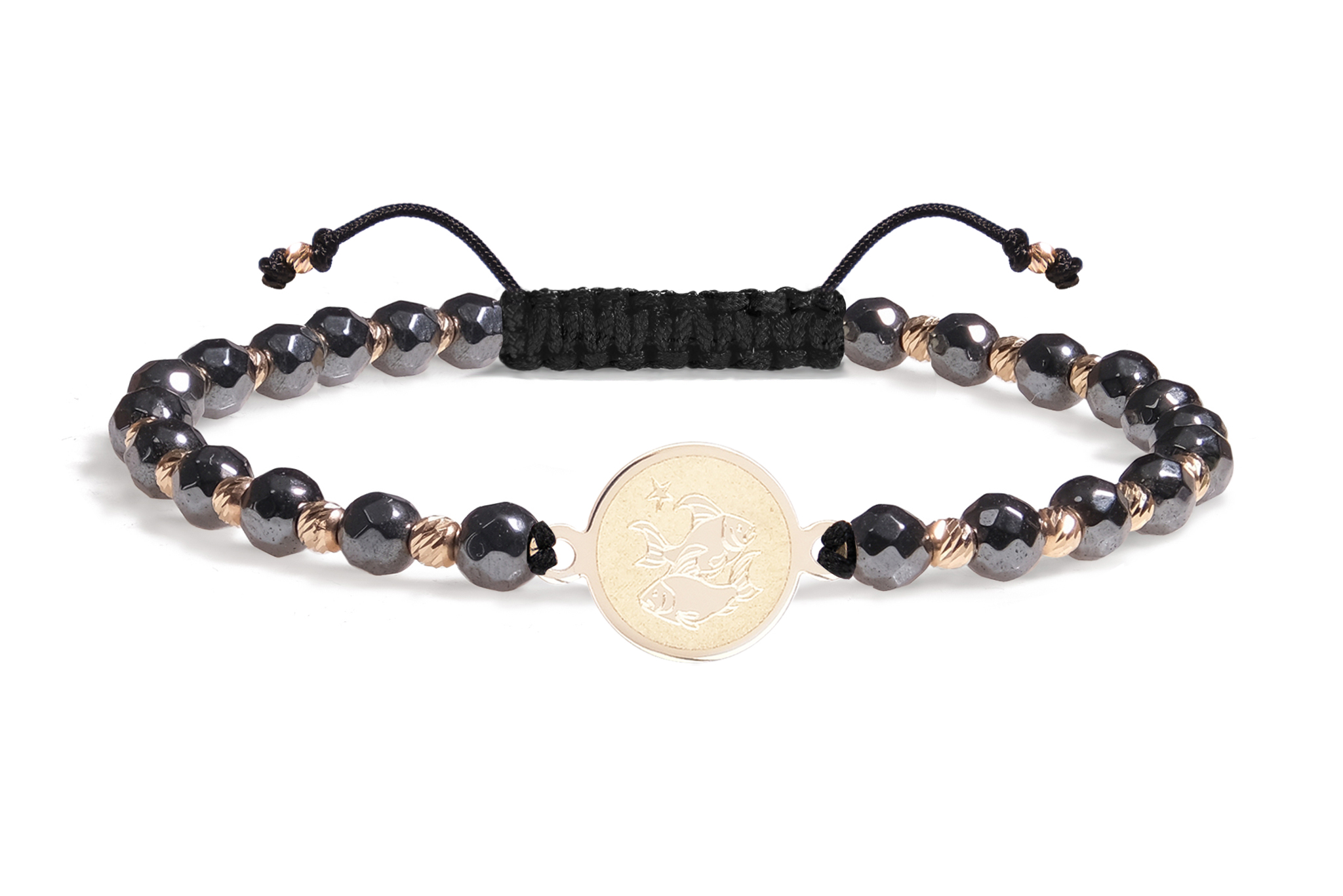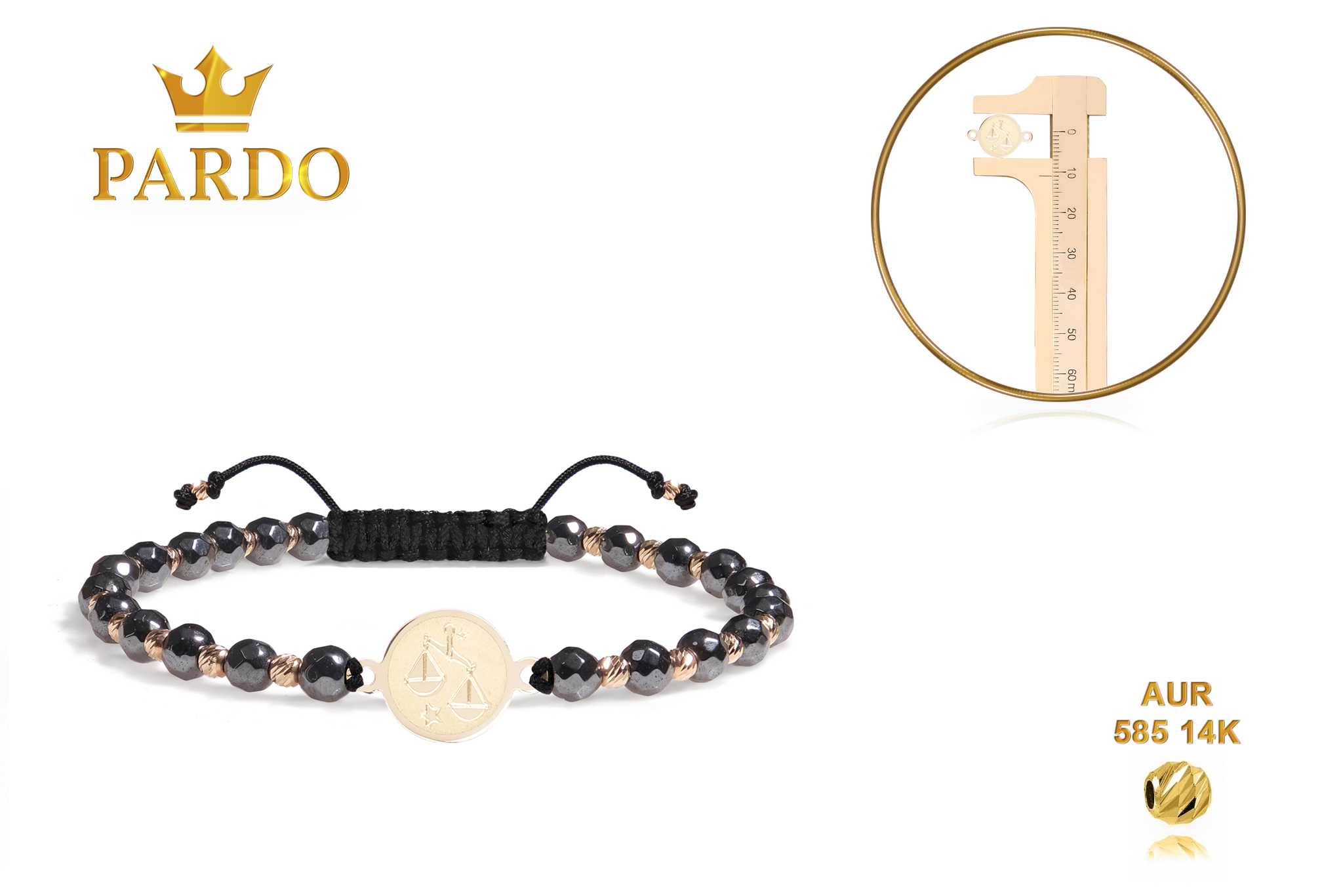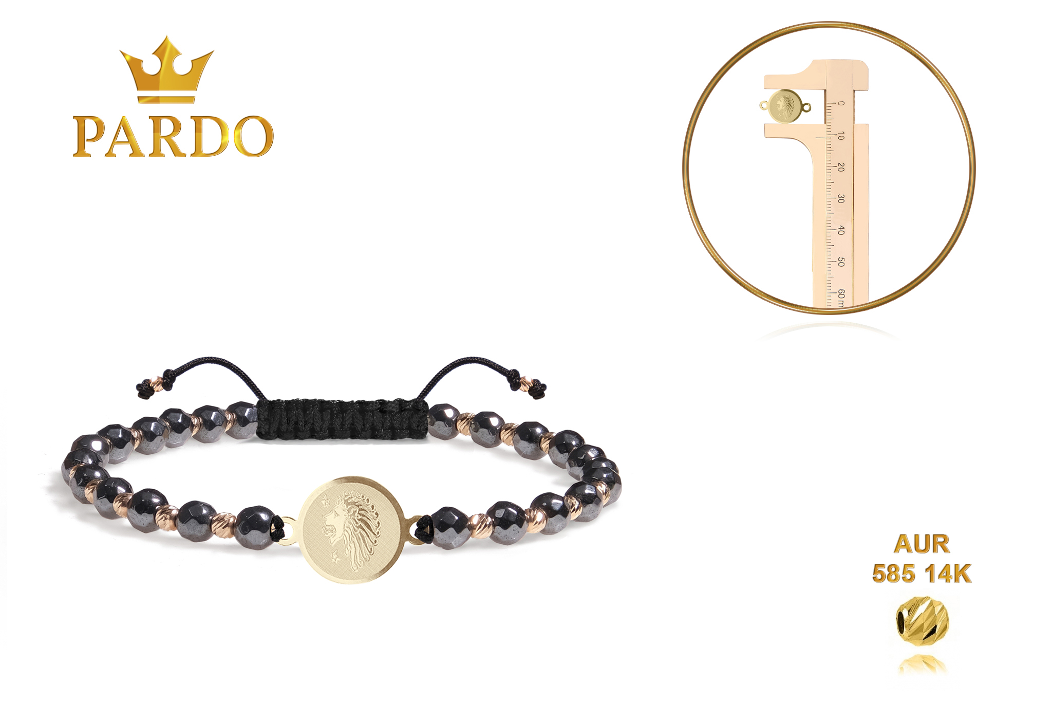 Brățară Pardo realizată cu șnur și bile de Aur 585 14K și bănuț Zodie din Aur de 14K & Hematit