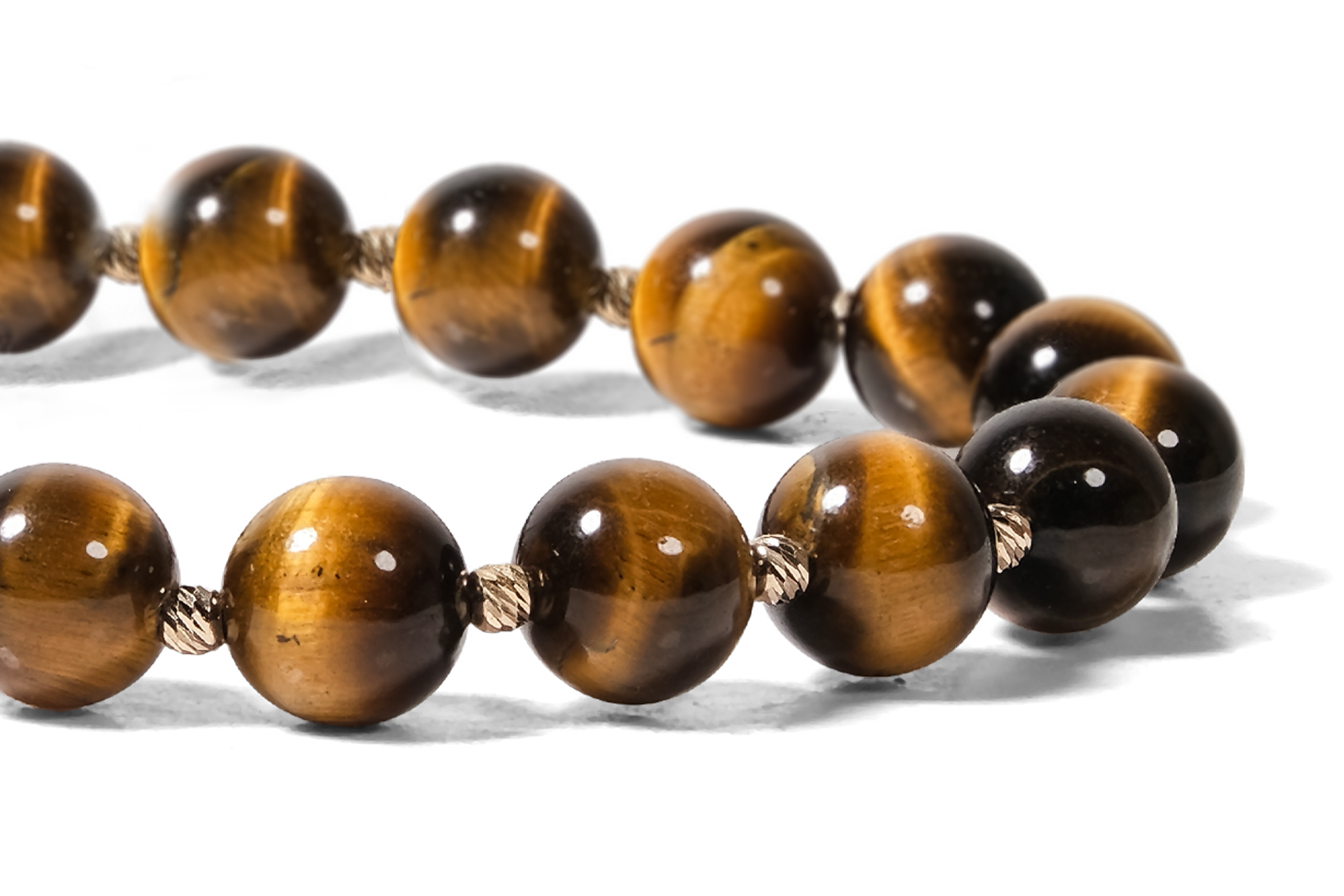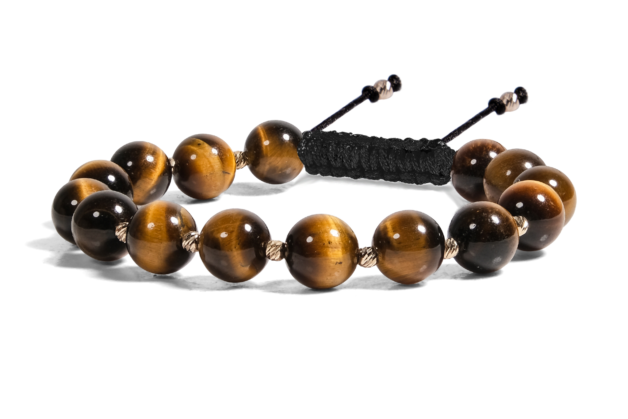 Brățară Pardo realizată cu șnur și bile de Aur 585 14K și Ochi de Tigru Maro