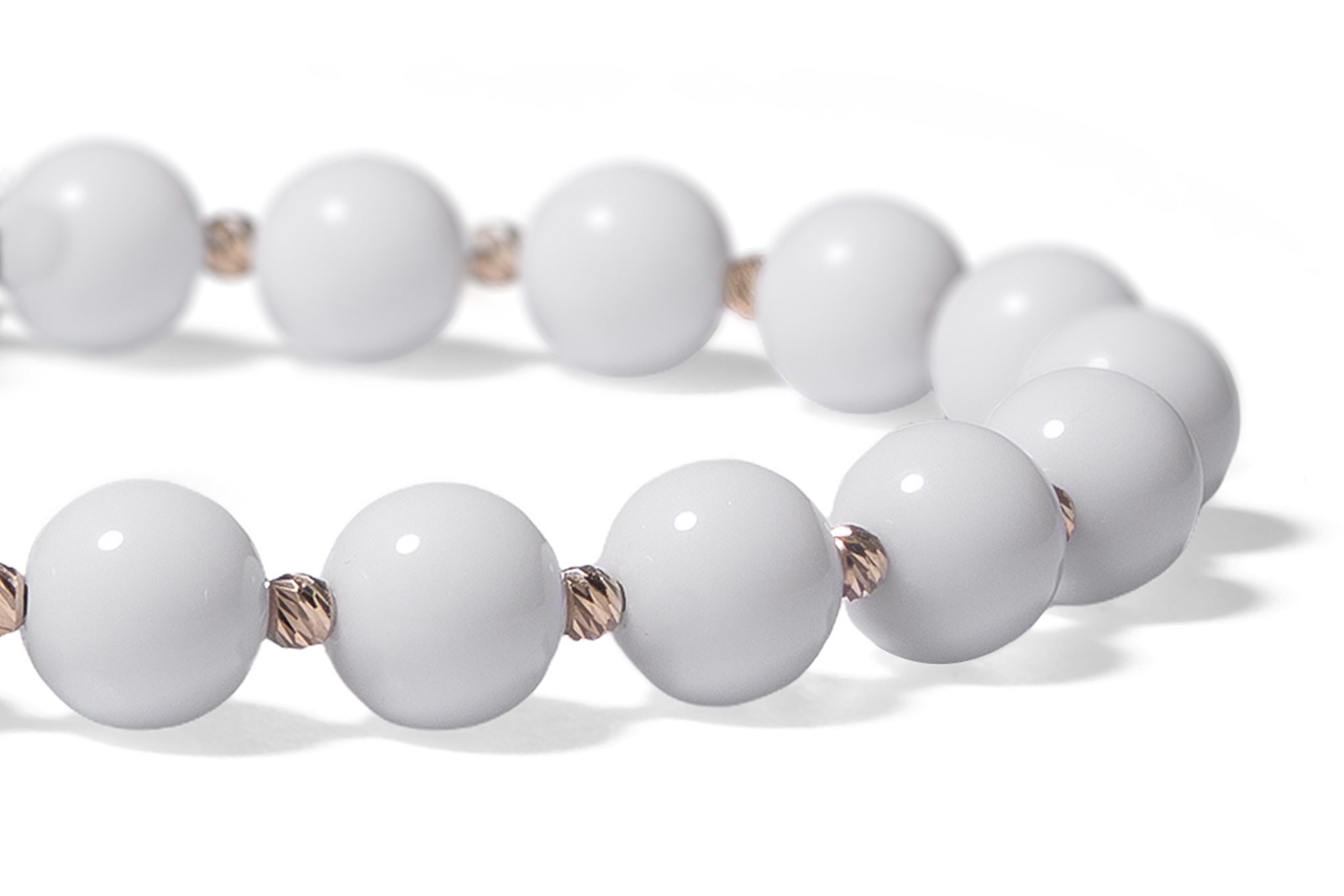 Brățară Pardo realizată cu șnur și bile de Aur 585 14K și Onix Alb Lucios