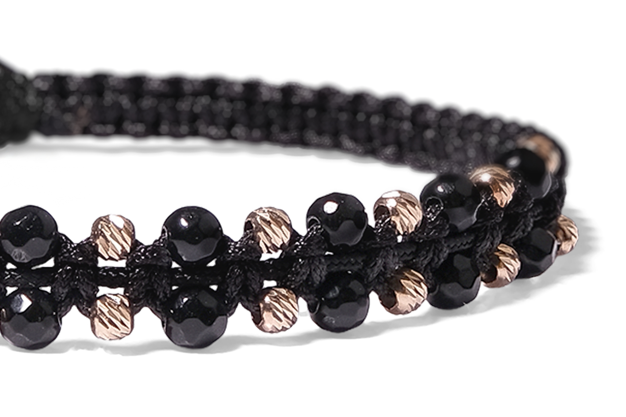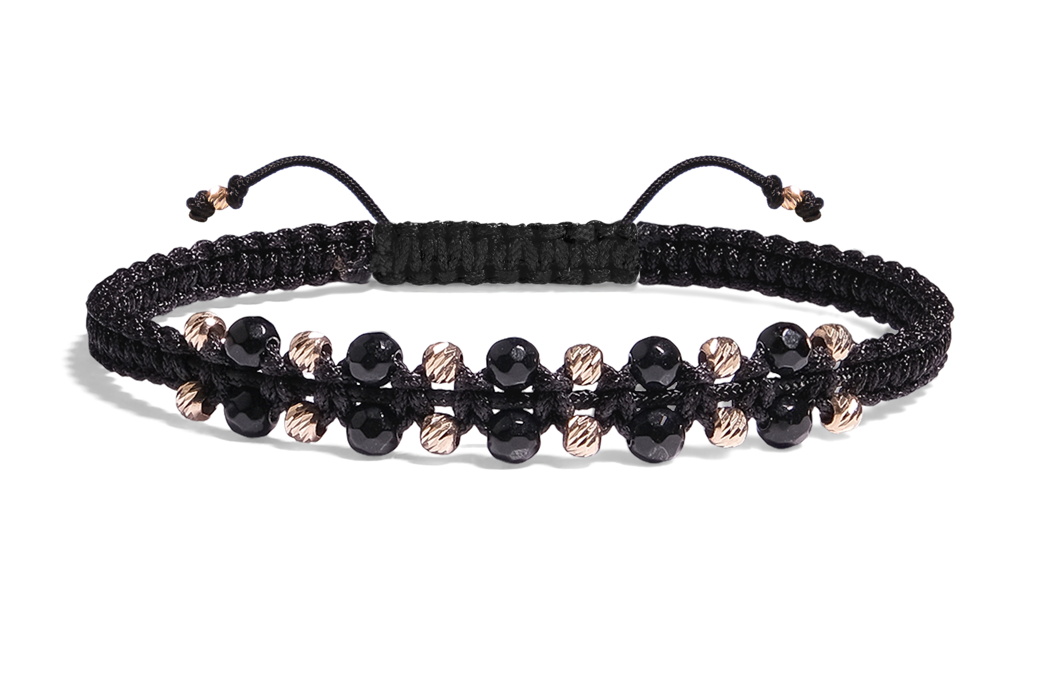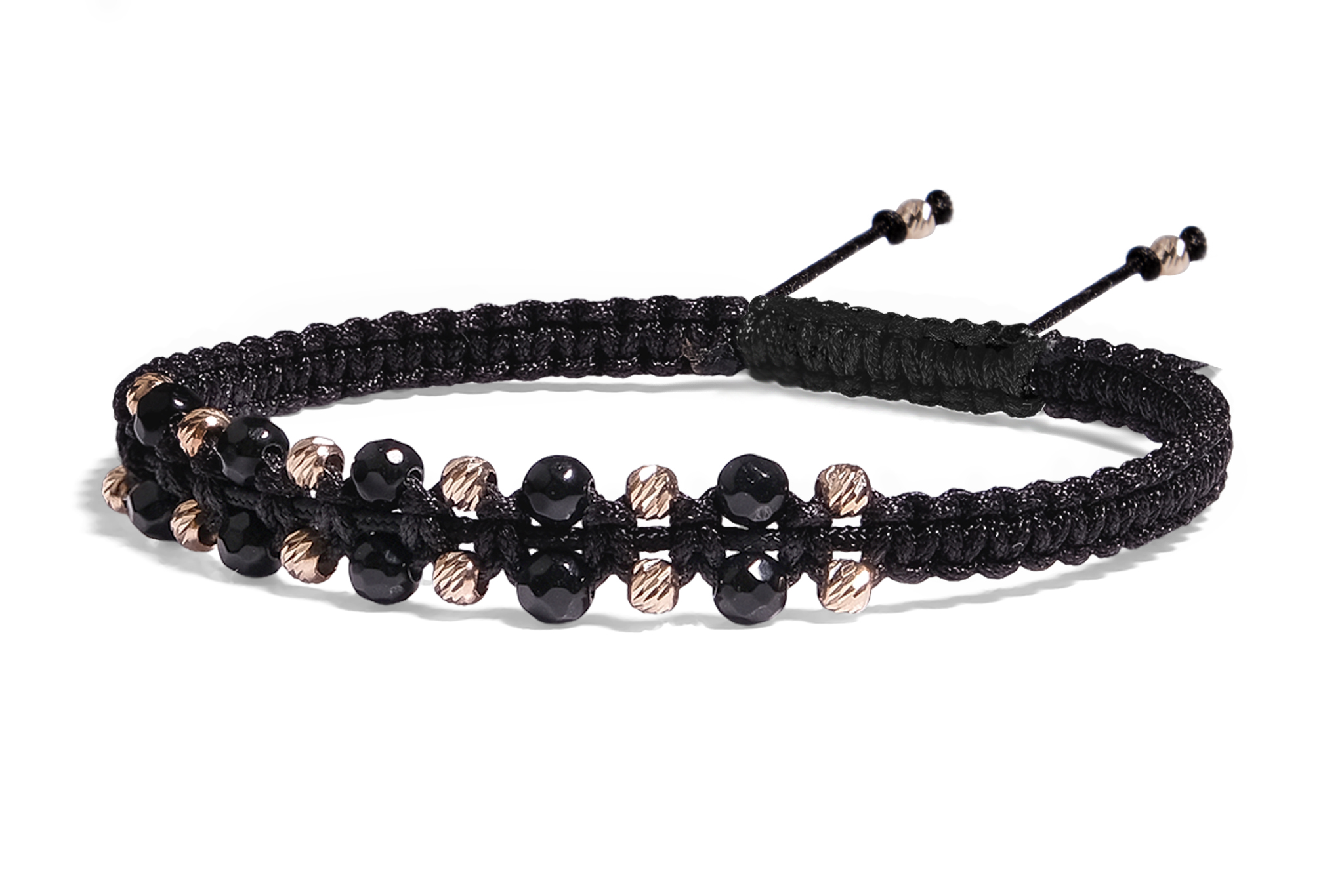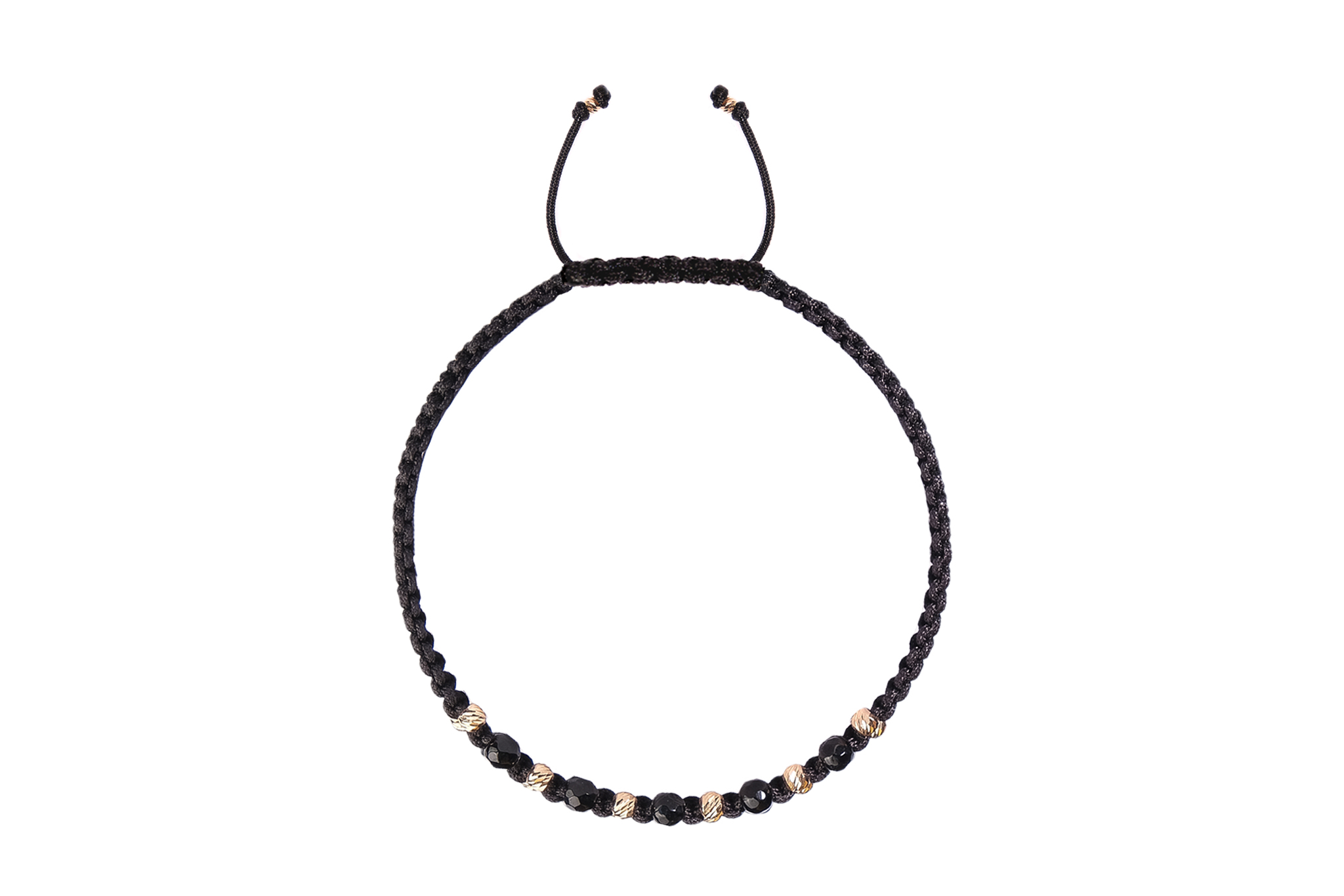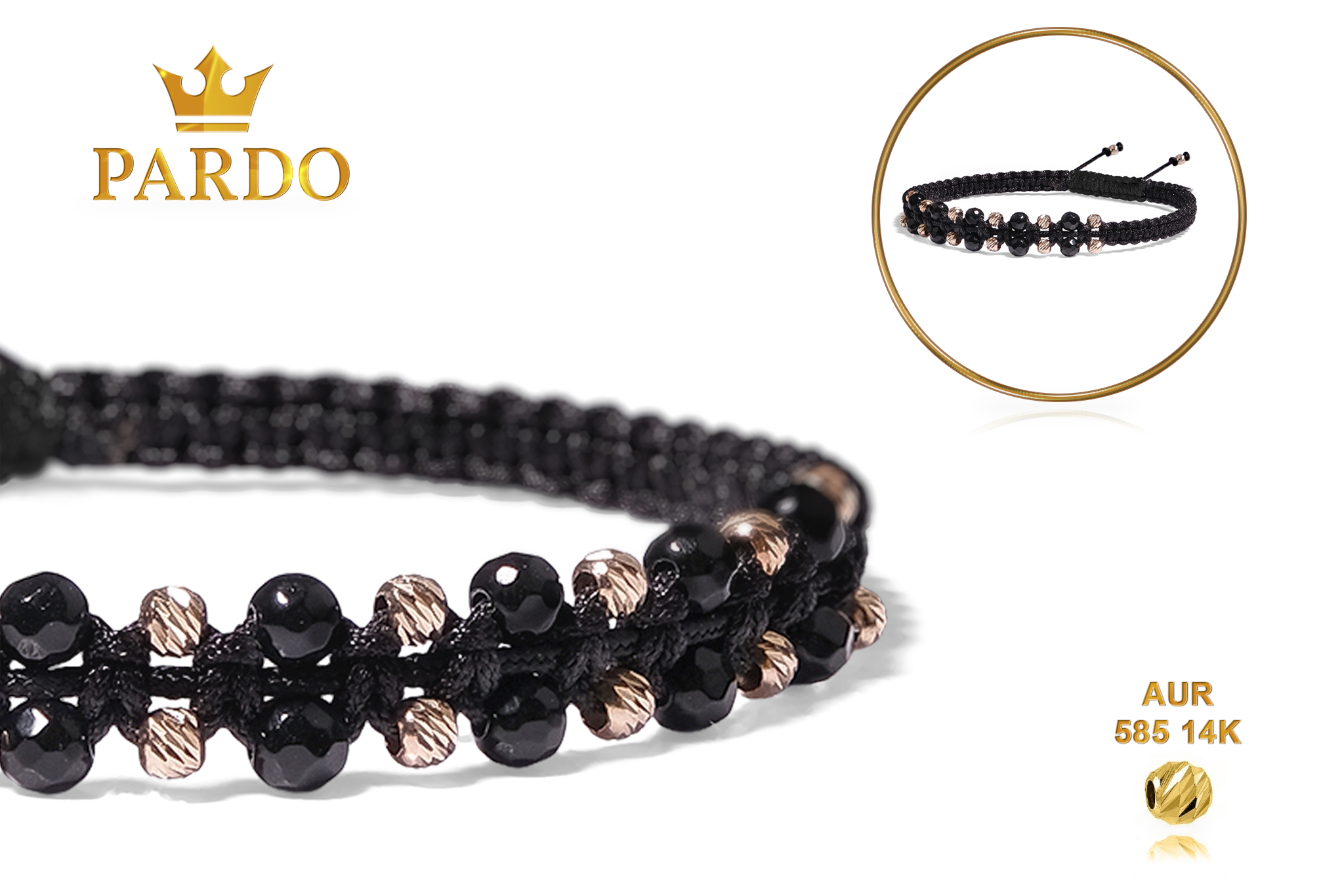 Brățară Pardo realizată cu șnur și bile de Aur 585 14K și Onix Negru Fatetat de 3 mm