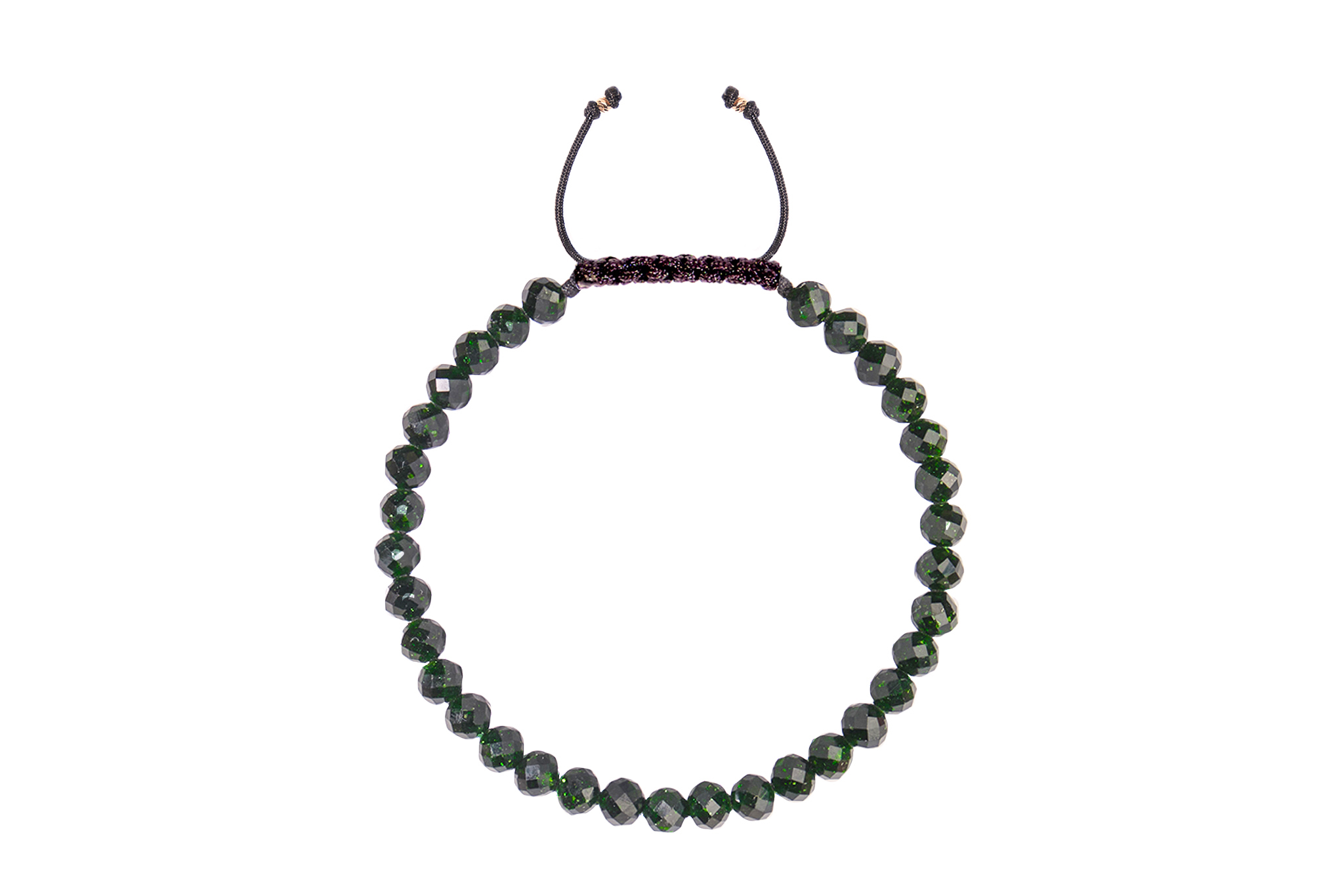 Brățară Pardo realizată cu șnur și bile de Aur 585 14K și Piatra Soarelui Verde
