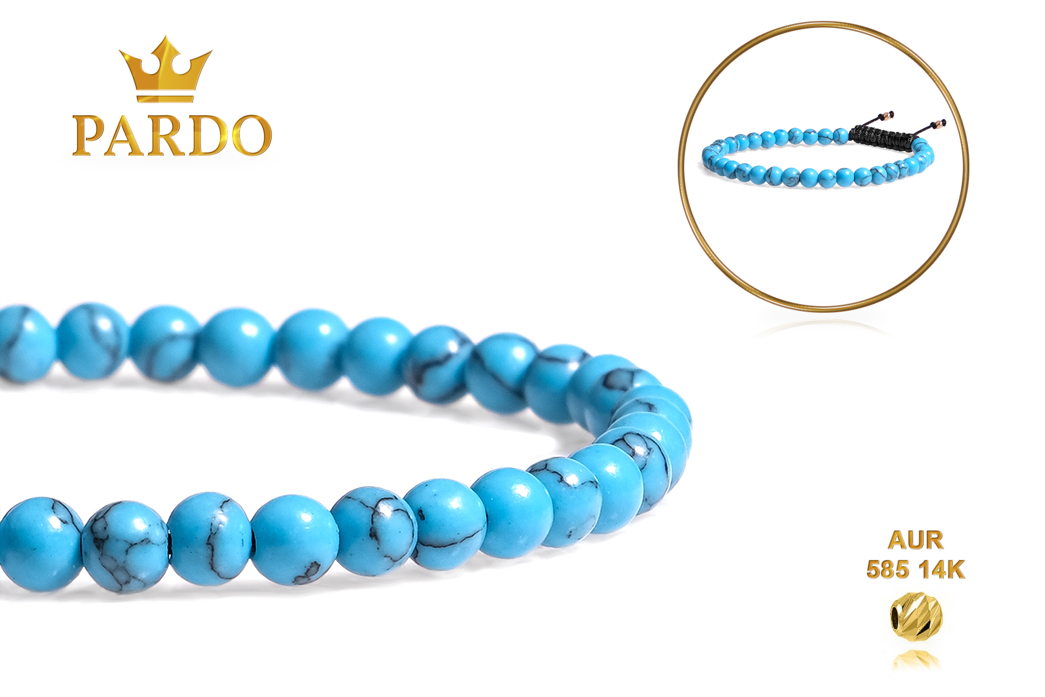 Întreaga colecție de brățări din aur este realizată cu aur de 14 Karate, aur de import Italia, calitatea aurului fiind astfel la un nivel superior. Aurul de 14 Karate folosit pentru colecțiile Pardo Gold este verificat certificat de organele abilitate prin autorizația emisă, astfel acesta corespunde în proportie de 94% din punct de vedere al caratajului cât și al gramajului.