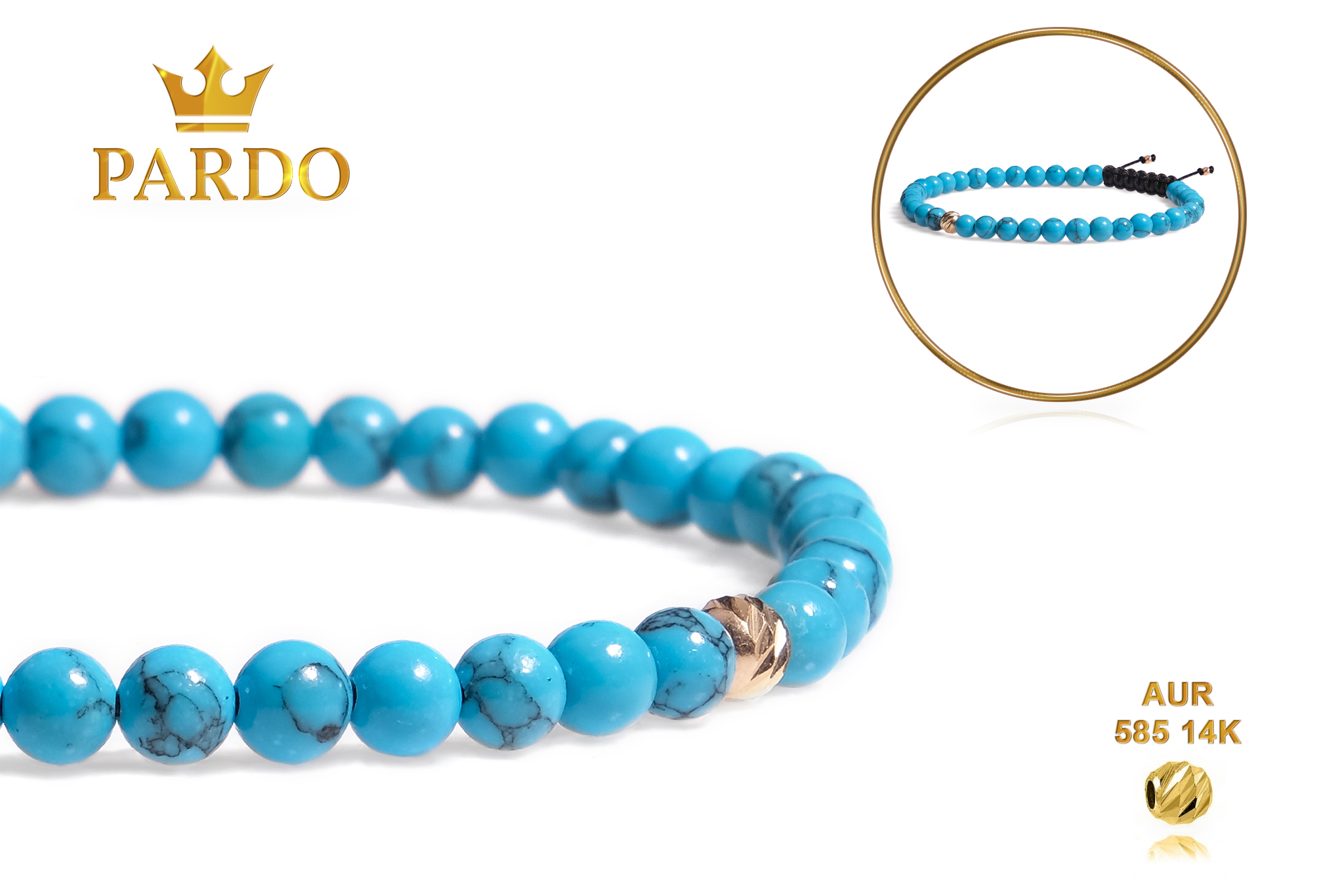 Întreaga colecție de brățări din aur este realizată cu aur de 14 Karate, aur de import Italia, calitatea aurului fiind astfel la un nivel superior. Aurul de 14 Karate folosit pentru colecțiile Pardo Gold este verificat certificat de organele abilitate prin autorizația emisă, astfel acesta corespunde în proportie de 94% din punct de vedere al caratajului cât și al gramajului.