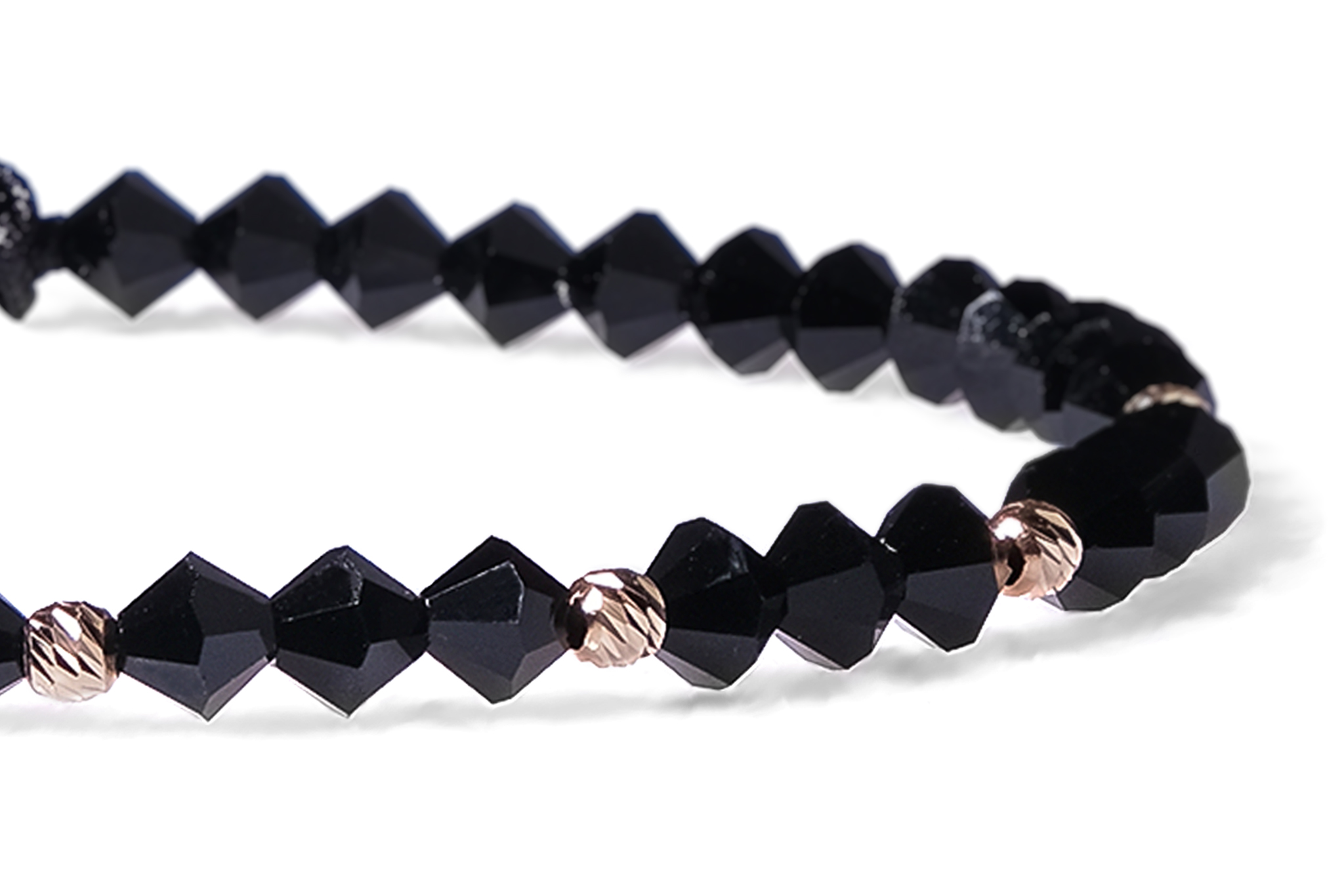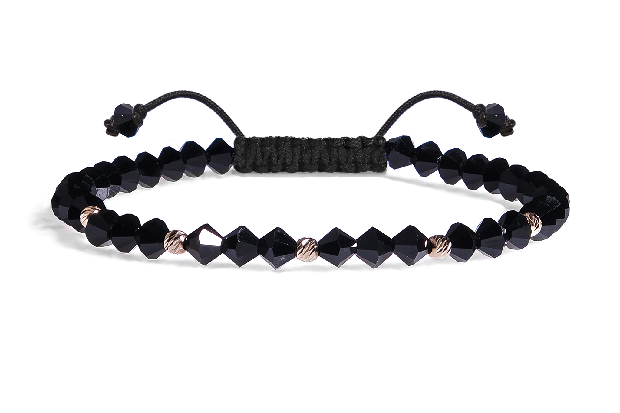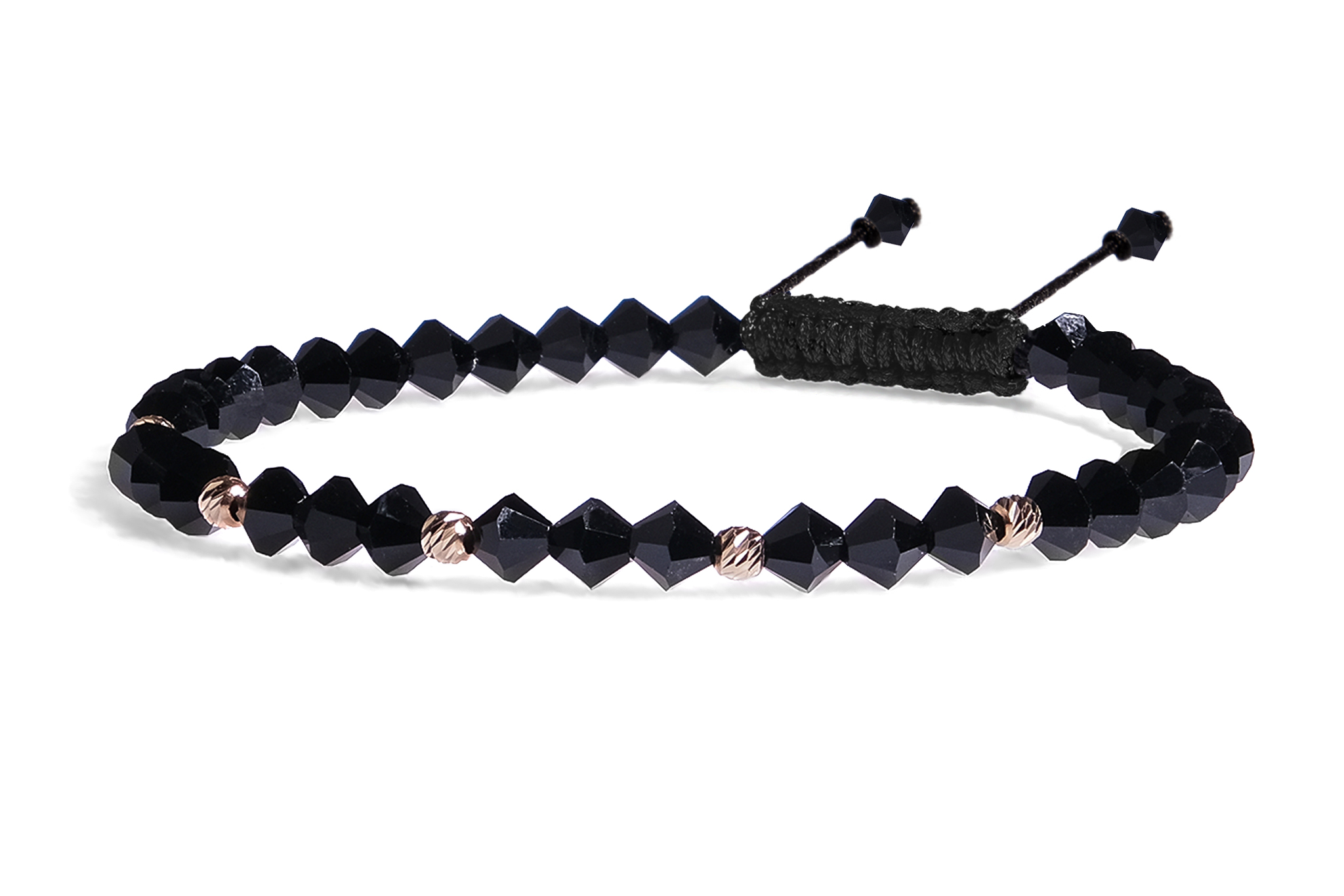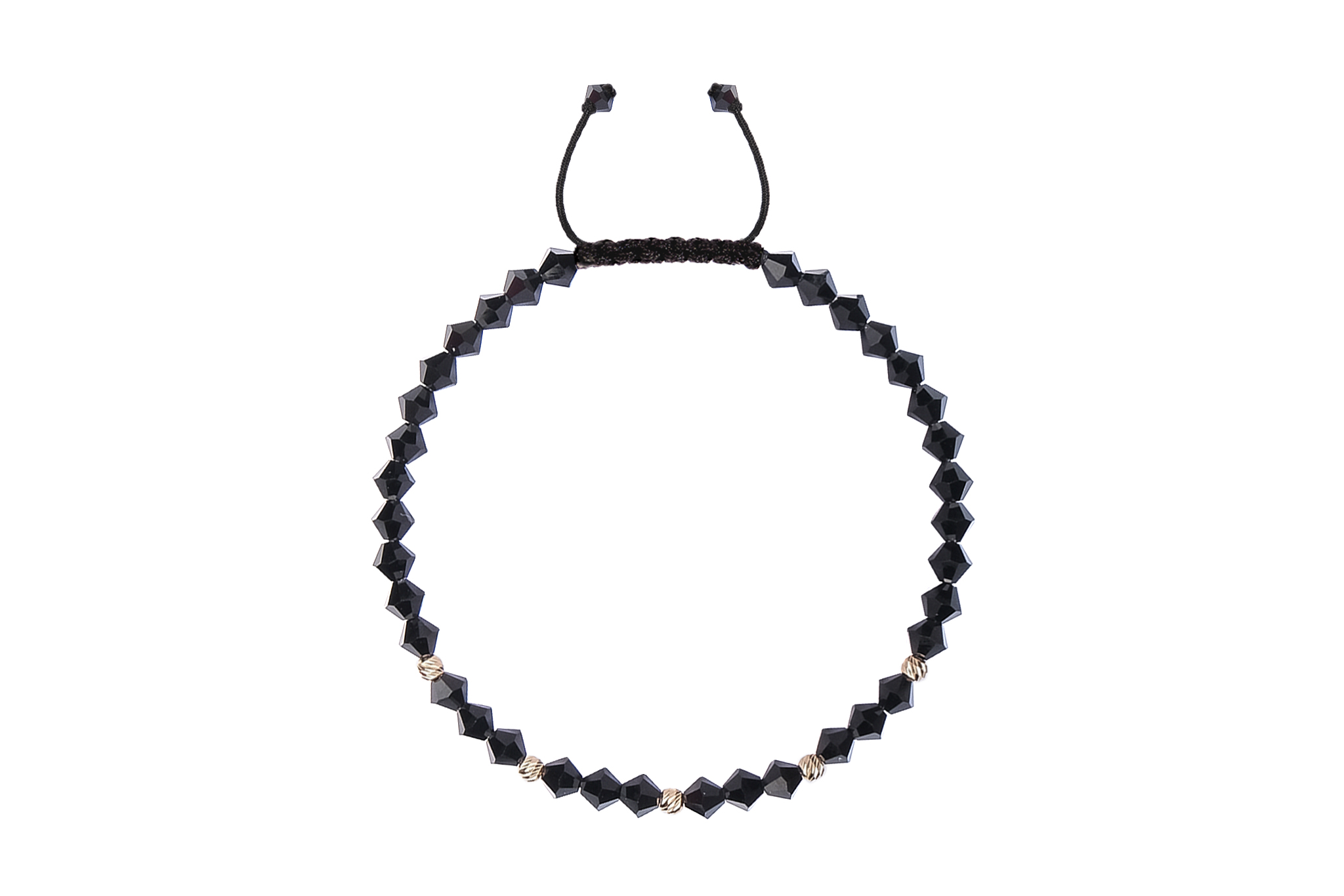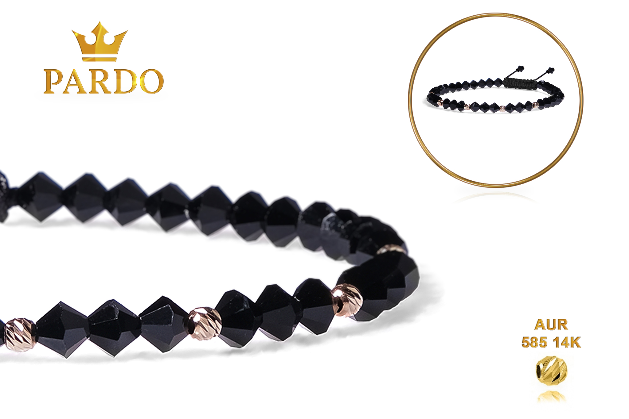 Bratara Pardo realizata cu snur si pietre semipretioase Cristale Preciosa Negru Bicon de 4 mm si sfere striate din Aur 585 de 14 Karate