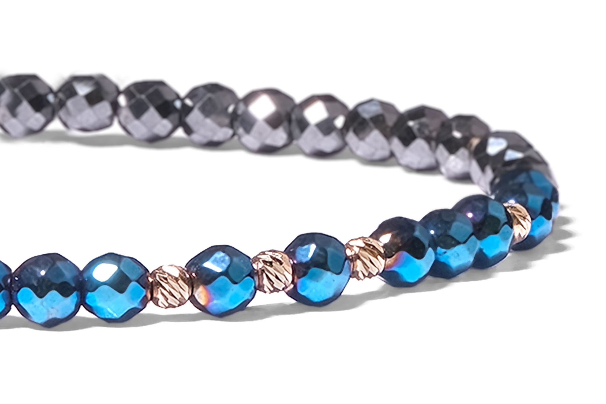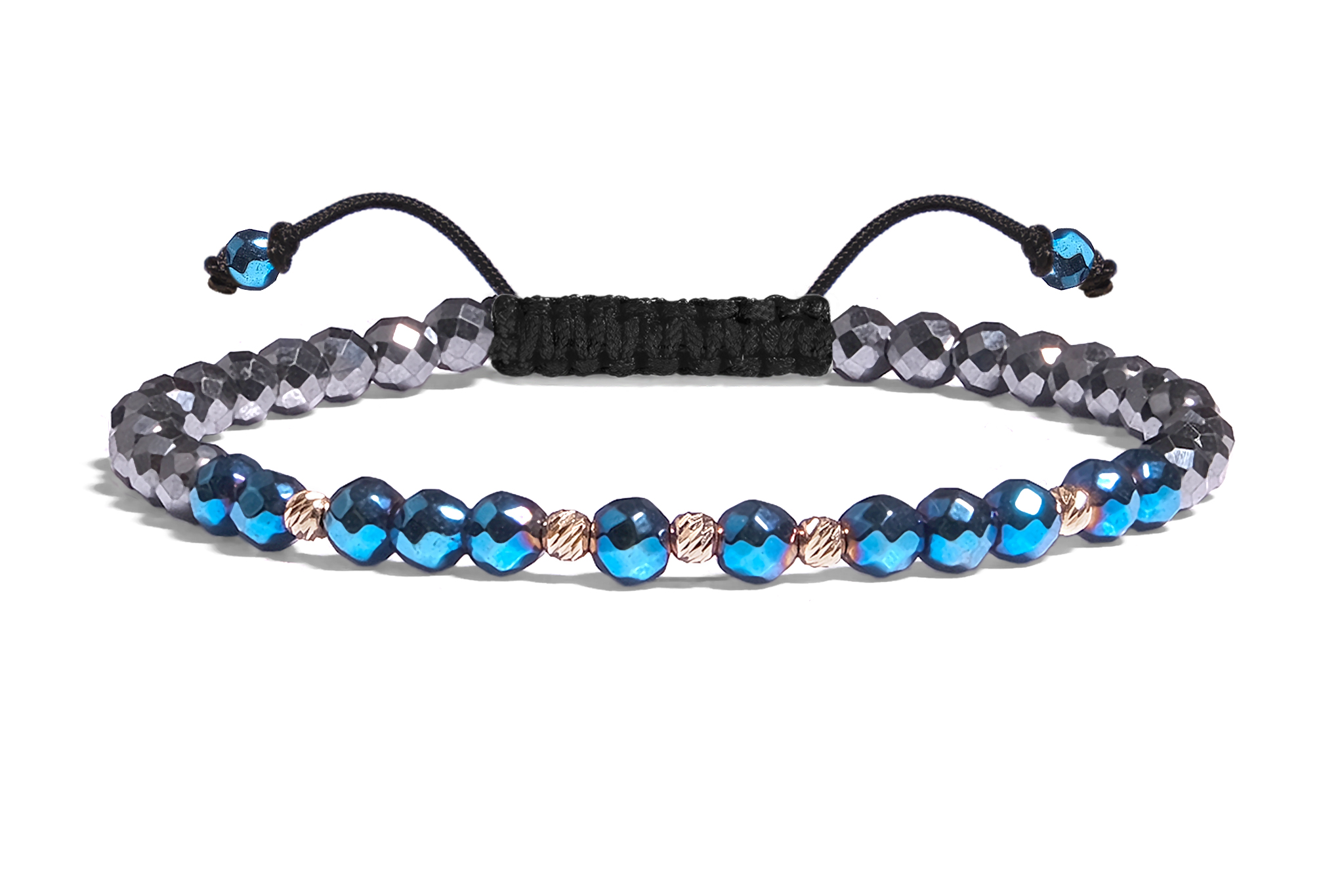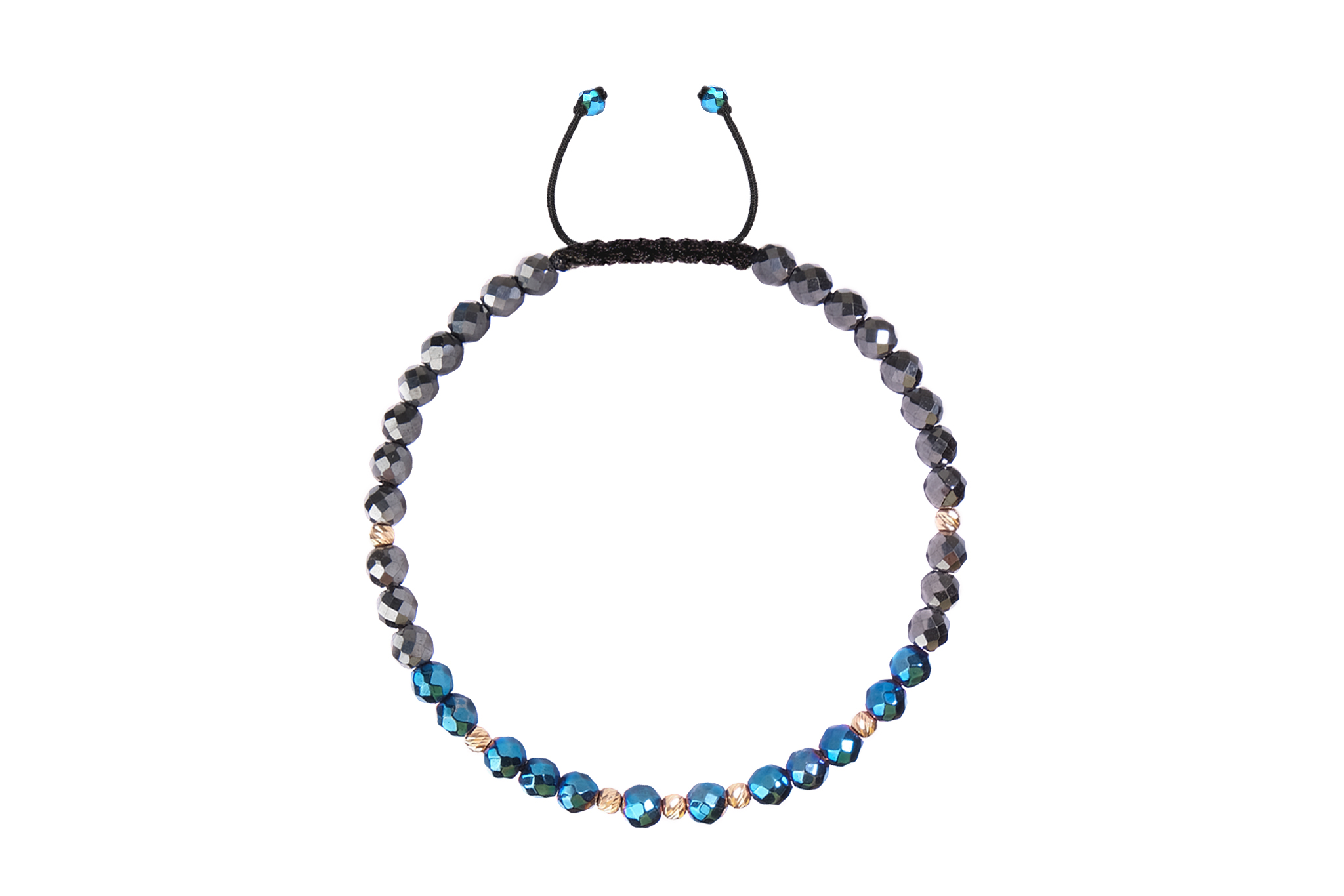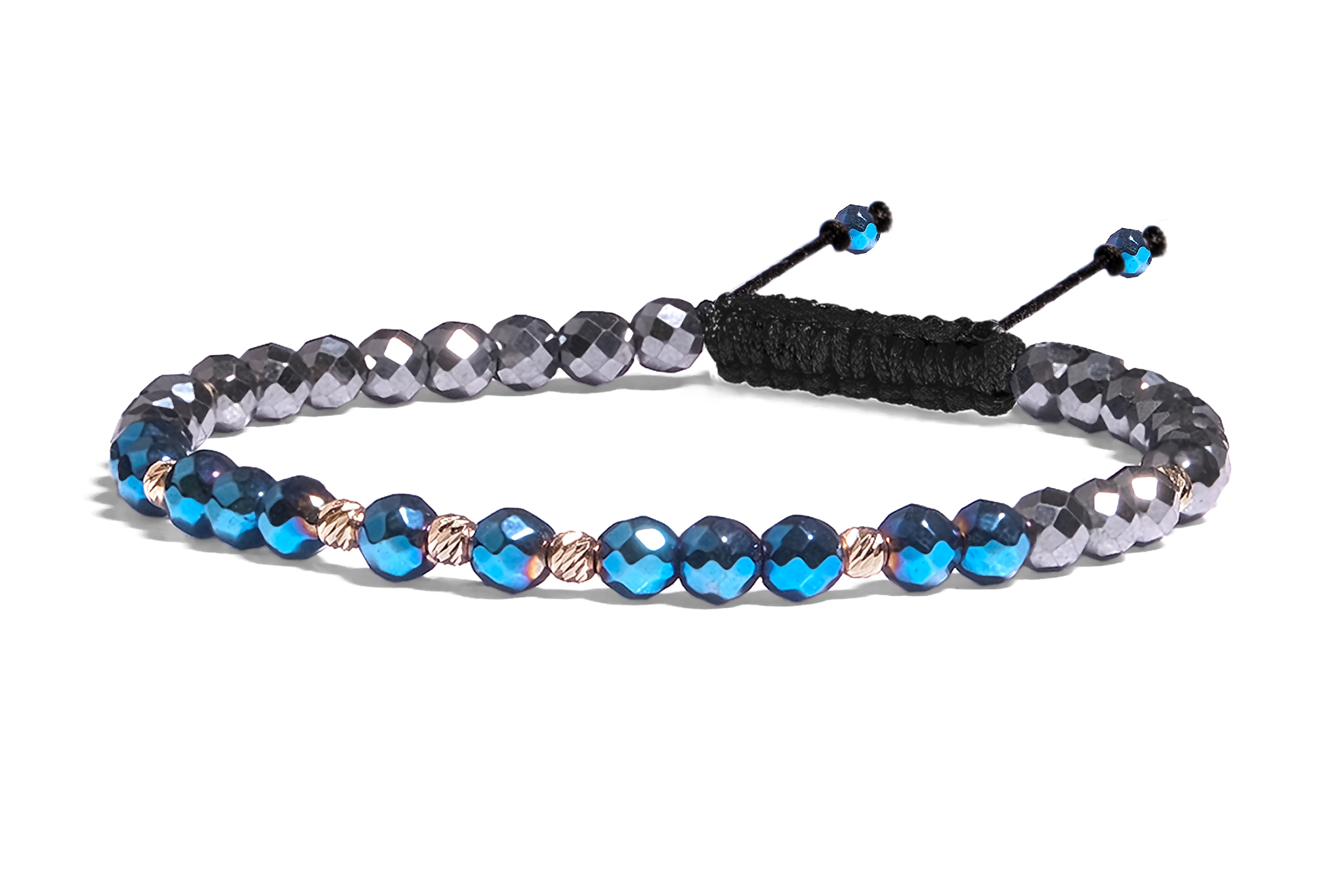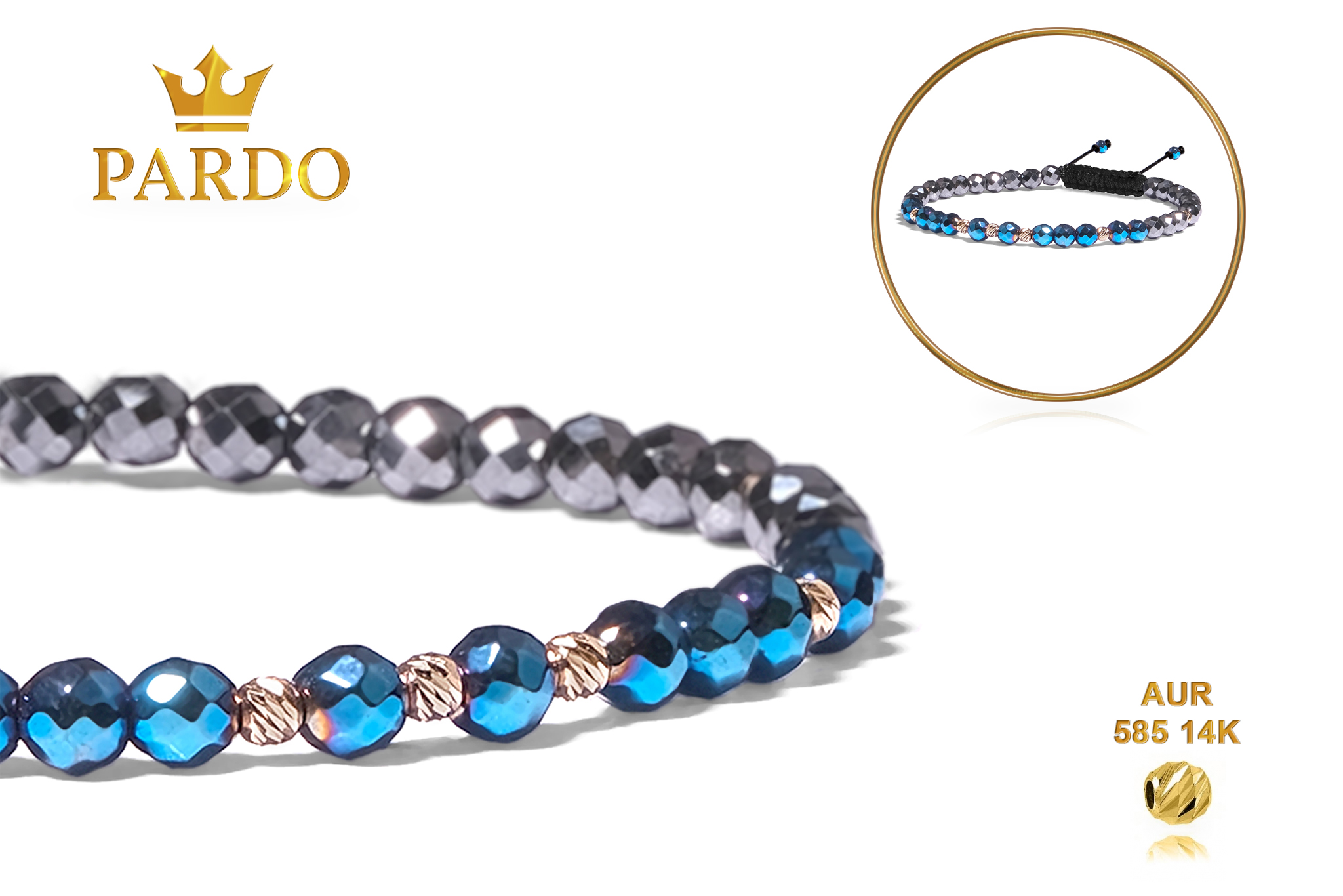 Bratara Pardo realizata cu snur si pietre semipretioase Hematit Bicolor Fatetat de 4 mm si sfere striate din Aur 585 de 14 Karate