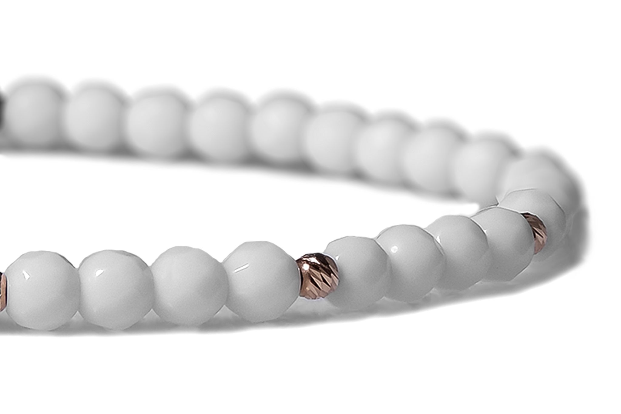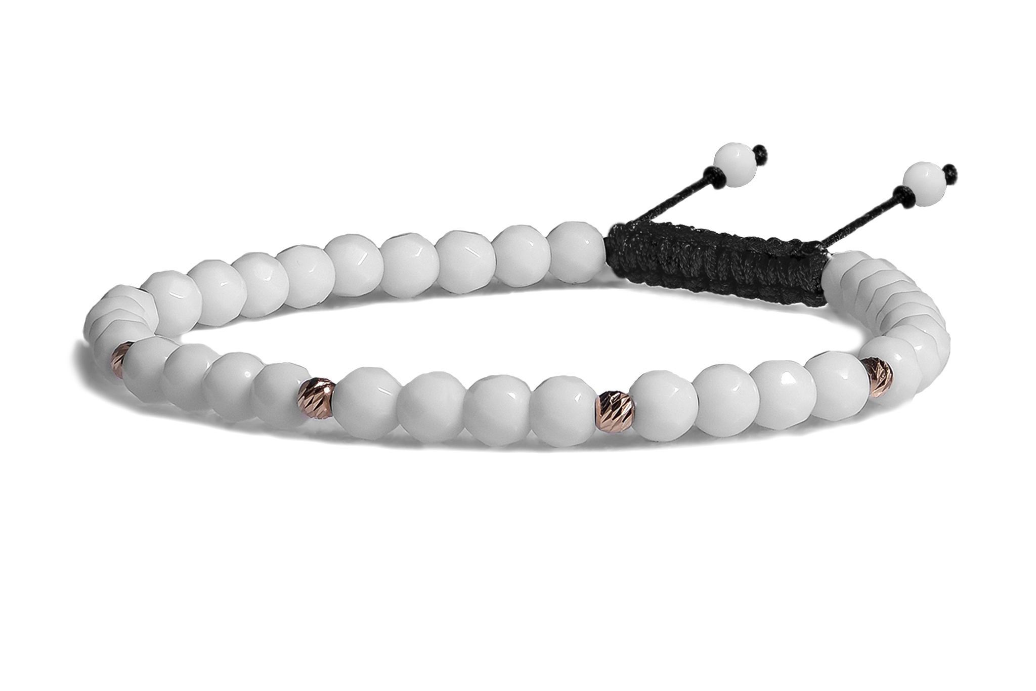 Bratara Pardo realizata cu snur si pietre semipretioase Onix Alb Fatetat de 4 mm si sfere striate din Aur 585 de 14 Karate