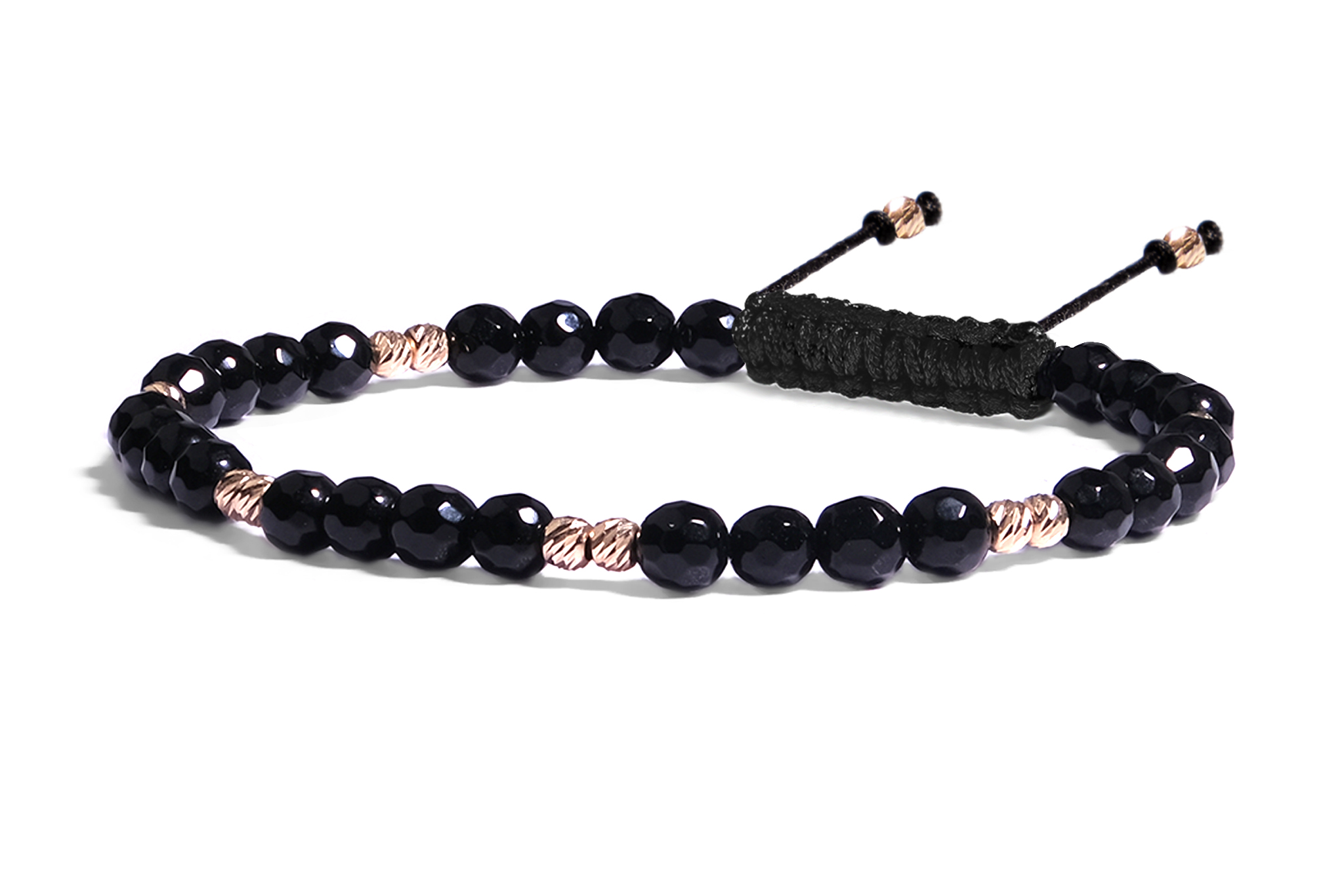Bratara Pardo realizata cu snur si pietre semipretioase Onix negru Fatetat de 4 mm si sfere striate din Aur 585 de 14 Karate